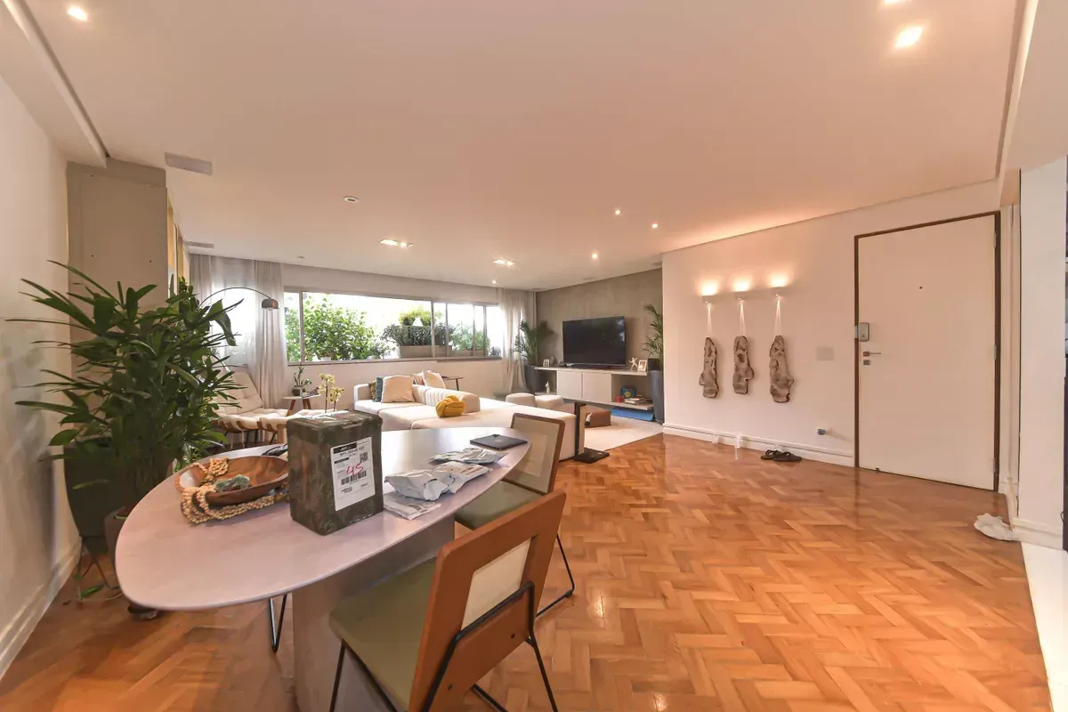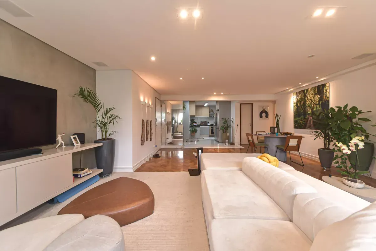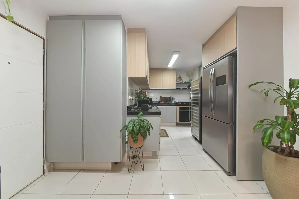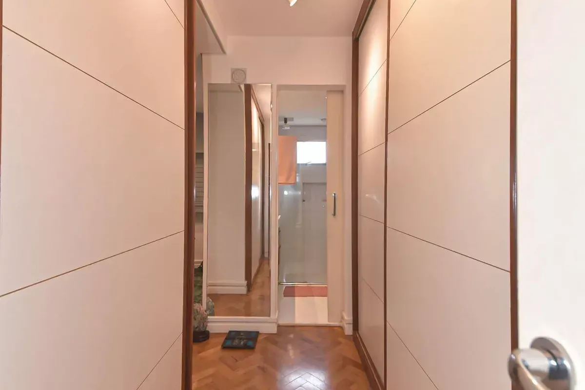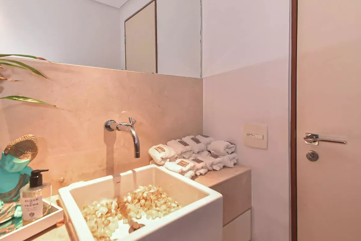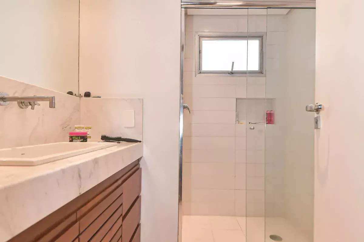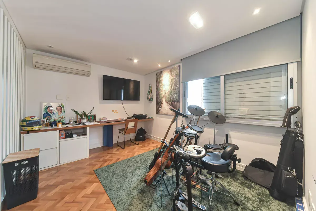 Apartamento com três dormitórios, sendo uma suíte, três banheiros, incluindo lavabo, sala de estar e jantar integradas, cozinha americana com armários planejados e área de serviço, além de quarto e banheiro de serviço. Conta com ar-condicionado, closet, chuveiro a gás, portas amplas em quartos e corredores e piso em taco. Possui duas vagas de garagem. Imóvel em andar alto, com boa iluminação natural e excelente ventilação. Condomínio com portaria 24h, elevador, piscina, academia, salão de festas, playground e área verde. Localizado em rua residencial do Campo Belo, com acesso rápido ao Aeroporto de Congonhas e a uma completa rede de serviços do bairro, como escolas, padarias, restaurantes, farmácias, petshops e o Shopping Ibirapuera. Mobília pode ser negociada.