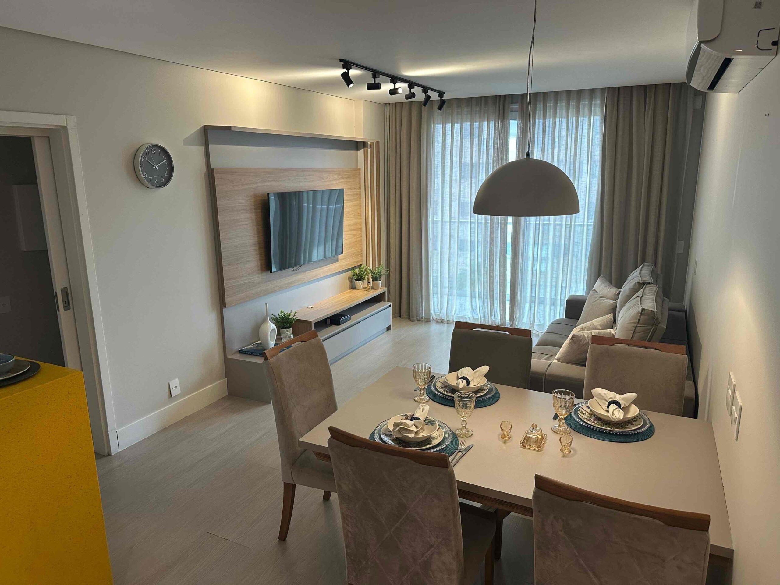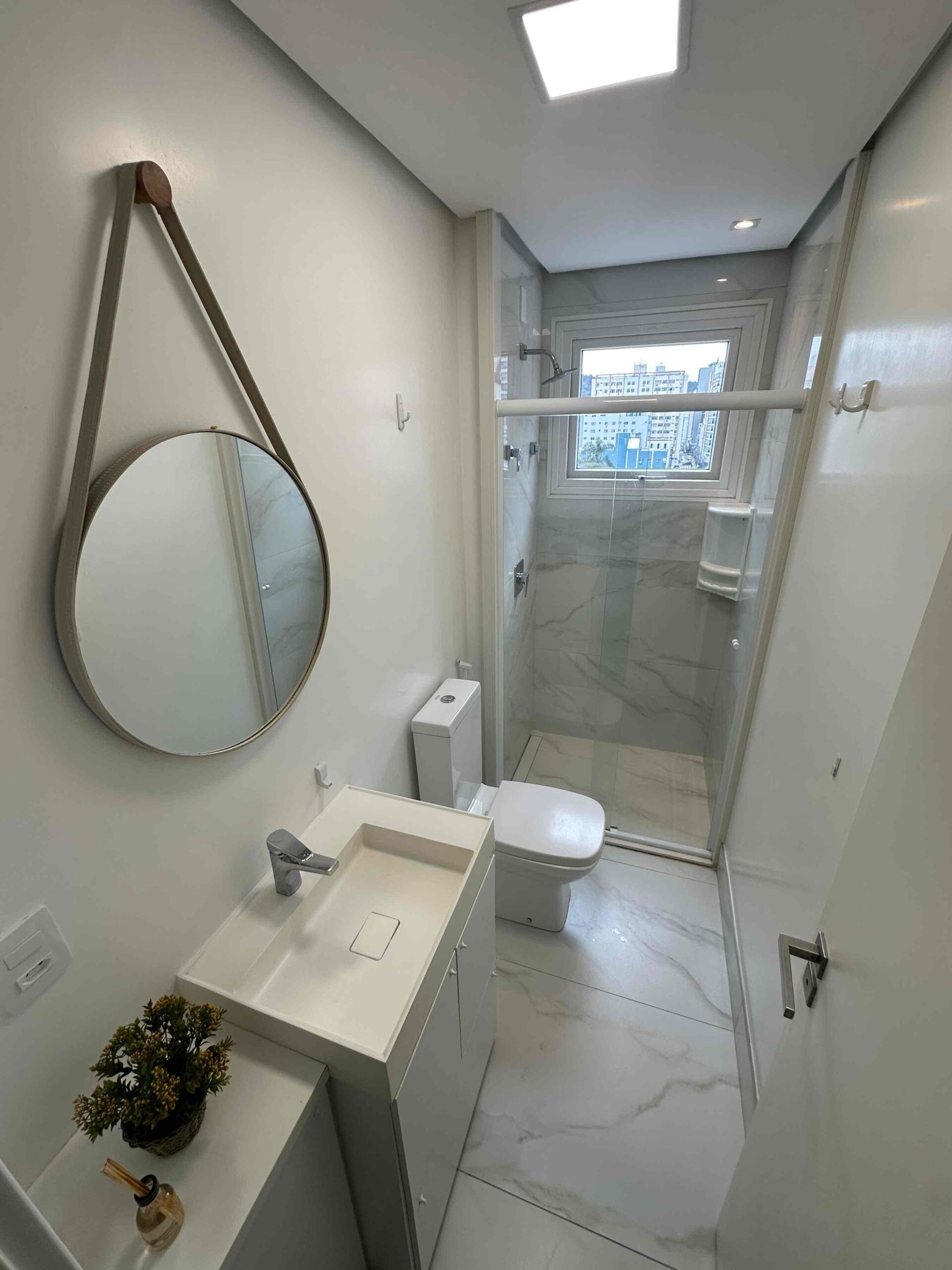 Apartamento novo com três dormitórios, sendo uma suíte e lavabo.