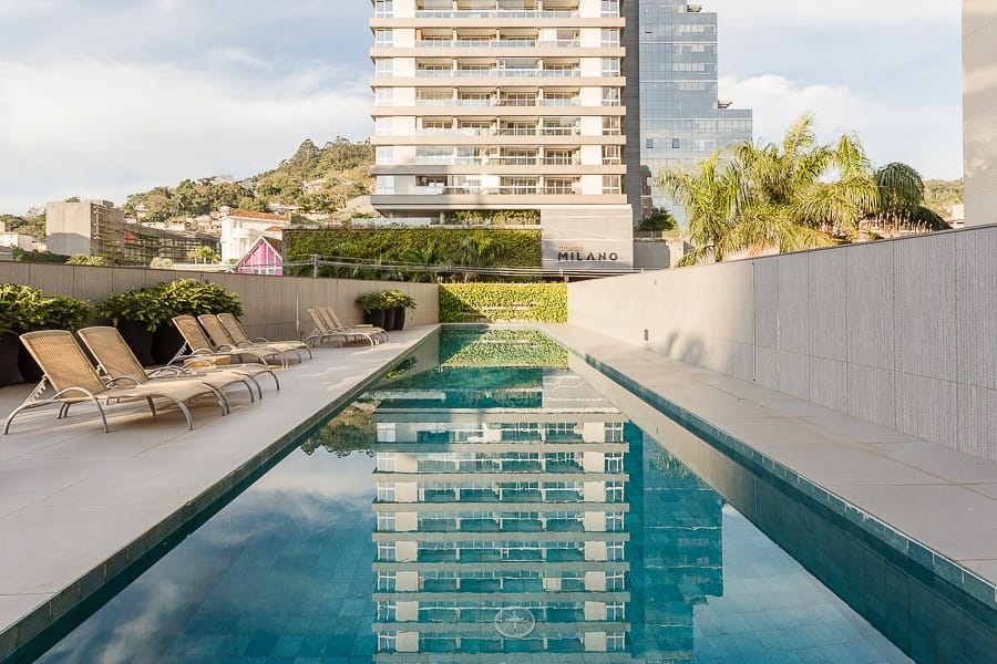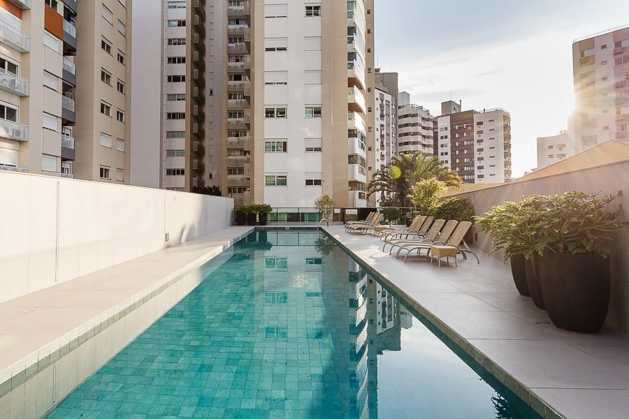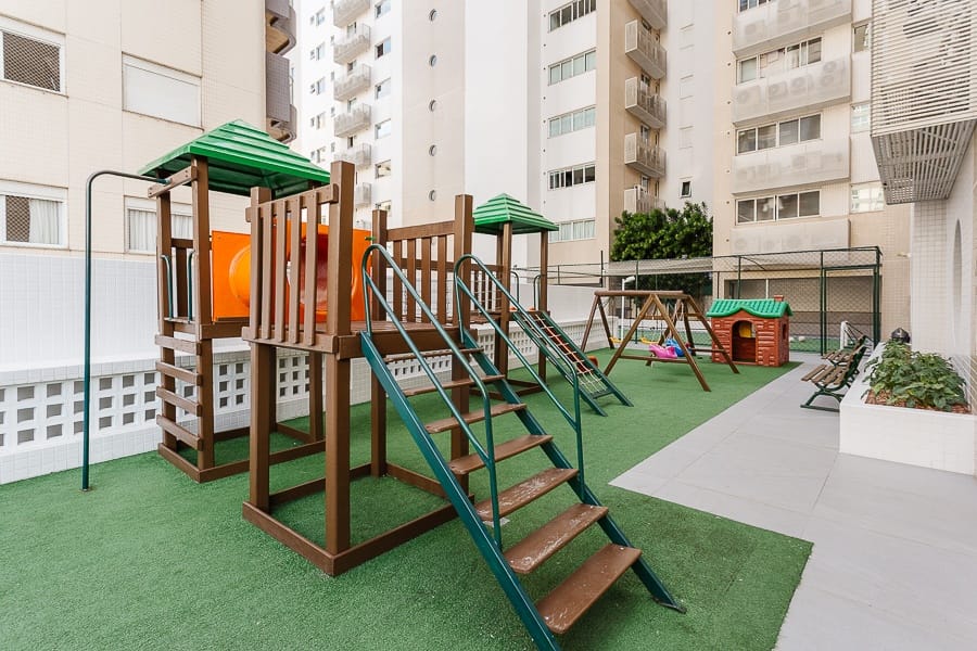 O condomínio oferece infraestrutura completa, com portaria 24h, salão de festas, sala de jogos, academia, quadra poliesportiva, playground, solarium, sauna, SPA, piscina aquecida e piscinas adulto e infantil.