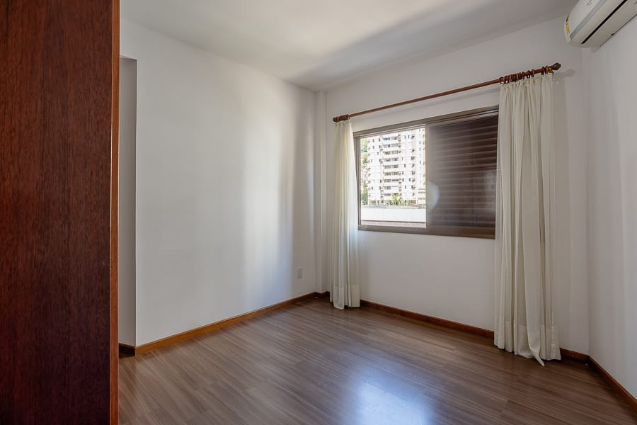 Apartamento à venda com três dormitórios sendo uma suíte, banheiro social, cozinha e lavanderia, semi mobiliado, climatizado e com uma pequena vista para o mar. Conta ainda com uma vaga de garagem livre.