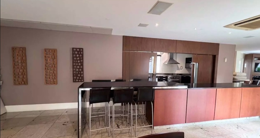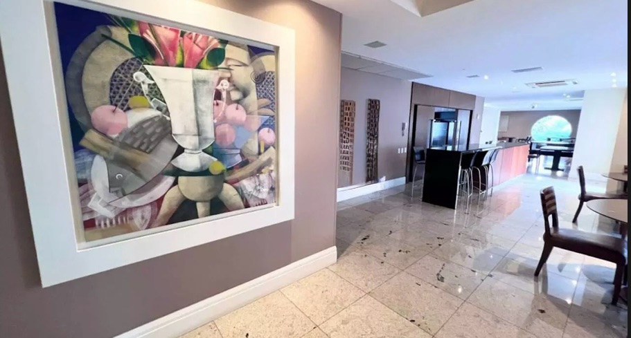 São três suítes, banheiro social, salas de jantar e estar com varanda e churrasqueira, lavabo, 3 vagas de garagem.