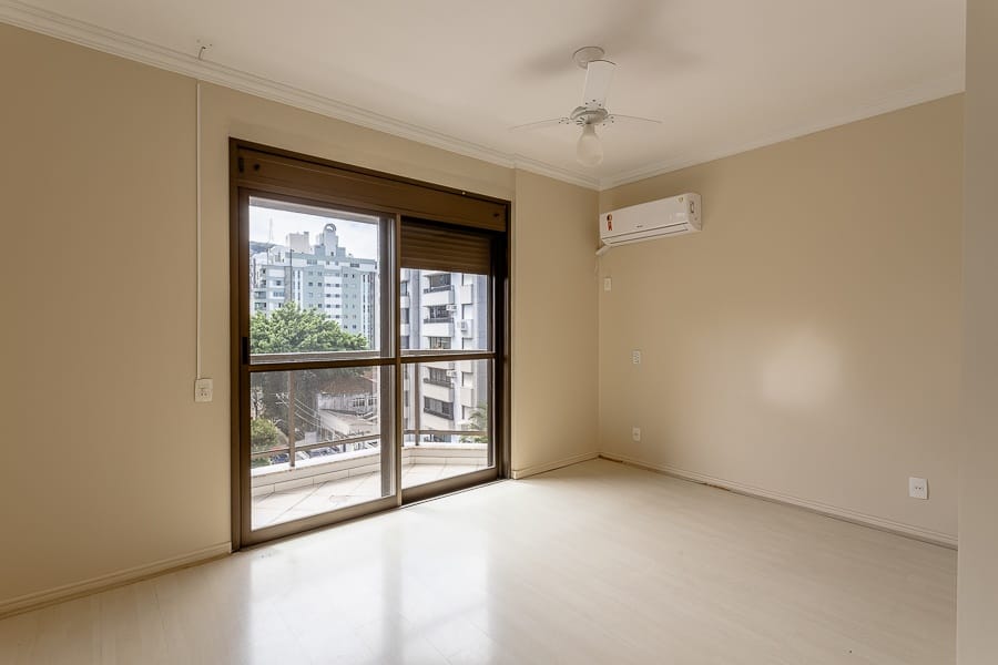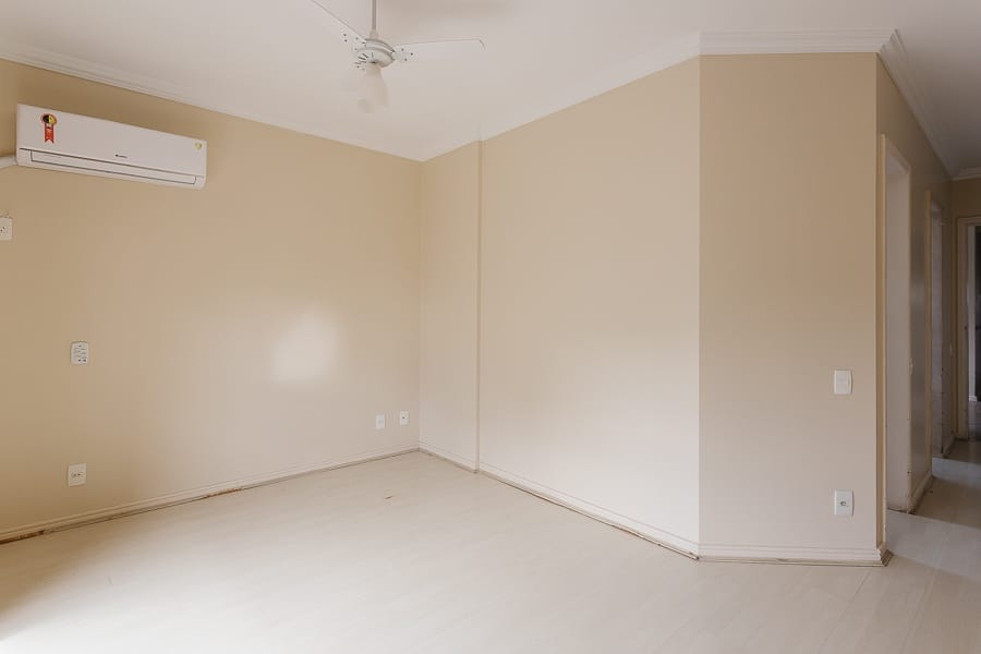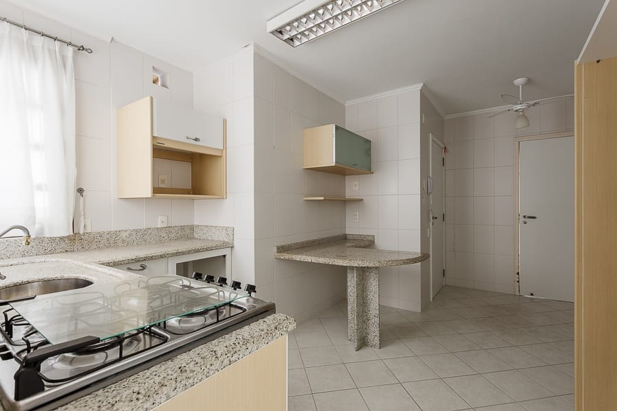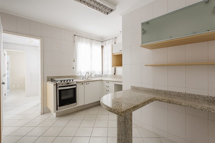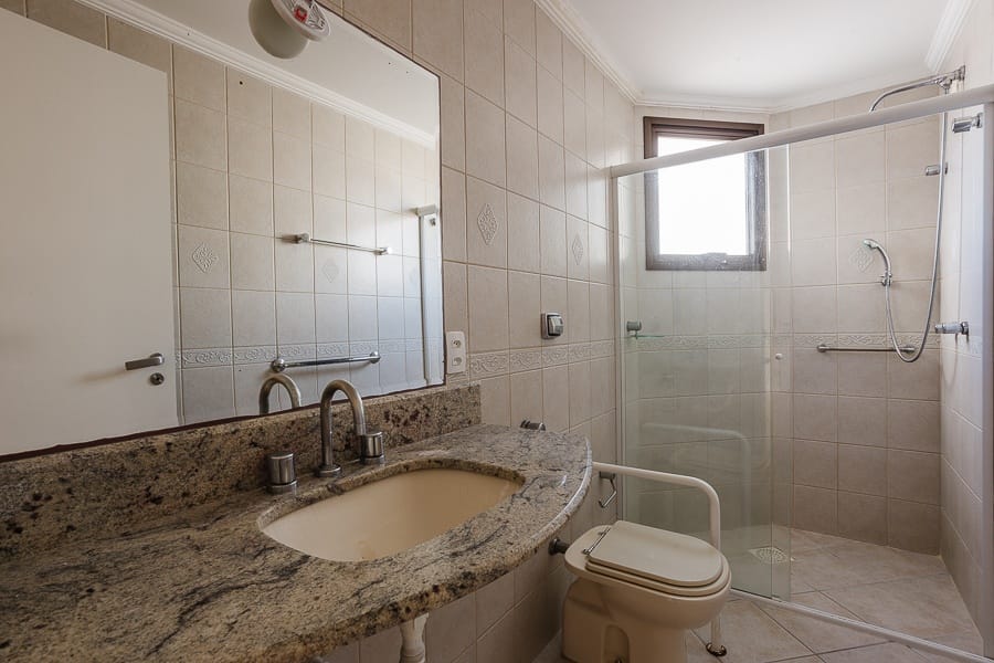 São quatro dormitórios transformados em três, sendo duas suítes e um banheiro social. Amplas salas de jantar e estar com sacada, copa/cozinha fechada, área de serviço e dependência completa de serviço, duas vagas de garagem.
