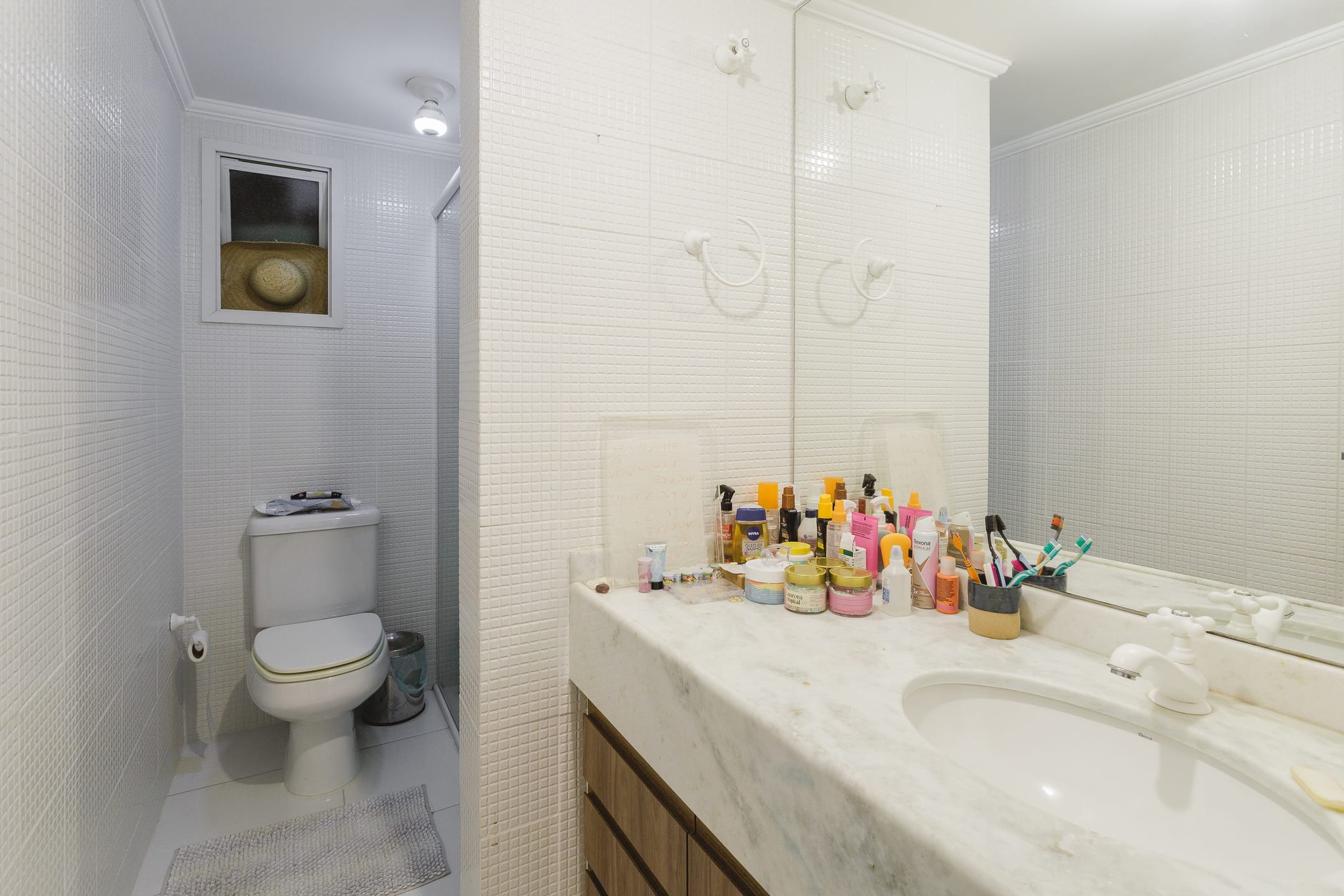 Com 126m² de área privativa, o imóvel conta com 3 dormitórios, sendo 1 suíte, além de 2 banheiros sociais, 1 lavabo e 1 banheiro na área de serviço. Dispõe ainda de 2 vagas de garagem.