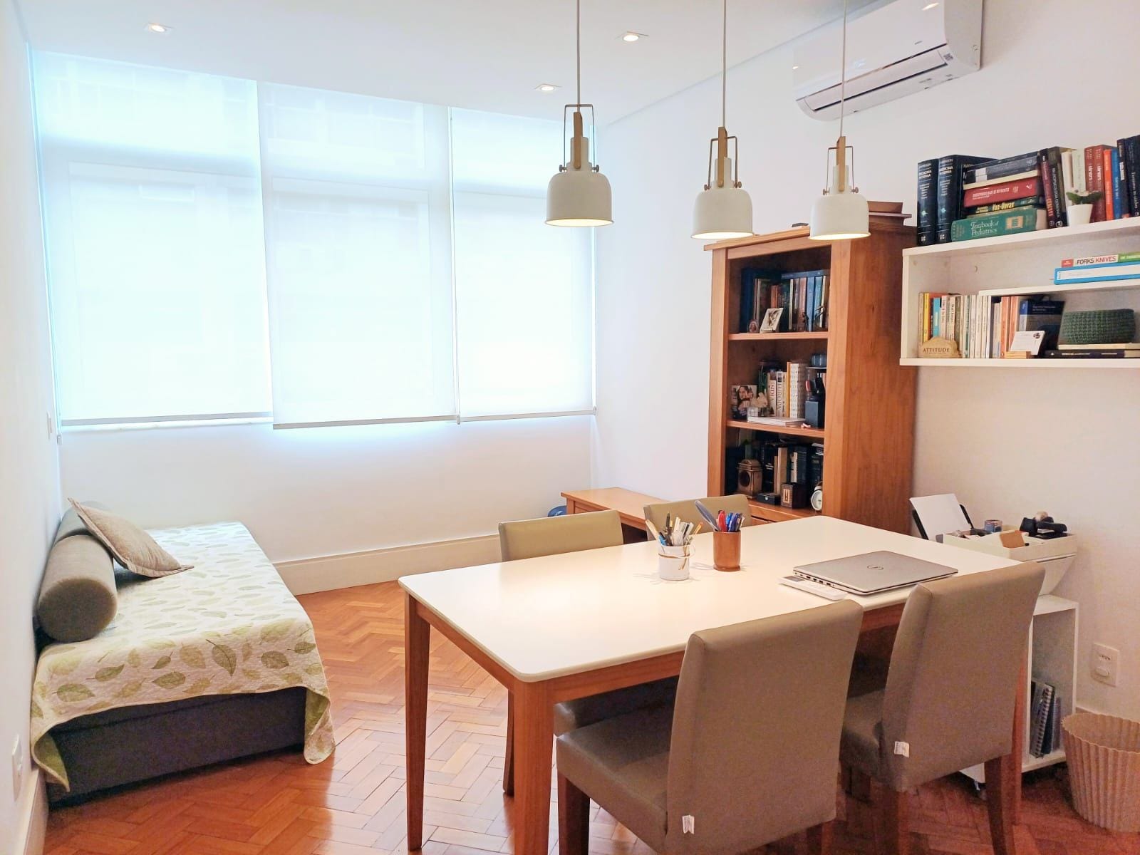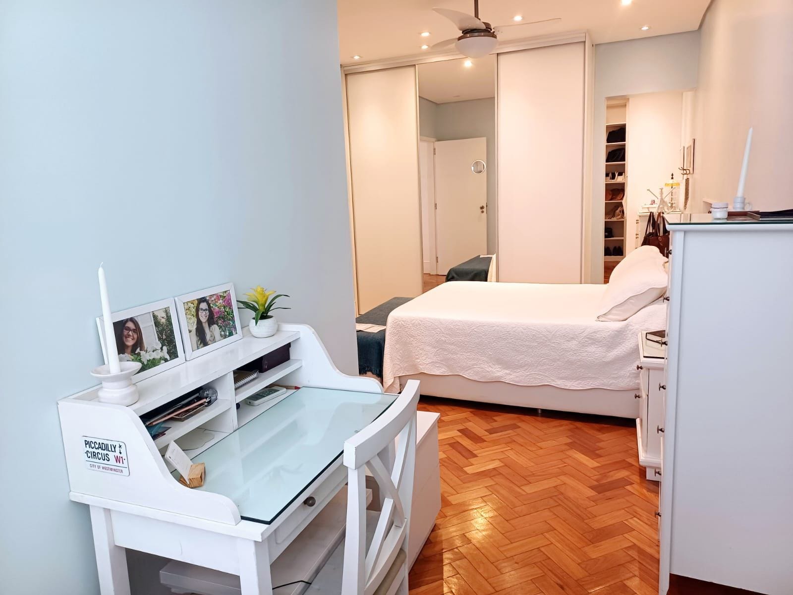 Apartamento à venda com 150 m², localizado na Rua Anita Garibaldi, uma das mais valorizadas de Copacabana. Totalmente reformado, conta com marcenaria de alto padrão e excelente aproveitamento de espaço. A área social oferece sala de estar e jantar integradas à cozinha americana, criando um ambiente moderno e acolhedor. Na área íntima, há três quartos, sendo uma ampla suíte com closet e escritório, além de mais dois quartos e um banheiro social. A área de serviço dispõe de lavanderia planejada e banheiro de serviço. O condomínio está totalmente modernizado, possui portaria 24 horas e uma vaga de garagem.