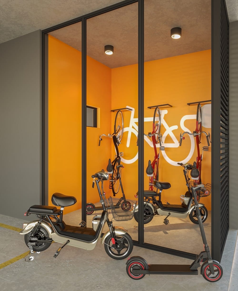 Além de acesso por reconhecimento facial, aplicativo para reservas de áreas comuns, interruptores inteligentes, tomadas USB, fechadura eletrônica, infraestrutura para carro elétrico e smartlock, garantindo mais segurança, eficiência e sustentabilidade.