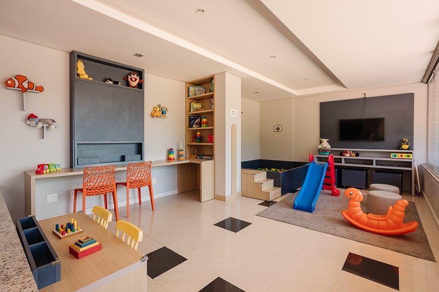 O condomínio conta com portaria 24h, salão de festas, academia e brinquedoteca.