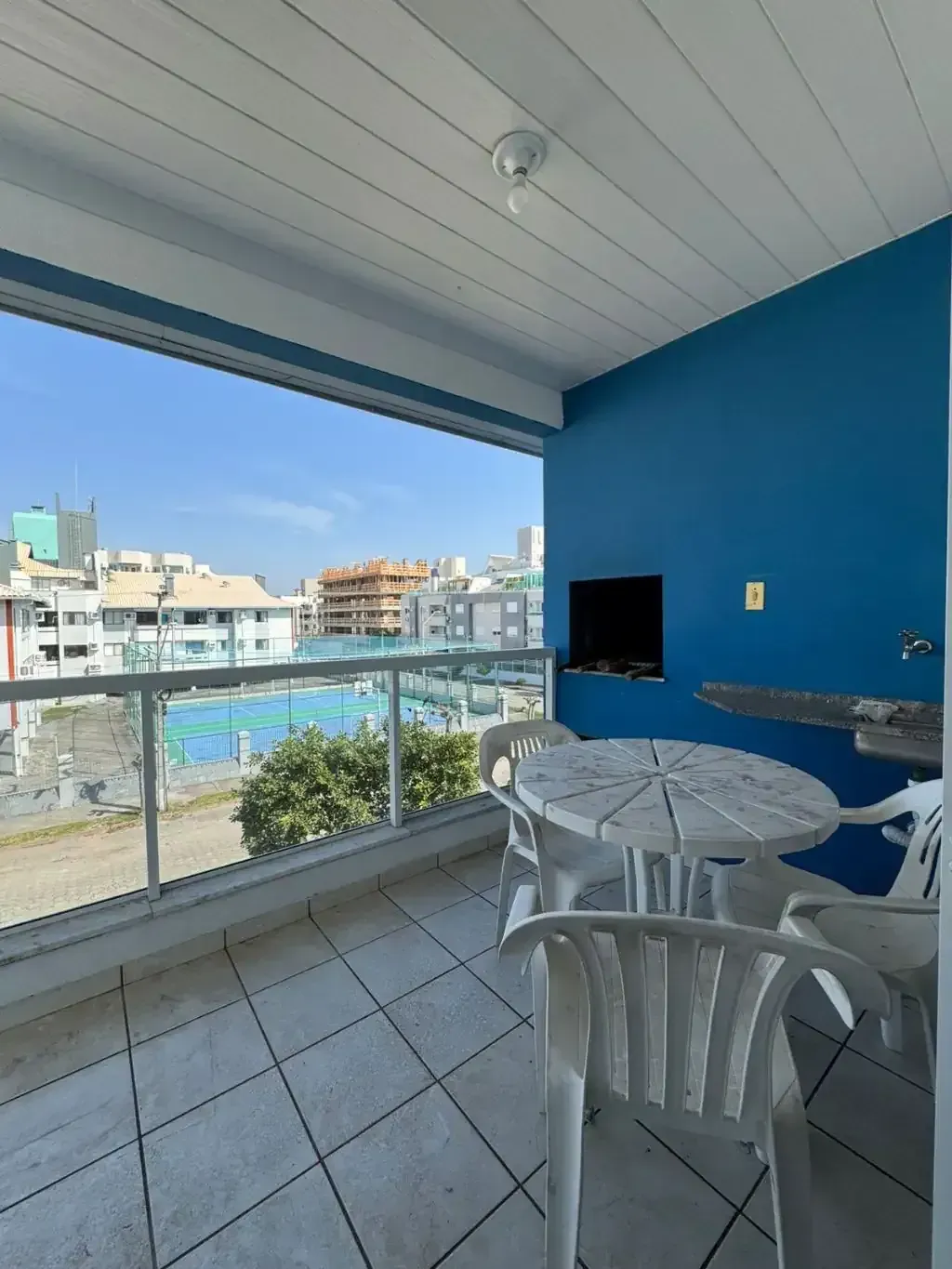O condomínio conta com piscina, quadra poliesportiva, quadra de tênis, restaurante, cantina, salão de festas e playground.