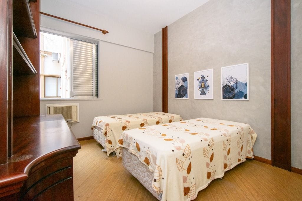 Apartamento á venda na Praia de Ipanema a 15 metros do mar. São 3 dormitórios sendo 1 suíte, 3 banheiros, ampla sala com varanda, cozinha, área de serviço e dependência de serviço completo. Apartamento de fundos, iluminado e bem silencioso. Portaria 24h e 2 vagas de garagem.