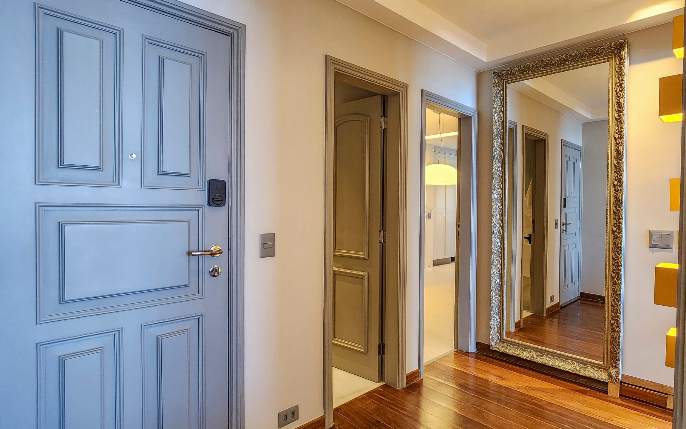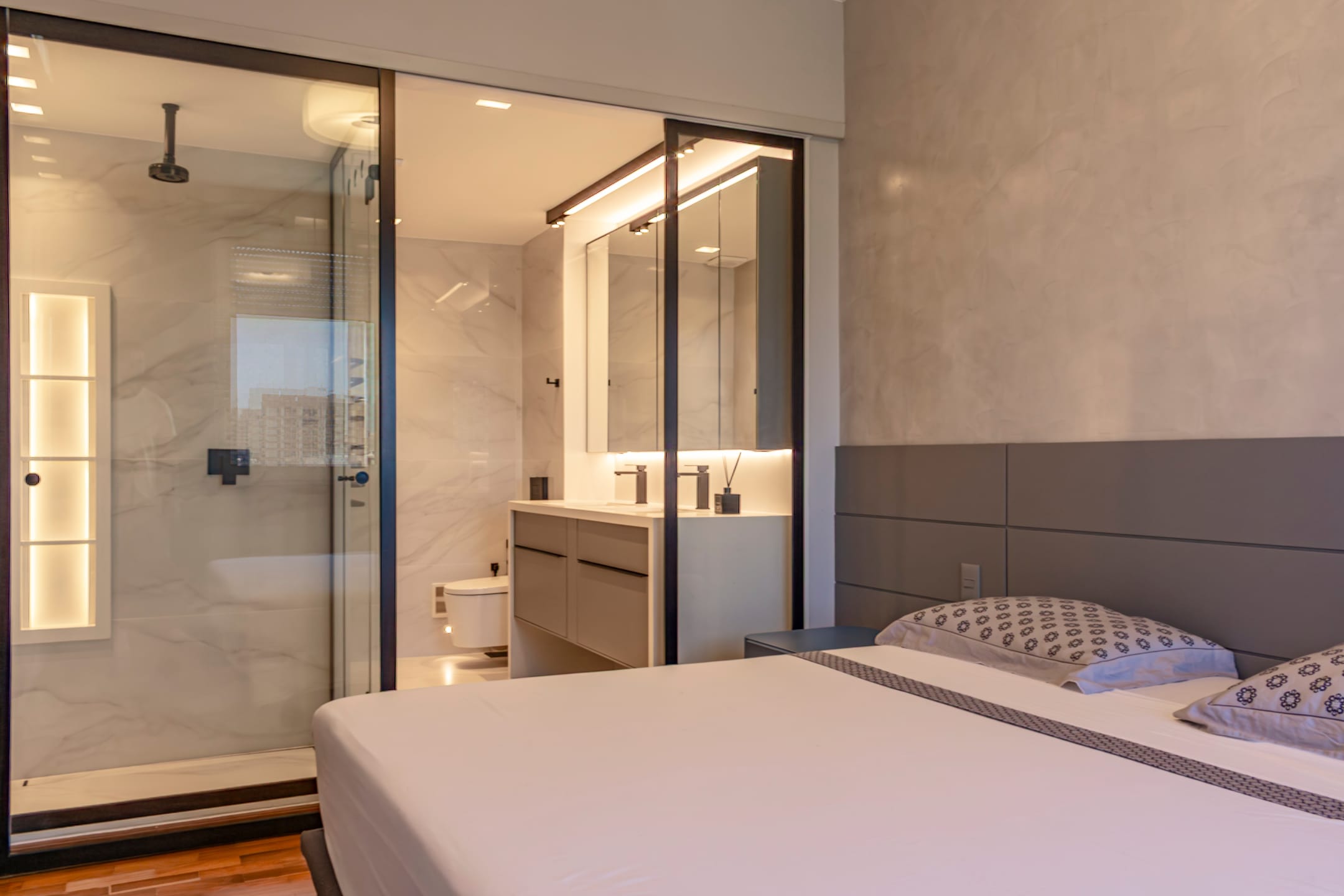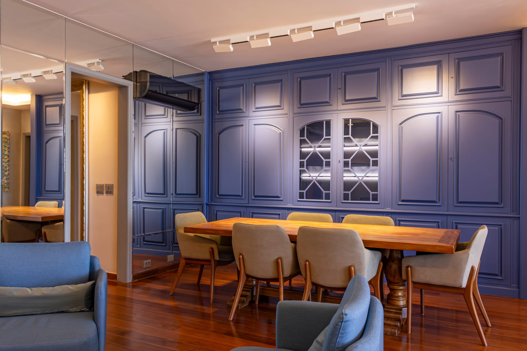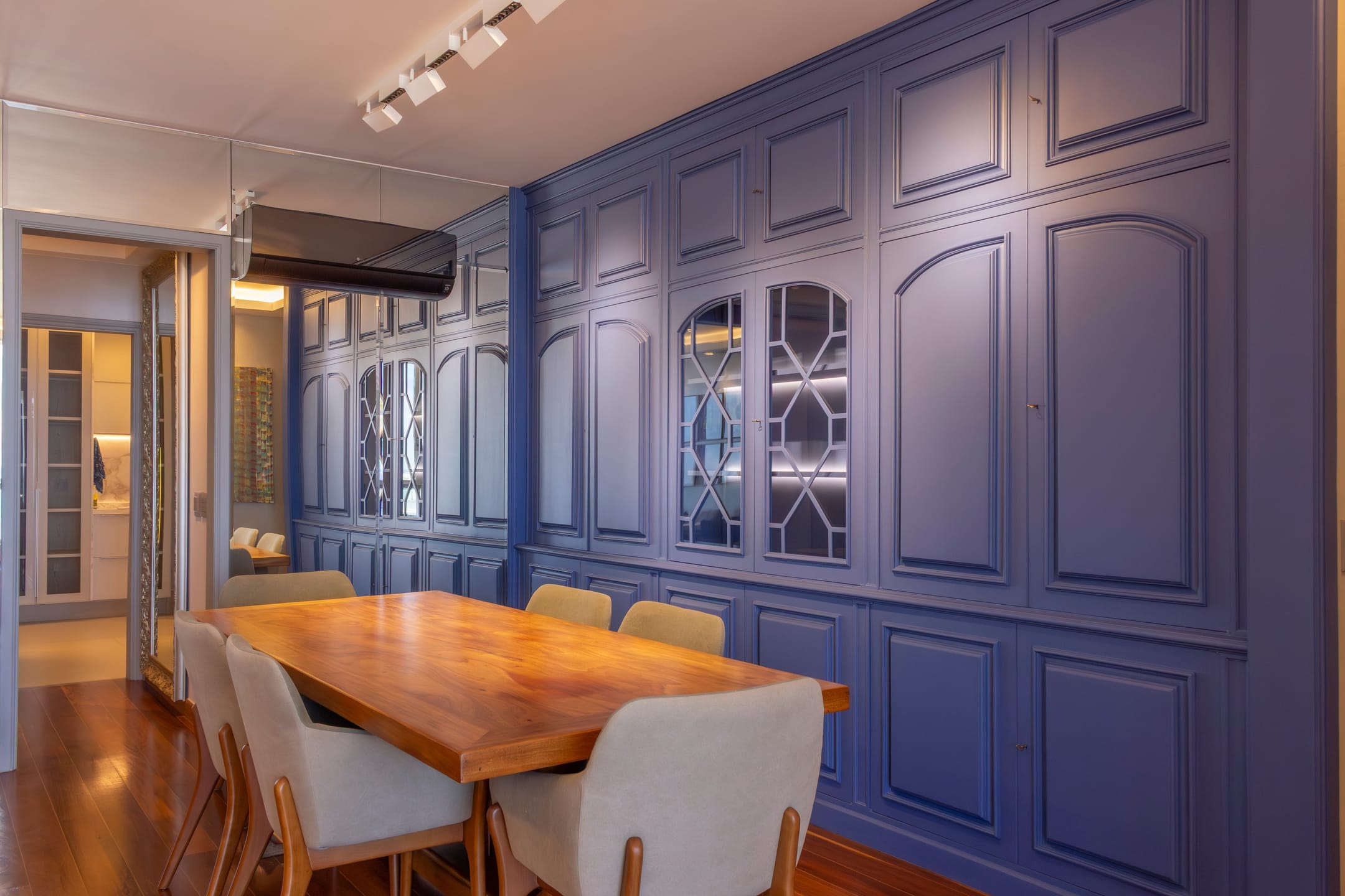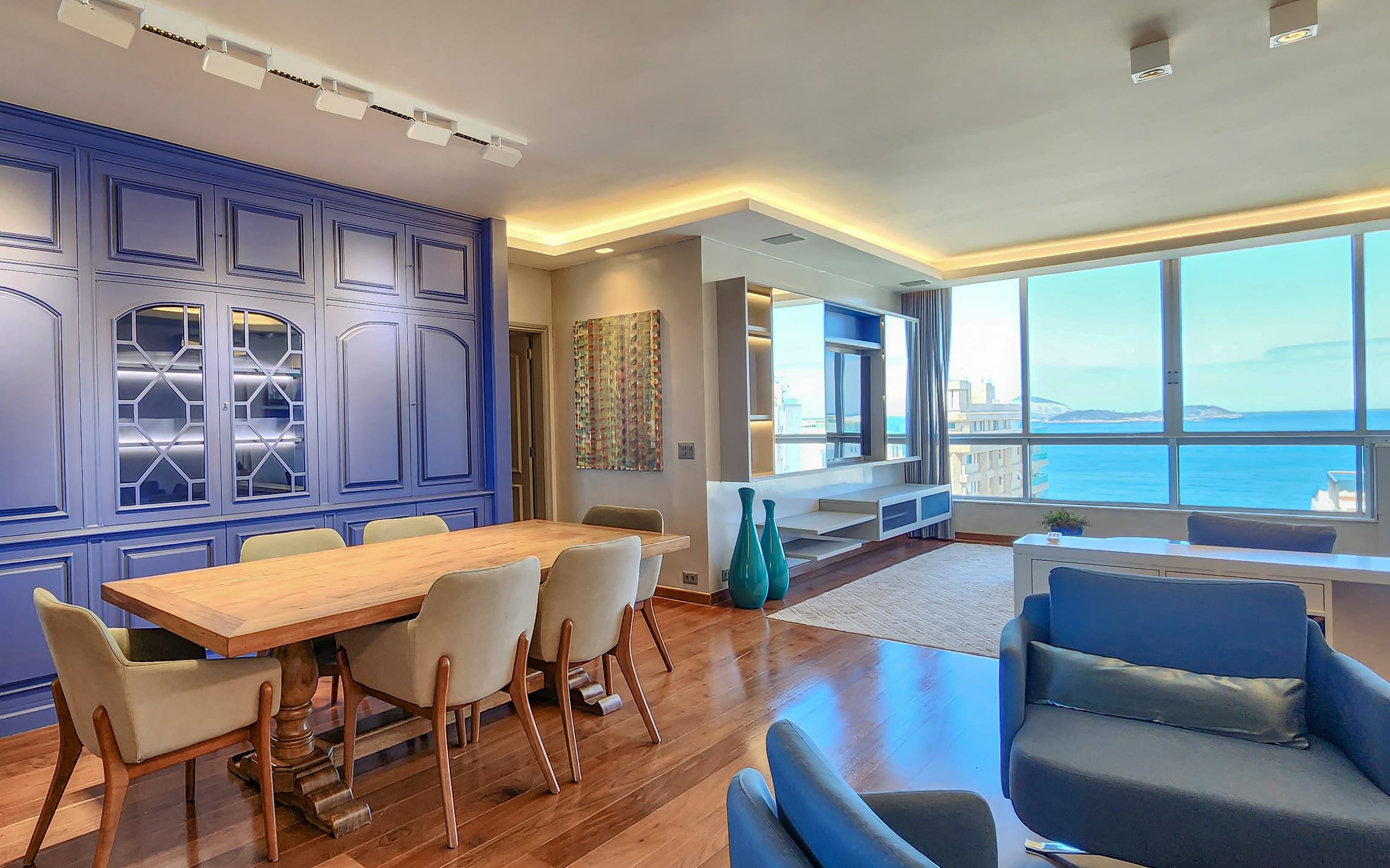 Charmoso hall de entrada, sala ampla dividida em 3 ambientes, lavabo, originalmente 4 quartos, hoje com 3 quartos, sendo 1 suíte e os outros 2 transformados em suíte canadense, todos repletos de armários, copa-cozinha espaçosa toda planejada e com armários de ótima qualidade, área de serviço, dependência completa.