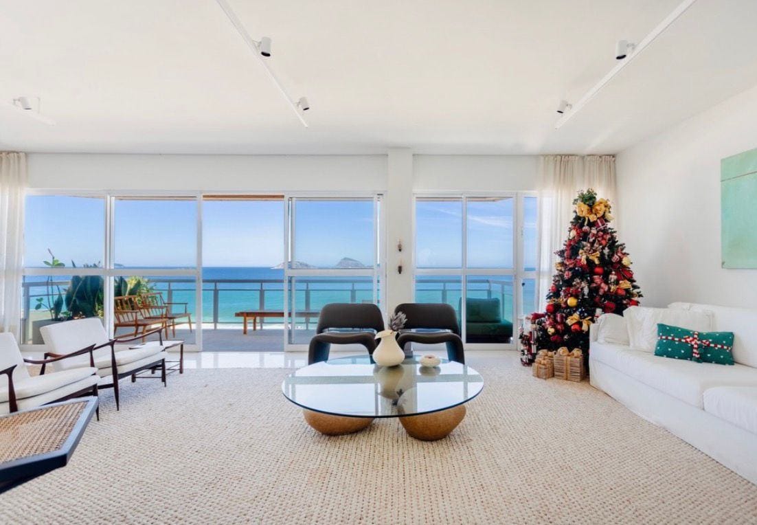 Apartamento á venda na Orla de Ipanema com 220 m2 no IPTU ( com as duas varandas 240m2) andar alto, na melhor localização do bairro, dispondo de: hall privativo, ampla sala de estar podendo ser dividida em até três ambientes com acesso direto à um varandão com vista panorâmica da Praia de Ipanema, do Morro Dois Irmãos ao Arpoador, lavabo, sala íntima, 3 quartos amplos – todos com armários, ar condicionado split, sendo 1 suíte plena, copa e cozinha planejada com armários SCA e puxadores ANNA K, ampla área de serviço e 2 (duas) dependências completas. 4 vagas de garagem.