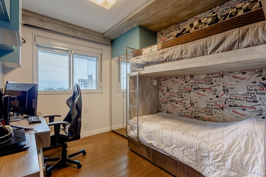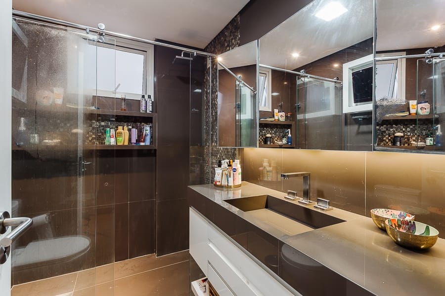 Possui também dependência de serviço transformada em escritório com lavabo. Ficam todos os móveis fixos.