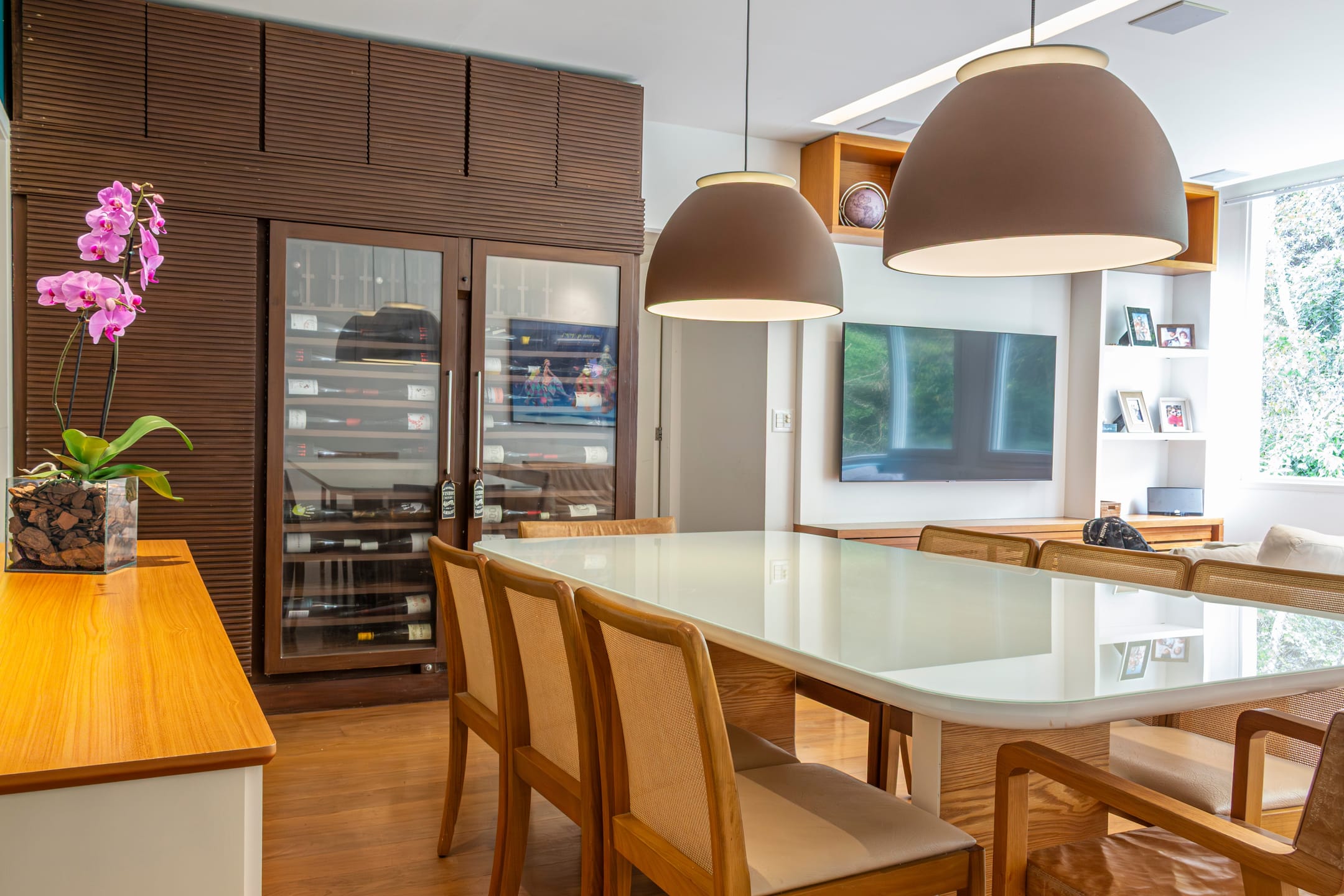 O apartamento está pronto para morar e conta com uma ampla suíte, sala generosa com espaços bem definidos para estar e jantar, além de um terceiro ambiente versátil, perfeito para home office ou uma confortável cadeira de leitura voltada para a mata. A cozinha funcional e a lavanderia independente completam a área social com praticidade e conforto. Para os apreciadores de um bom vinho, há ainda um espaço climatizado exclusivo para adega, um toque de sofisticação que torna o imóvel ainda mais especial. O prédio conta com dois elevadores e o apartamento dispõe de duas vagas de garagem.