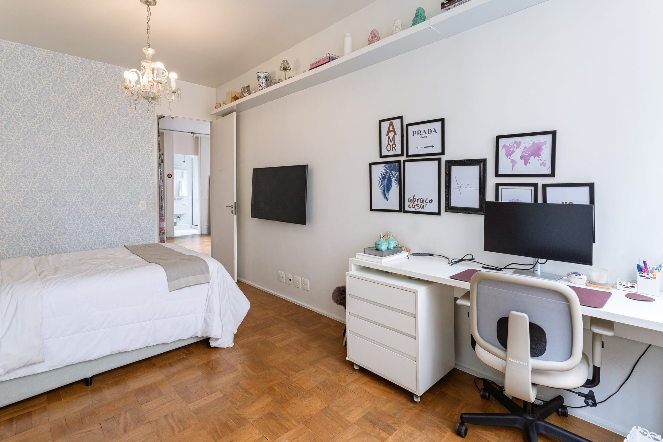 A cozinha é funcional e bem distribuída, integrada à área de serviço completa. O apartamento dispõe ainda de 2 vagas de garagem.