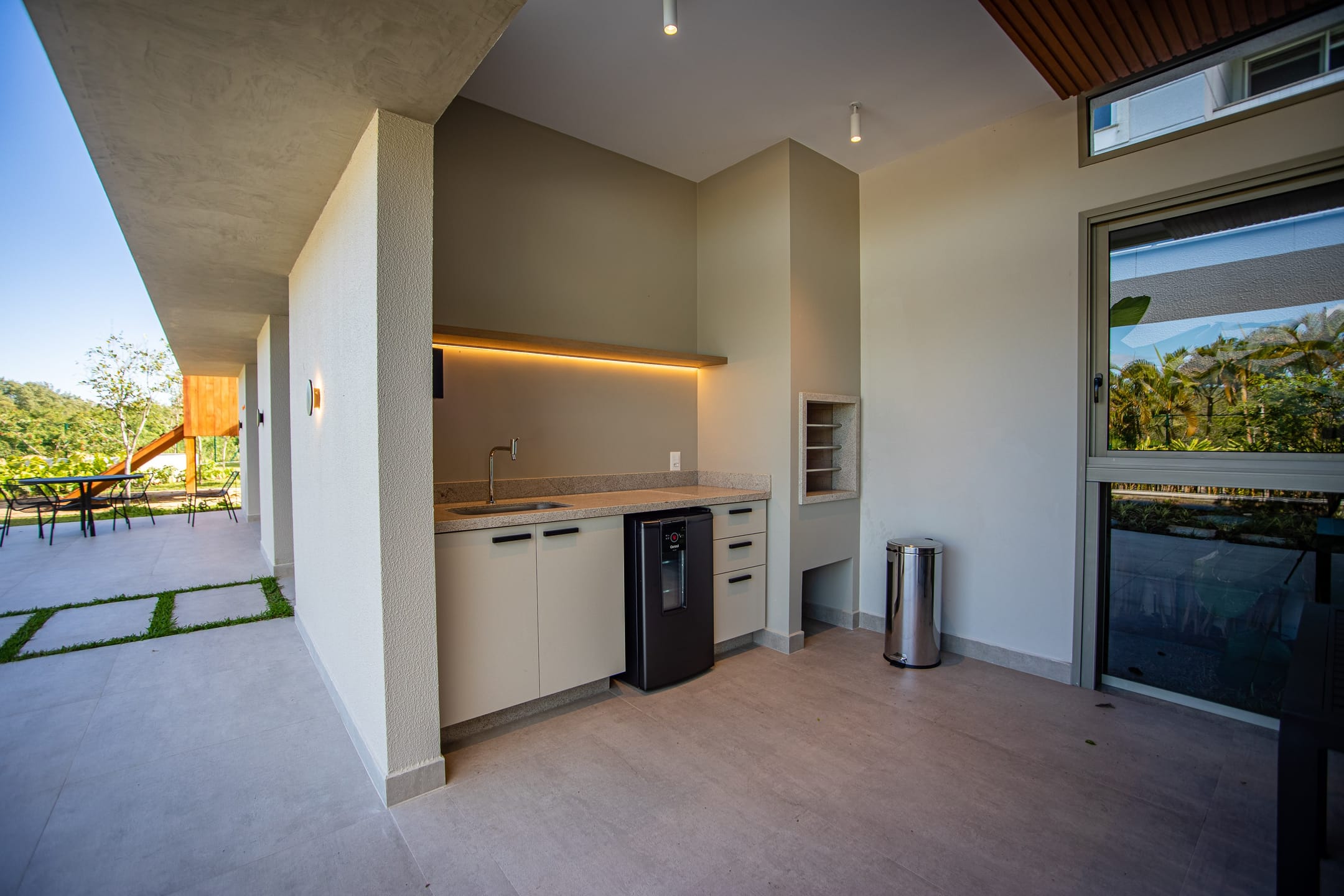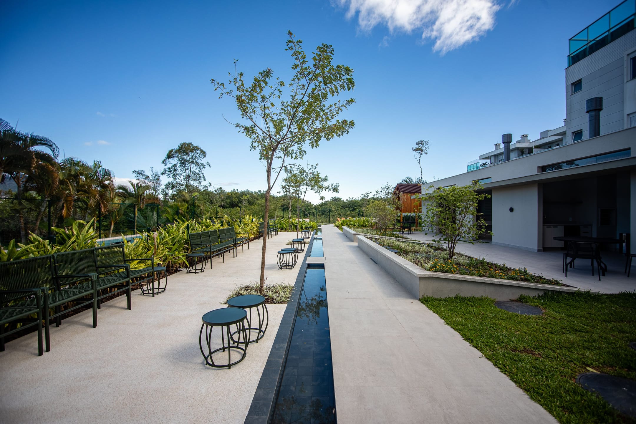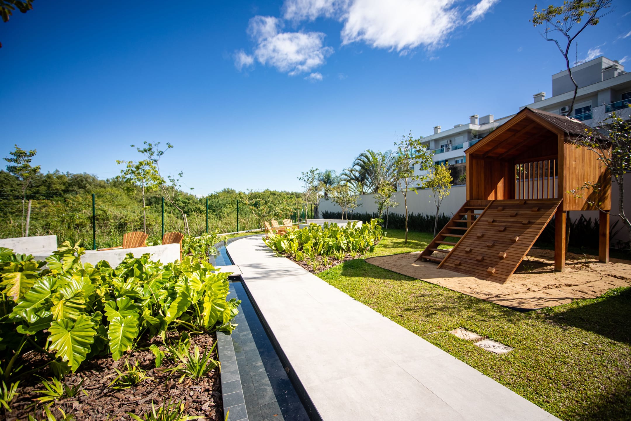 Condomínio com arquitetura contemporânea integrada à natureza com salão de festas, academia, brinquedoteca, playground, piscina aquecida, espaço zen, piscina adulto e infantil, churrasqueiras, espaço pet e praça de fogo.