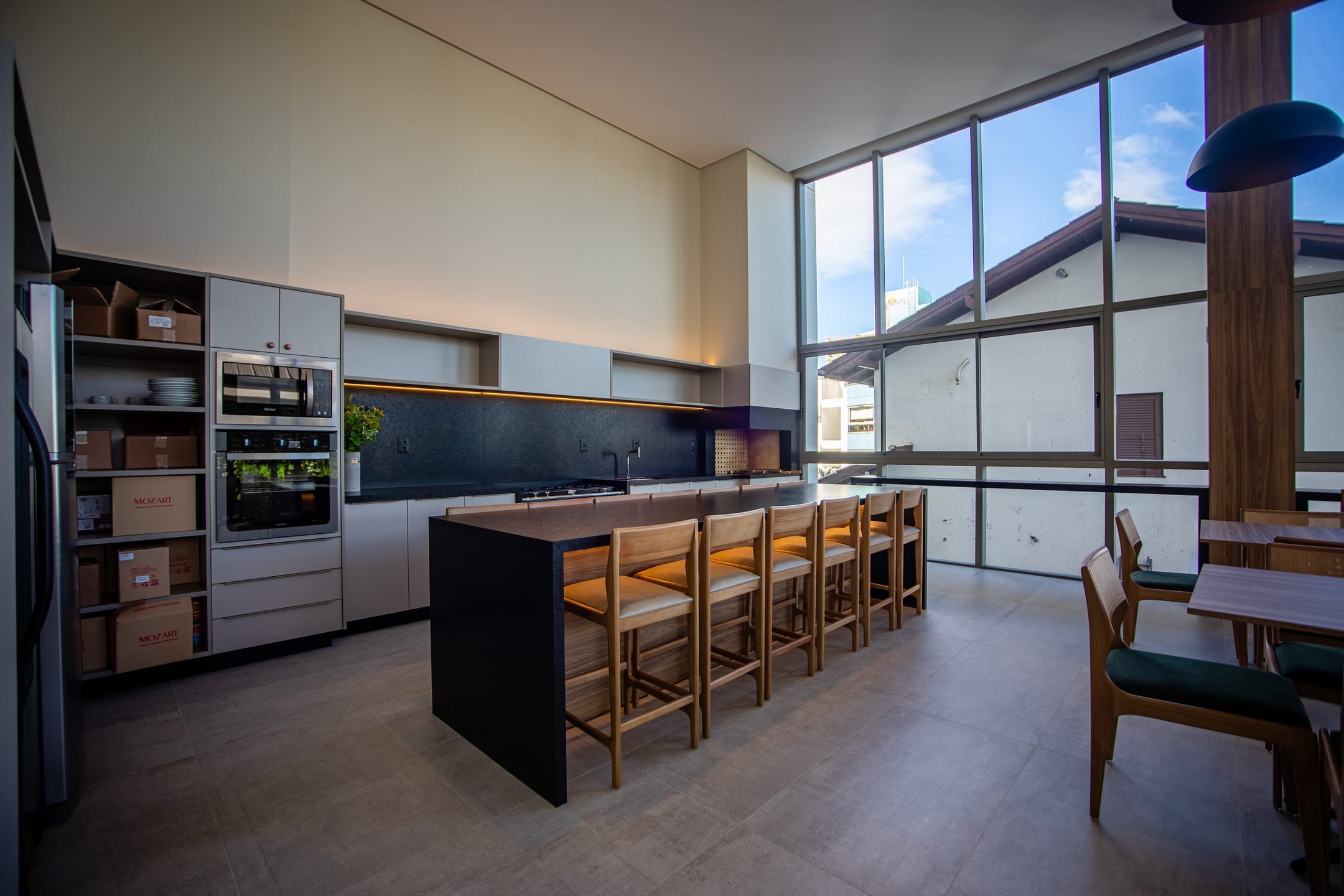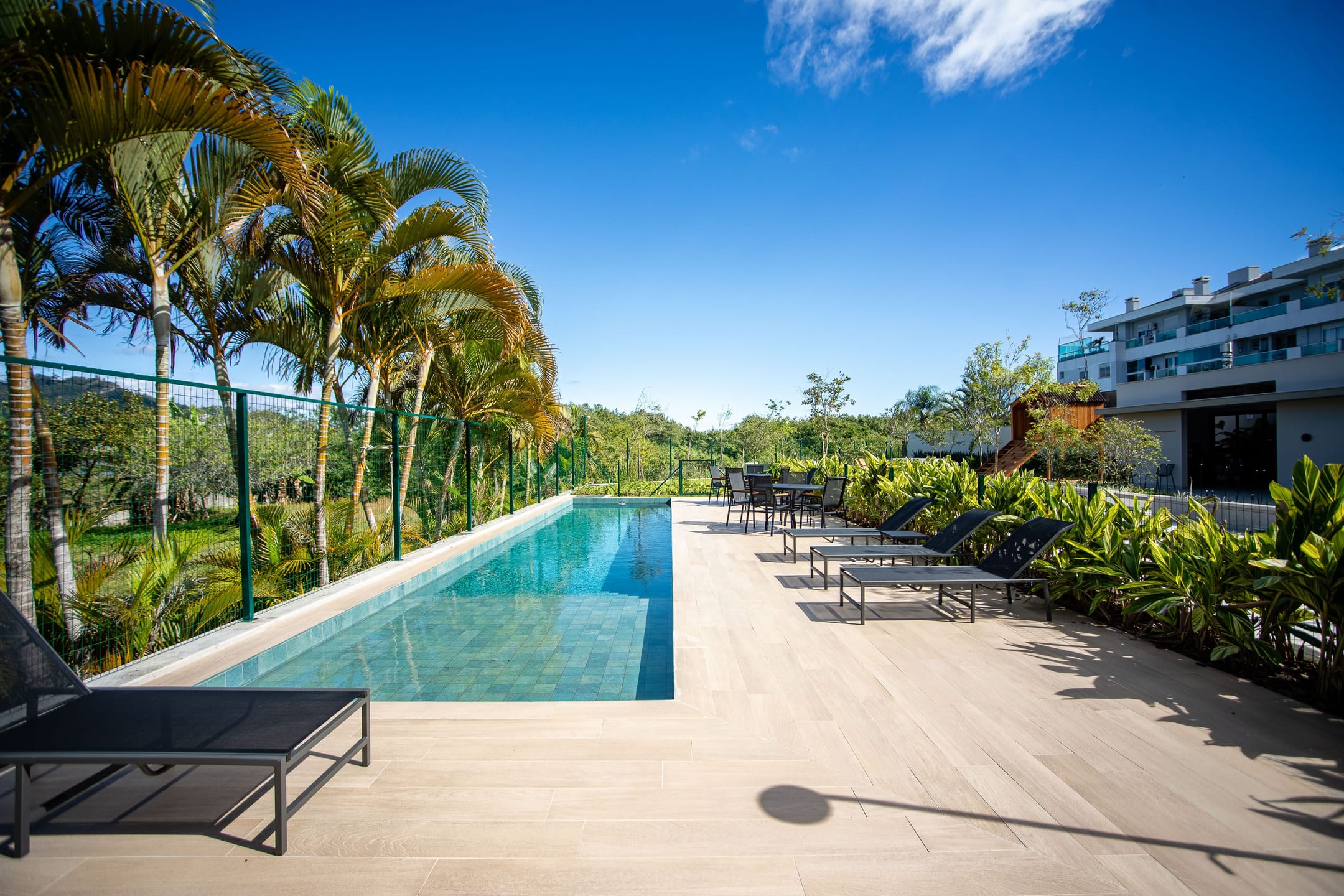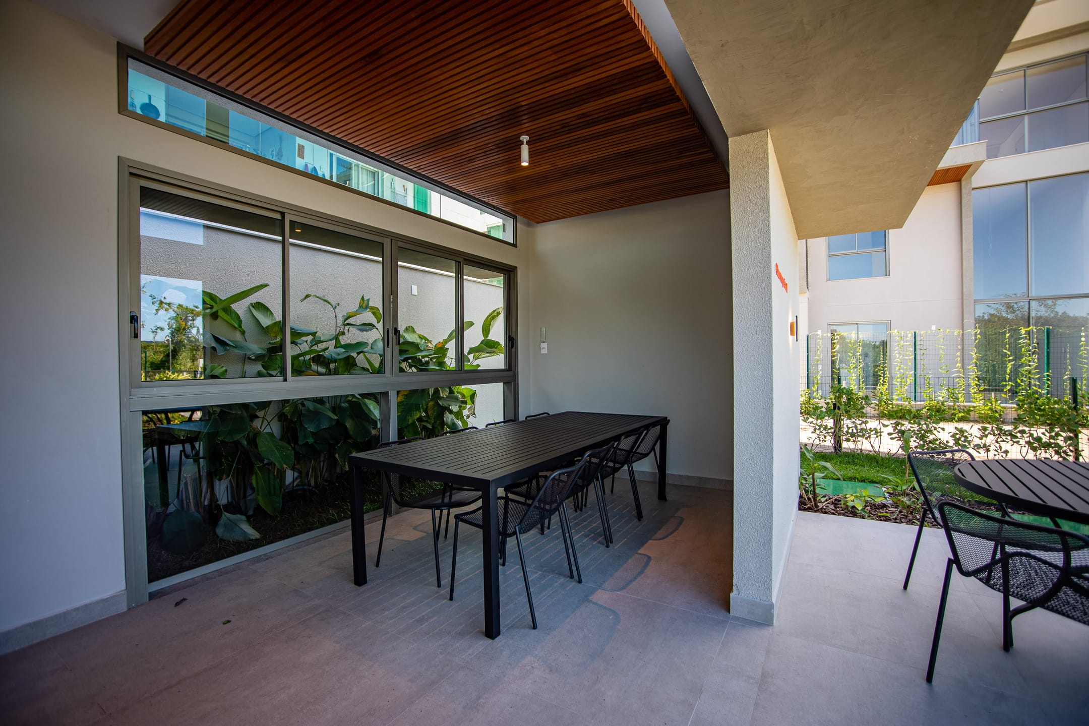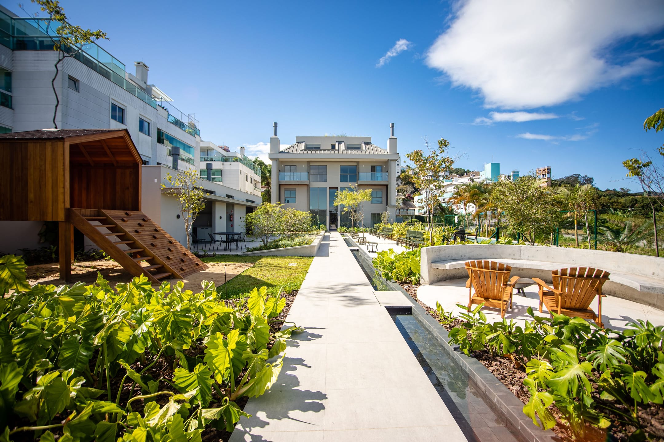Condomínio com arquitetura contemporânea integrada à natureza com salão de festas, academia, brinquedoteca, playground, piscina aquecida, espaço zen, piscina adulto e infantil, churrasqueiras, espaço pet e praça de fogo.