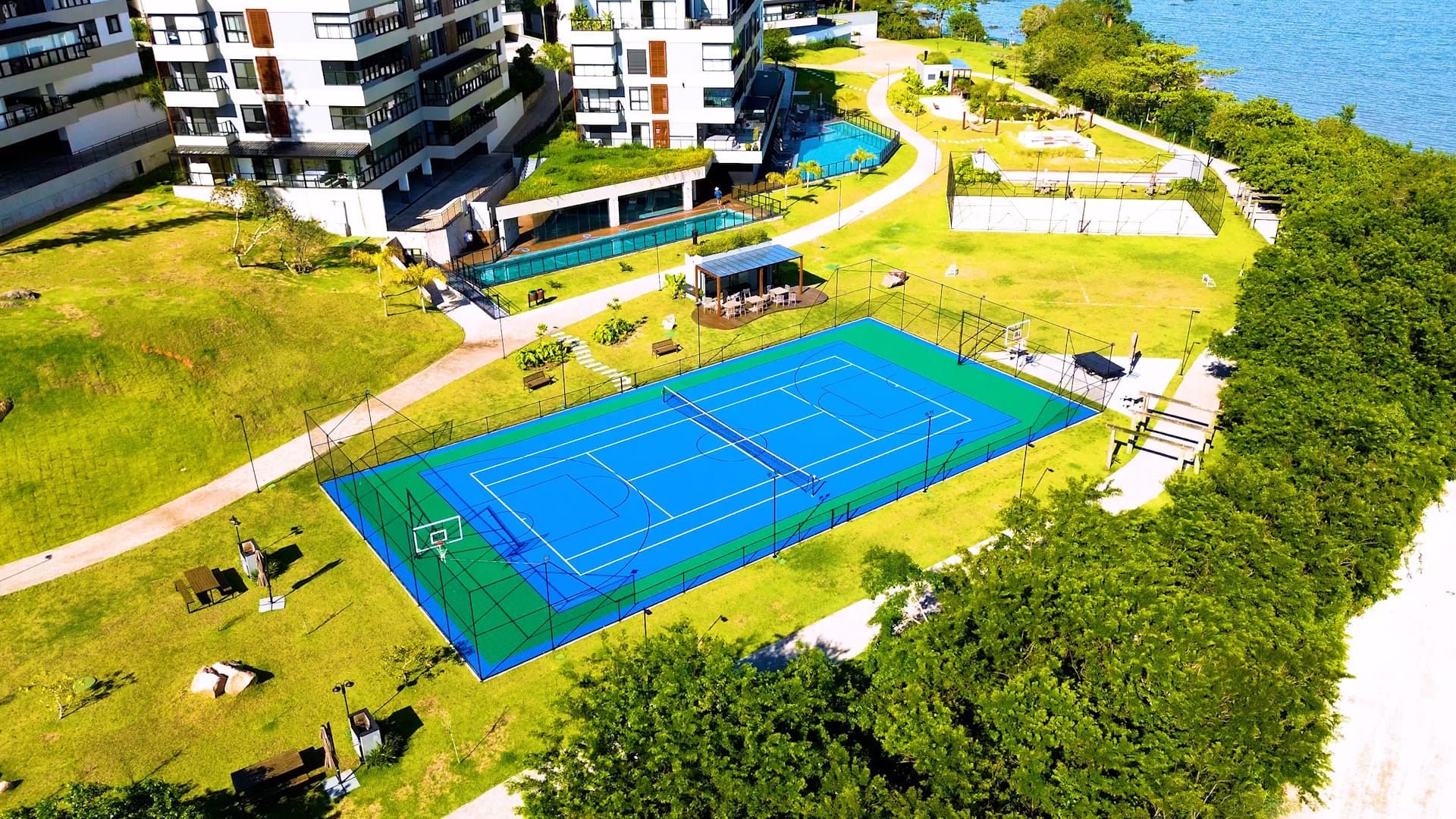 O condomínio é o mais completo do bairro com acesso direto ao mar, piscinas externas e interna aquecida, saunas, salão de festas, espaço gourmet, churrasqueiras, quadra poliesportiva, quadra de areia, cancha de bocha, playground, horta, praça do fogo, brinquedoteca, espaço adega, espaço para guarda de equipamentos aquáticos, portaria 24h.