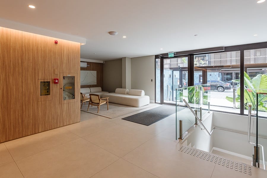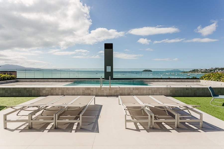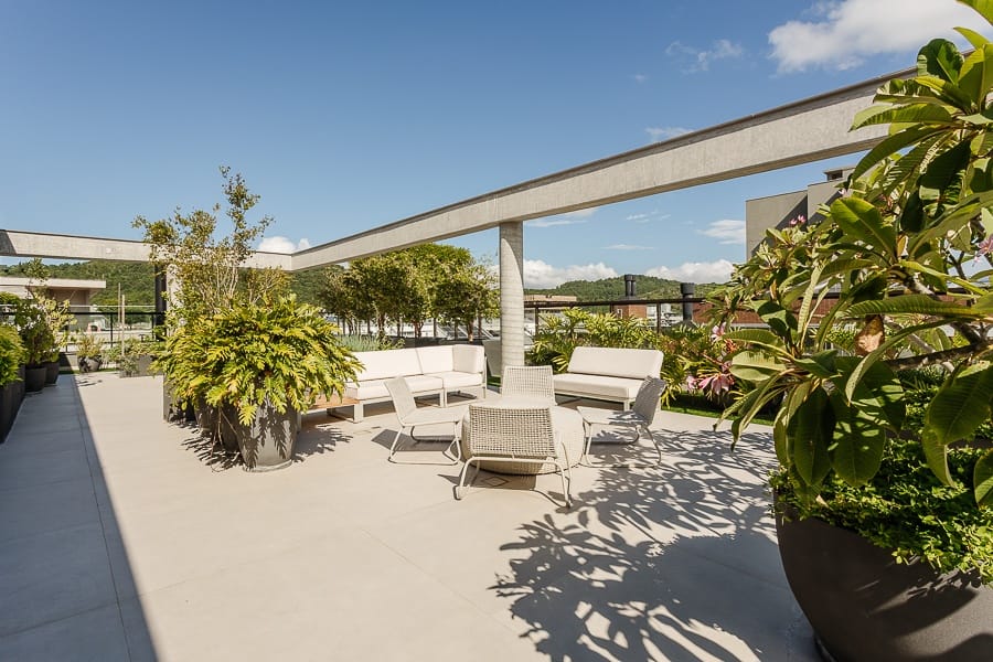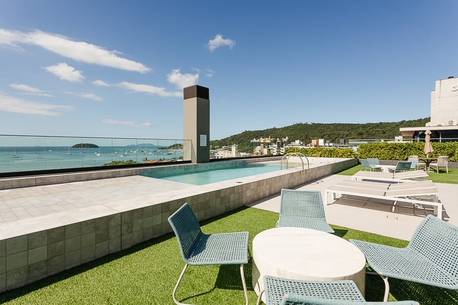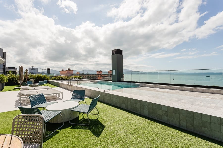 Na cobertura o prédio oferece área comum com academia, salão de festas, horta e piscina com vista mar.