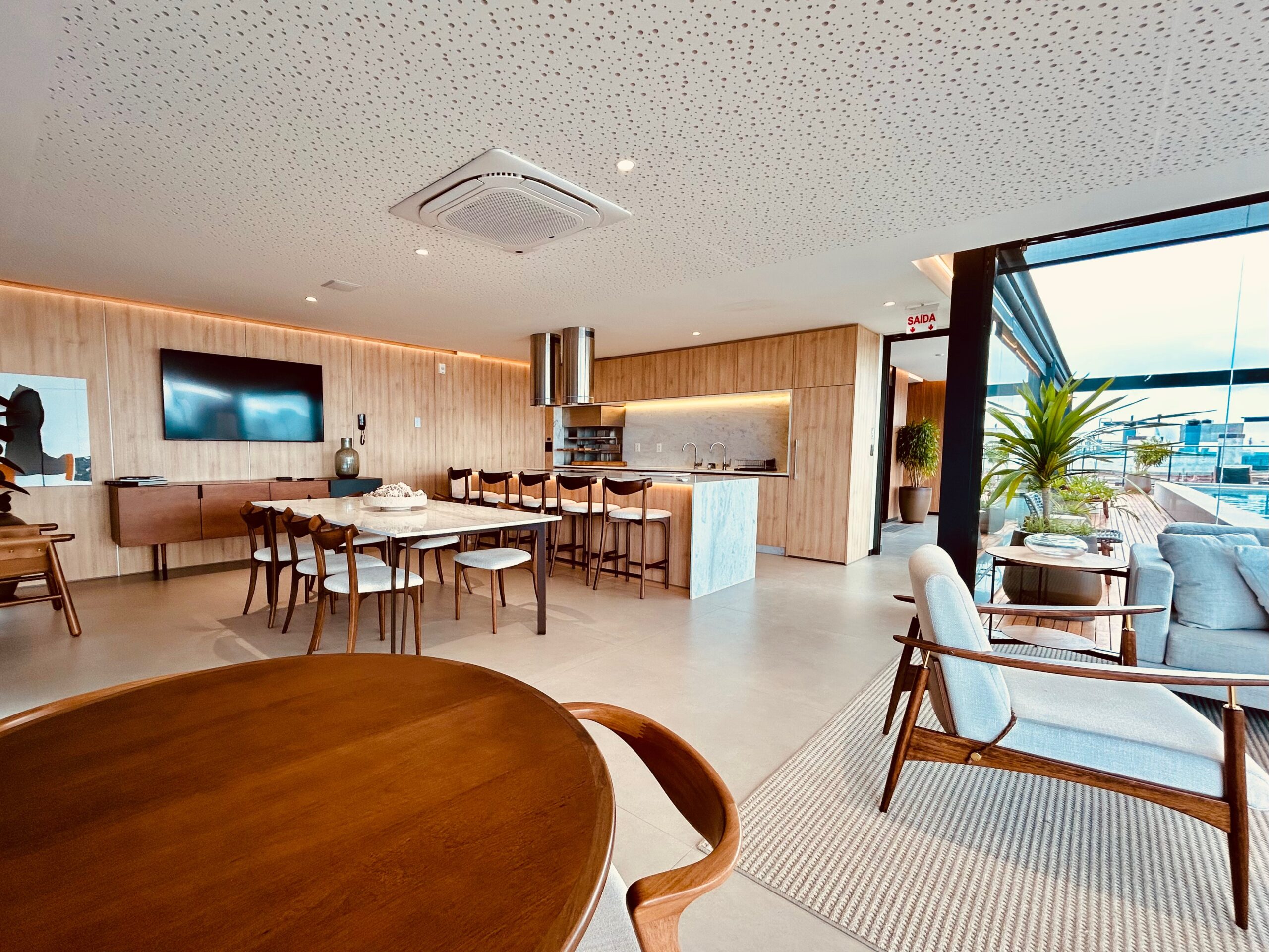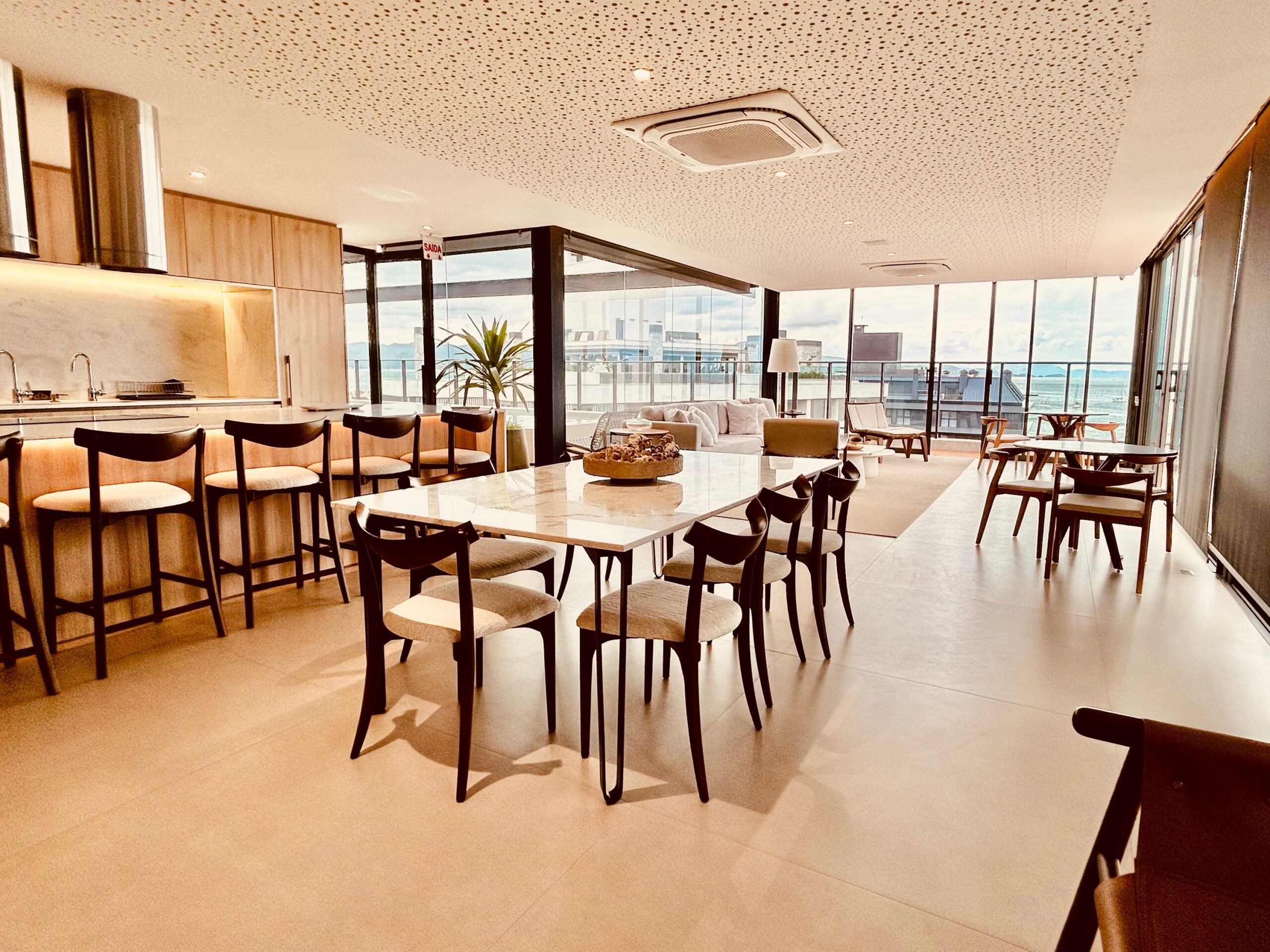O condomínio conta no ático com espaço fitness, salão gourmet e salão de festas, horta, skylounge e piscina com vista para o mar.