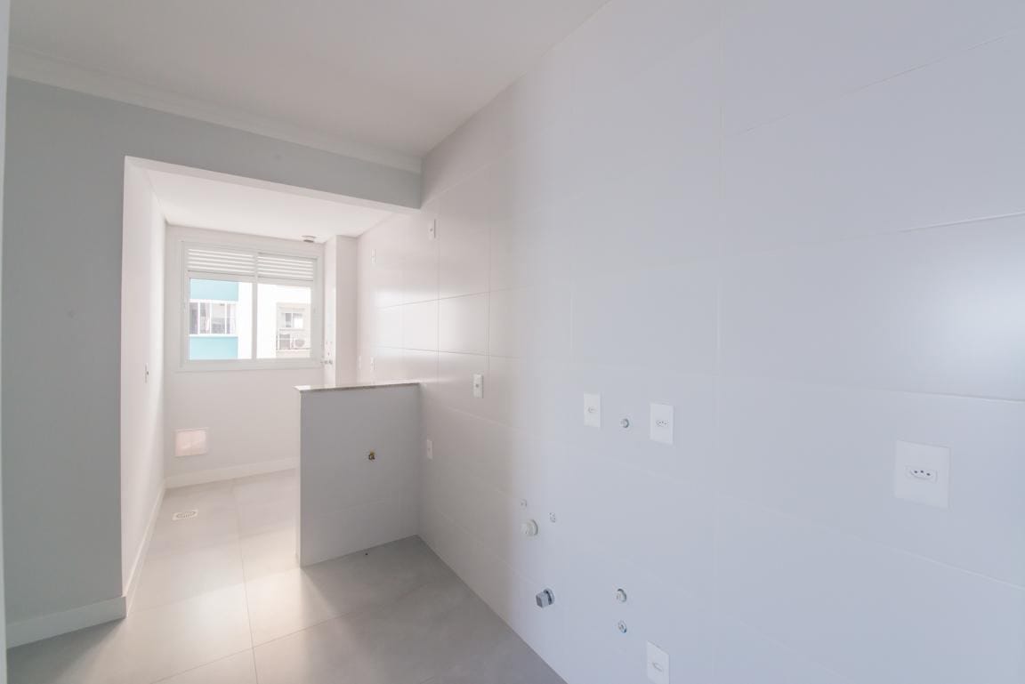 Apartamento com dois dormitórios, sendo uma suíte, living integrado com a cozinha, área de serviço, sacada com churrasqueira em andar alto e uma vaga de garagem.