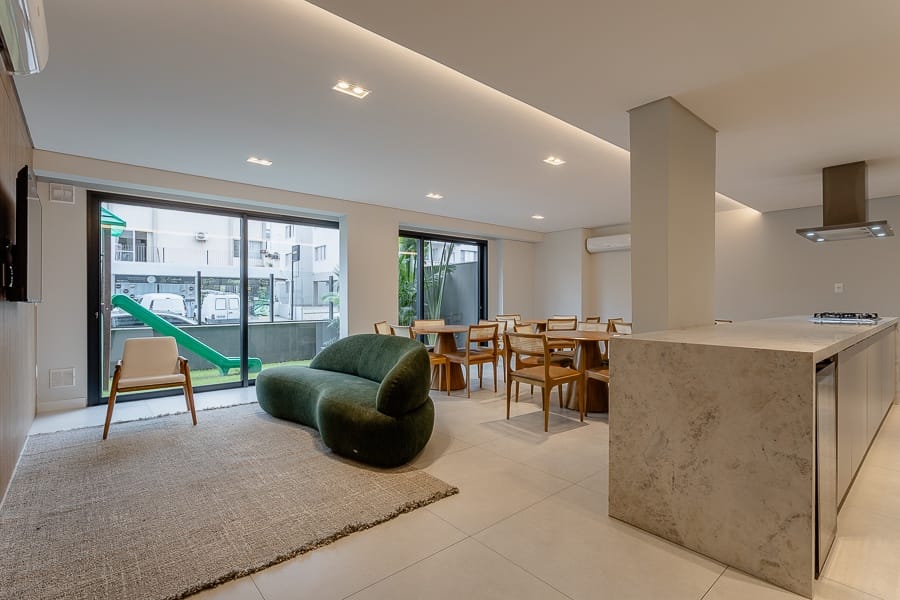 Apartamento à venda com três dormitórios, sendo uma suíte, no bairro comercial Floresta, São José. Living integrado com a cozinha em conceito aberto, móveis e armários novos e contemporâneos, varanda com churrasqueira, dormitórios com armários, uma vaga de garagem. O condomínio possui playground, academia, salão de festa e SPA com sauna. Localização em área com fácil acesso à via expressa e em área comercial com muitos empreendimentos novos.