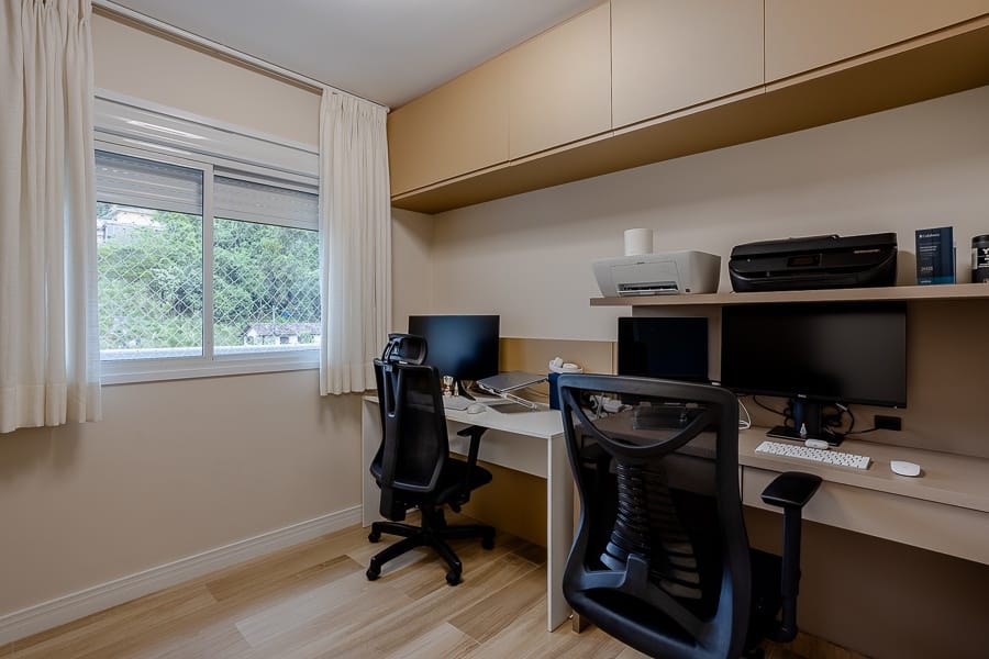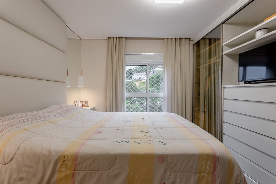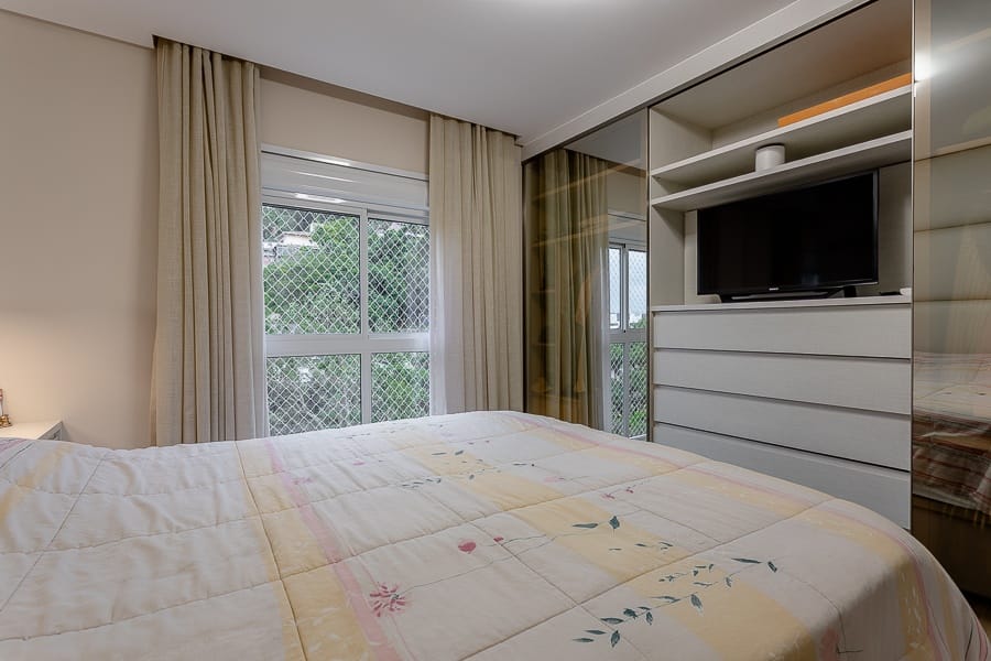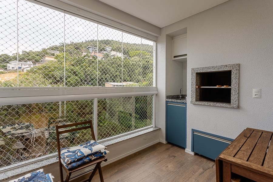 Apartamento à venda com três dormitórios, sendo uma suíte, vaga dupla de garagem e hobbybox. Tem a melhor posição solar – norte e vista para o mar e para o verde. Está mobiliado, com acabamentos diferenciados, sacada com churrasqueira e fica em condomínio com área de lazer completa: piscina, bosque, churrasqueiras, playground, brinquedoteca, salão de festas, espaço gourmet, portaria 24 horas.