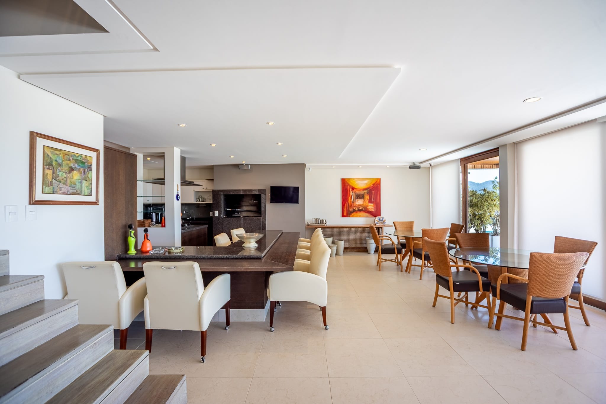 A residência conta com 7 suítes, todas pensadas para oferecer conforto e privacidade Os ambientes são integrados e sofisticados, com destaque para a área gourmet, perfeita para receber amigos e familiares, e uma adega projetada para apreciadores de bons vinhos.