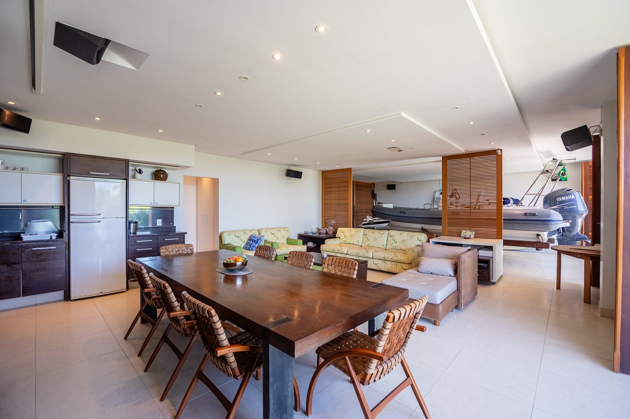 Um dos grandes diferenciais do imóvel é a garagem náutica com acesso direto ao canal, ideal para quem valoriza praticidade e liberdade para sair de lancha a qualquer momento. O deck privativo completa o cenário, permitindo acesso direto ao canal e momentos únicos à beira d’água.