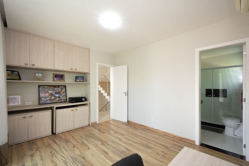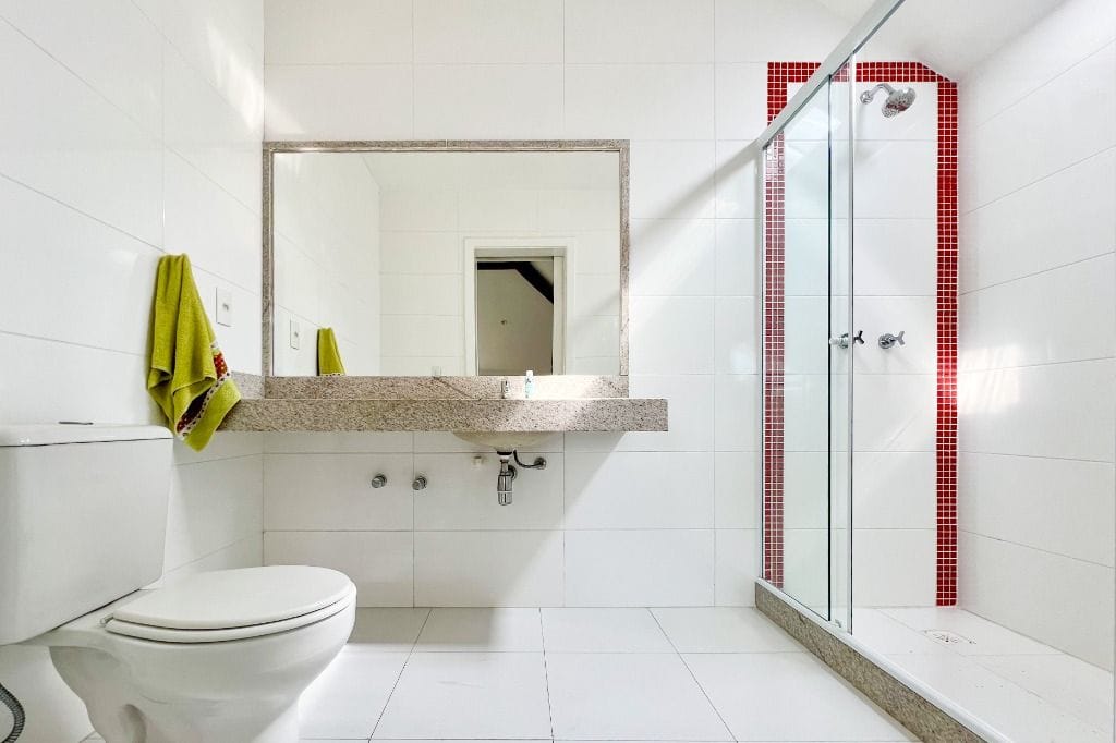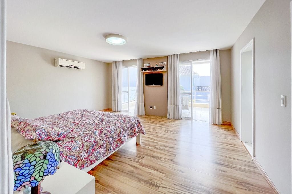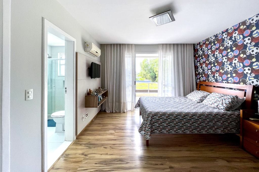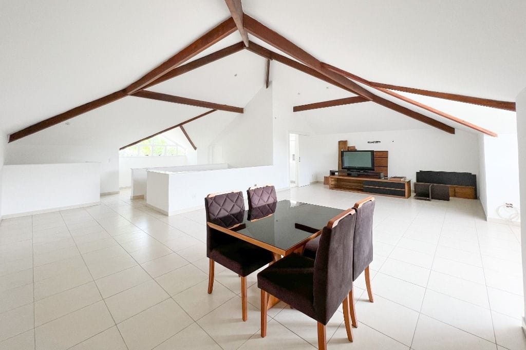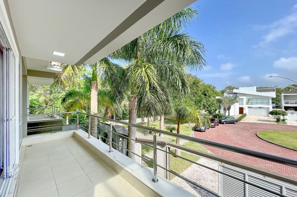 Todas as suítes com varanda e três delas possuem closet; suíte master com hidro e cuba dupla; amplo sótão com banheiro e copa de apoio; sistema de captação de água da chuva; preparação para placas solares; área externa com espaço gourmet, sauna, piscina com prainha e raia de 13 metros.