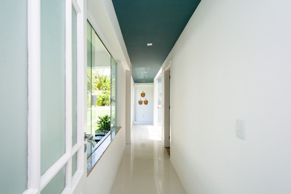 Sala espaçosa e arejada, em dois ambientes, integrada à varanda. Área de circulação com jardim de inverno, favorecendo ainda mais a iluminação natural dos ambientes. São três suítes térreas (uma delas com closet) e mais três suítes no segundo piso, todas com closet e a master com hidromassagem.