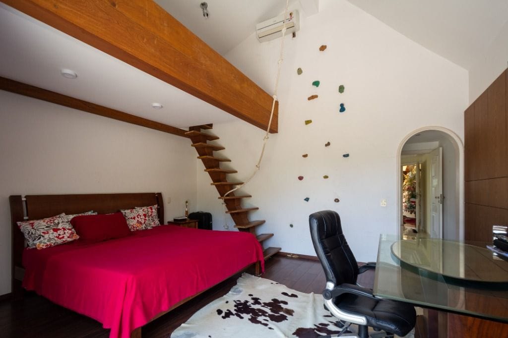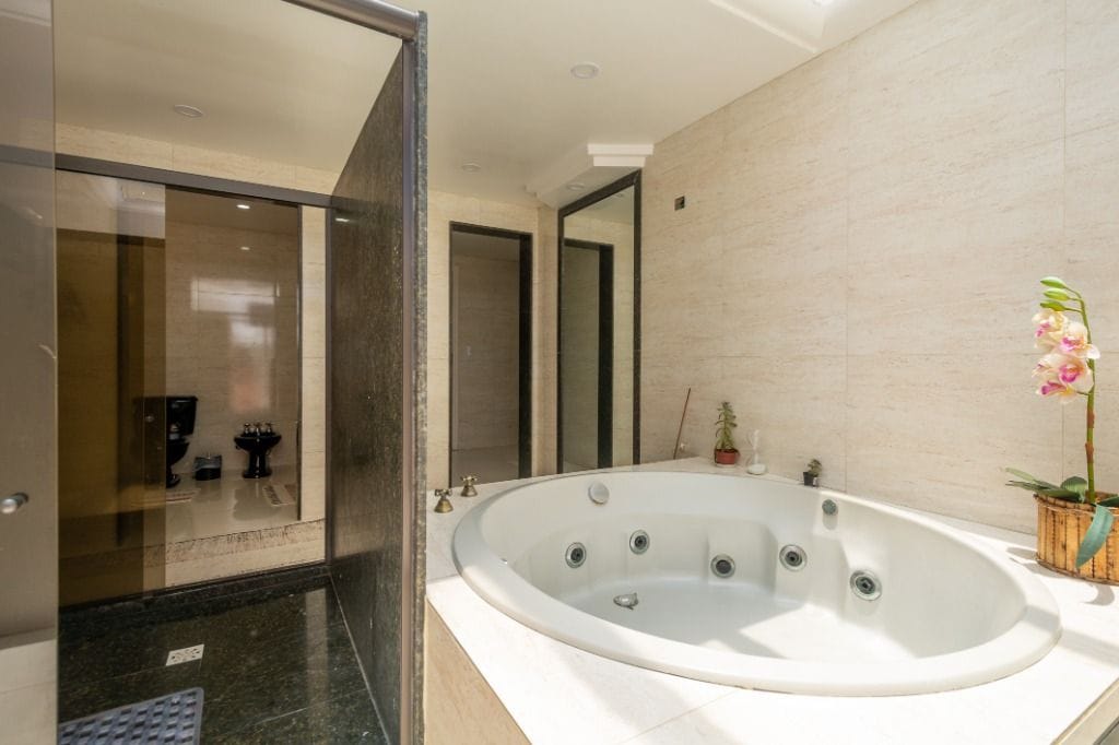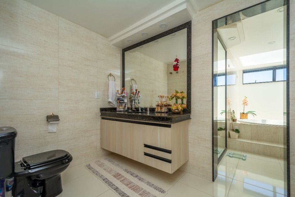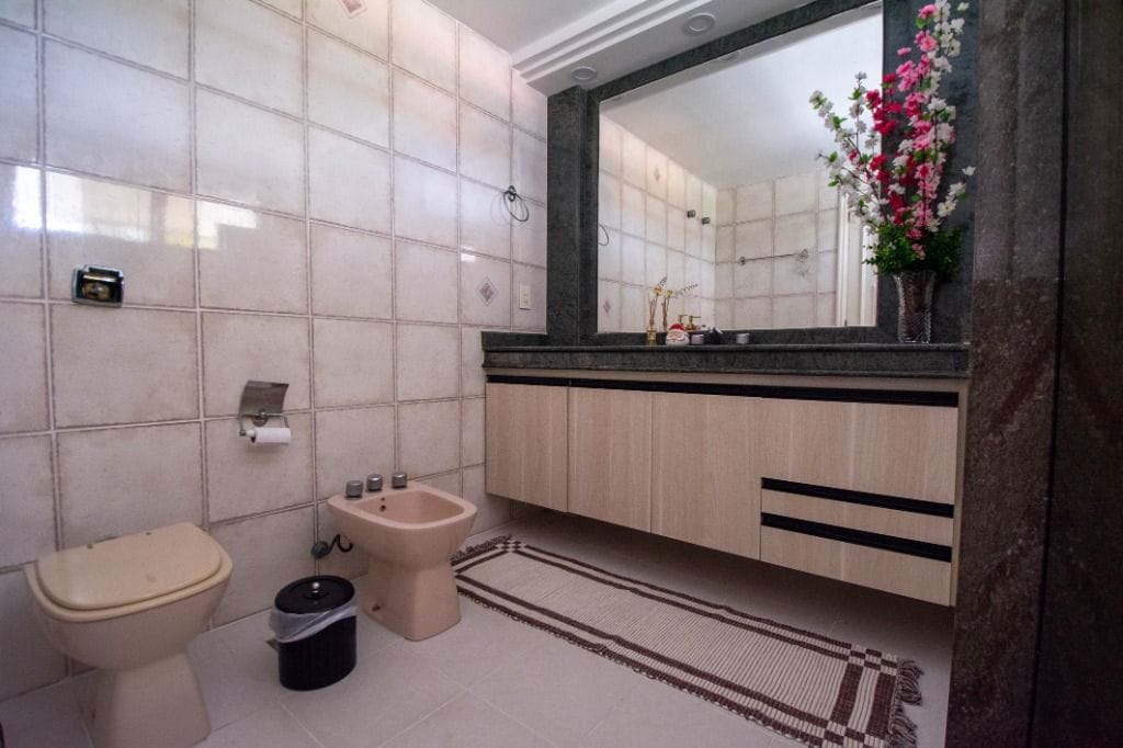 Em condomínio tradicional do bairro, que se destaca por sua localização privilegiada, segurança 24 horas e total infraestrutura em clube privativo. Com a fachada em pedras e abraçada pelo verde, é composta por biblioteca; sala em três ambientes; sala de jantar; cozinha espaçosa; piscina com queda d’água dupla e bar; área gourmet fechada com churrasqueira e forno de pizza à lenha; sauna e spa no subsolo; todas as suítes com closet e varanda, integradas à uma sala intima e uma cozinha de apoio, sendo a suíte master com hidromassagem, dois banheiros independentes e claraboia; lavanderia e dependência completa.