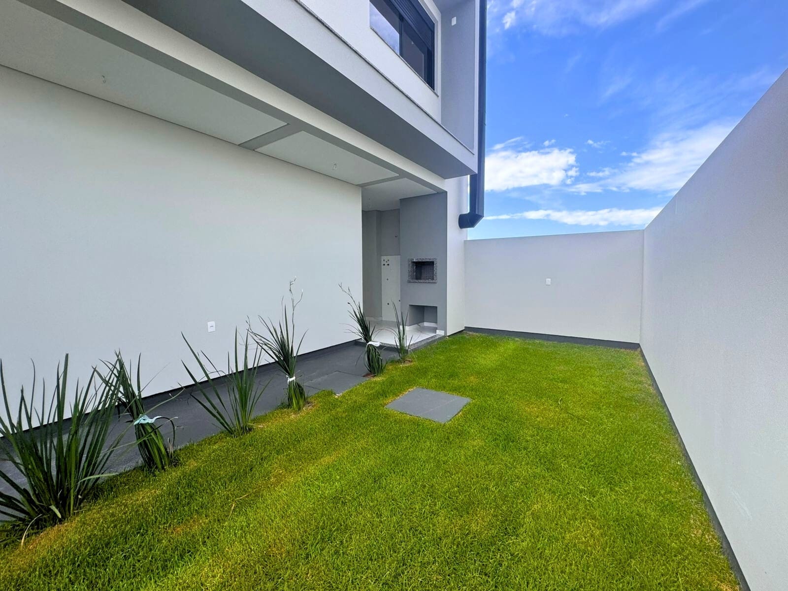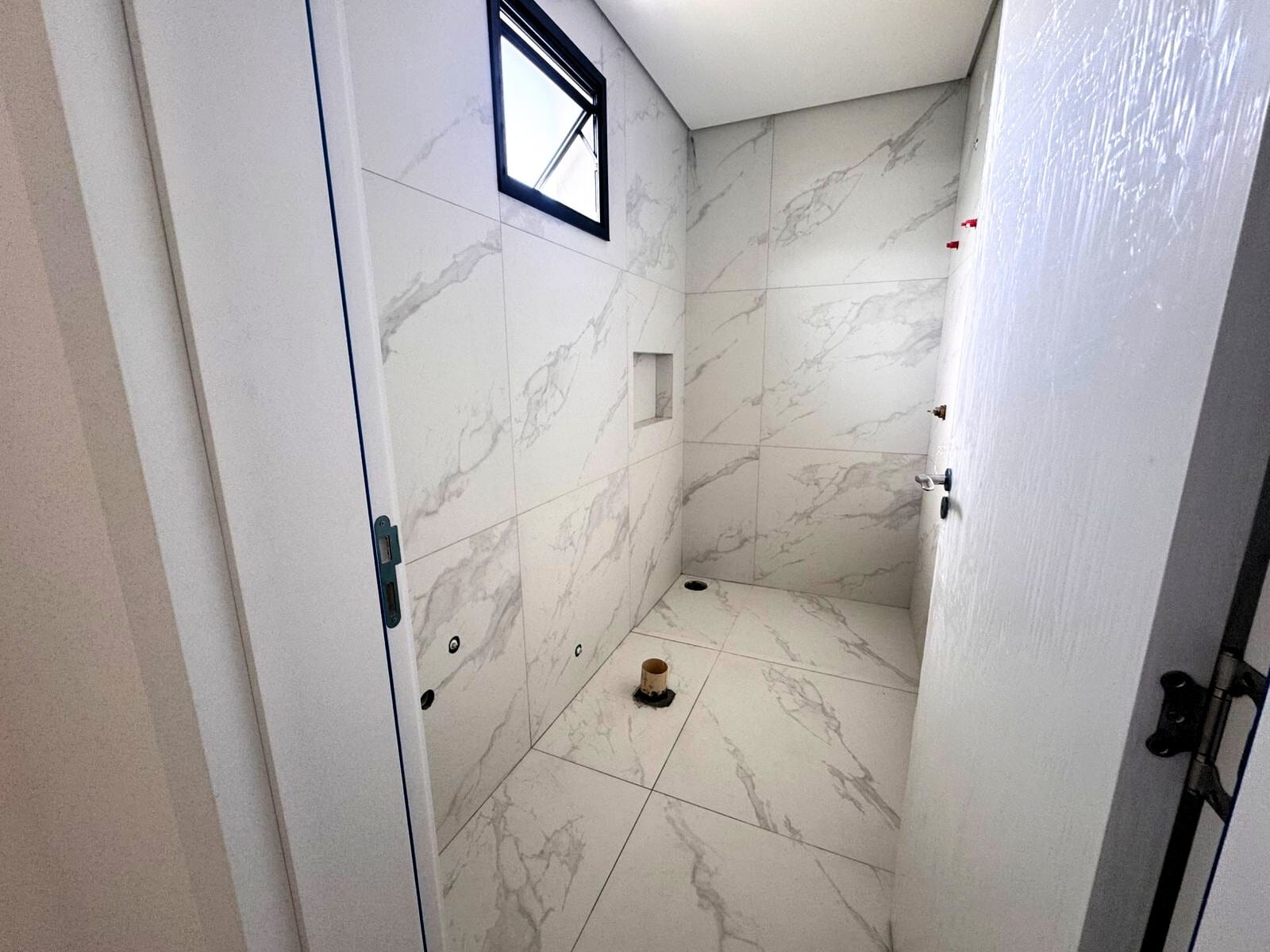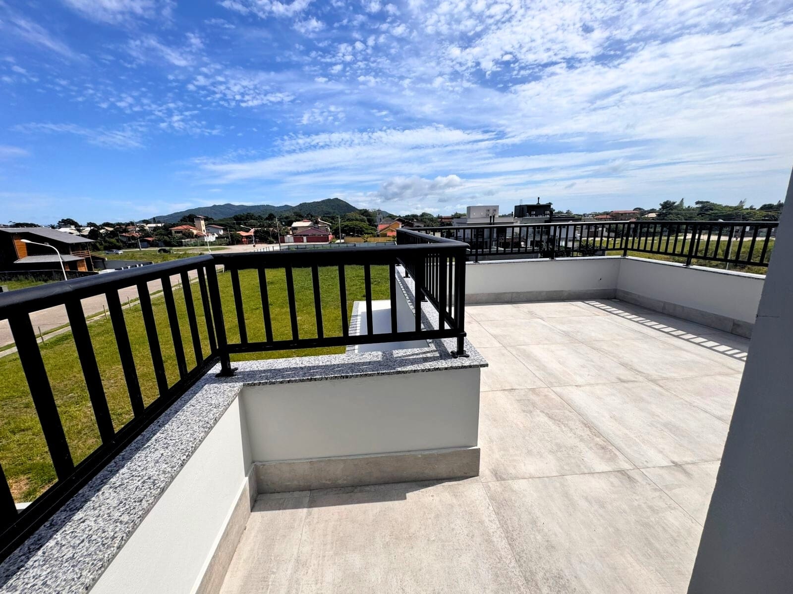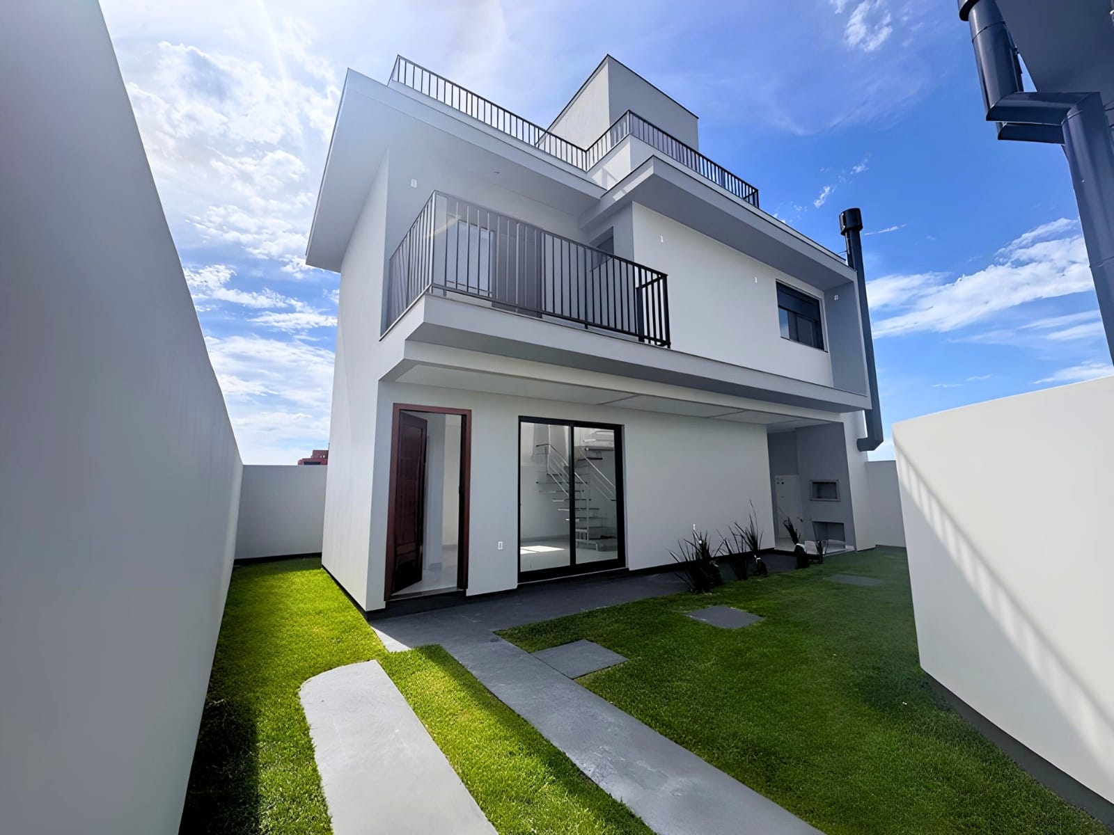 Casa de dois dormitórios, sendo duas suítes, salas integradas, lavabo, cozinha, área de serviço, churrasqueira a carvão e acesso ao terraço na cobertura.