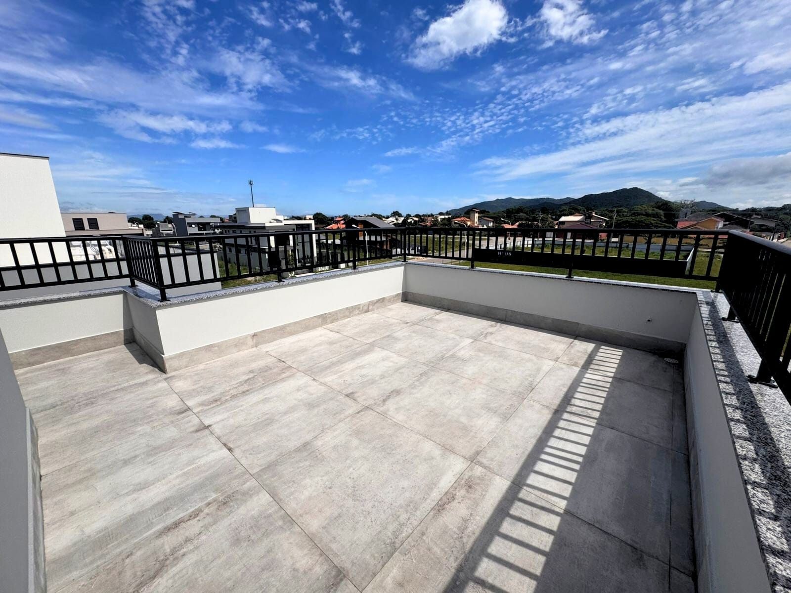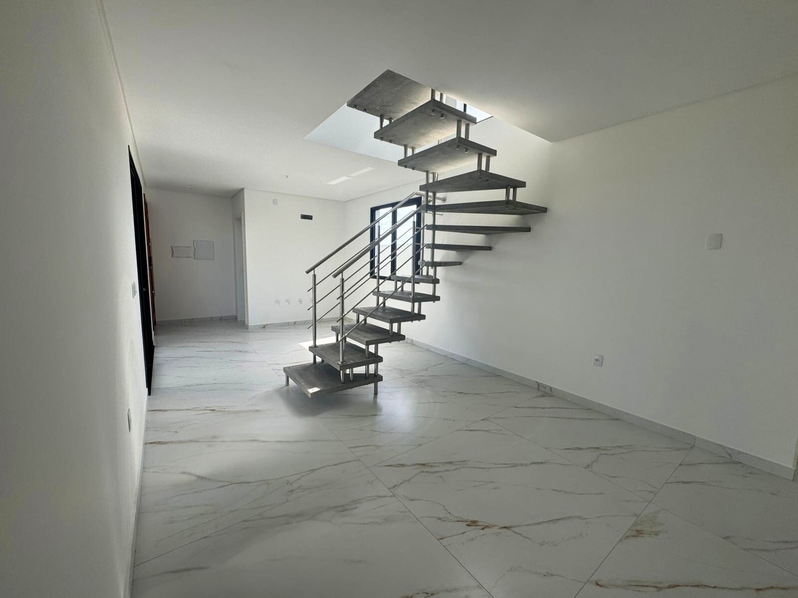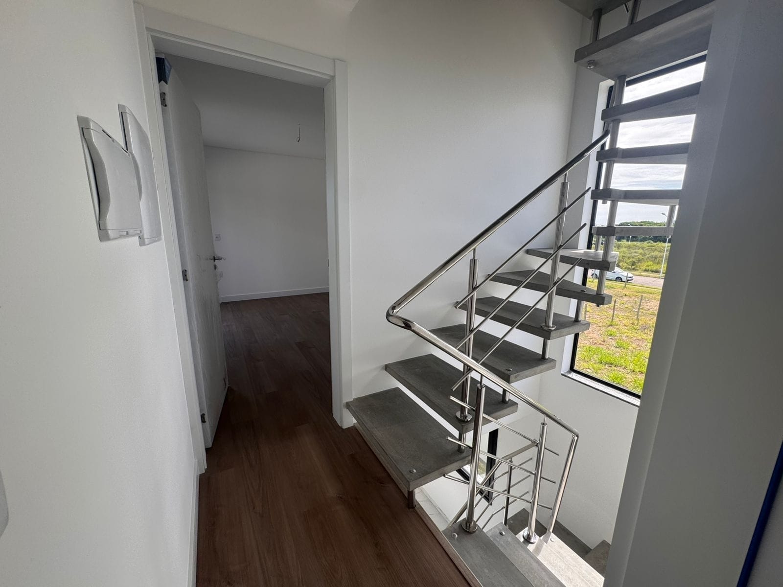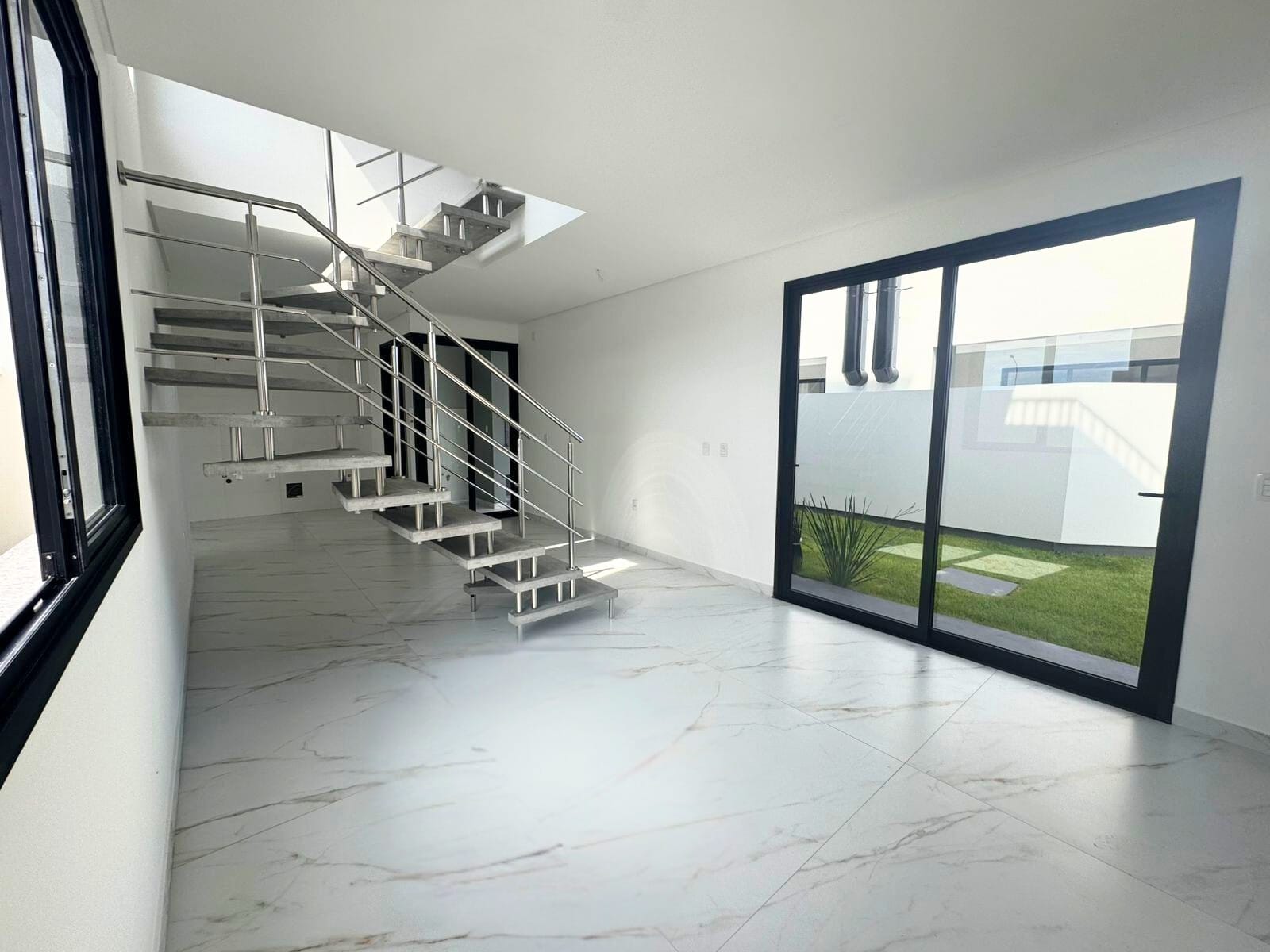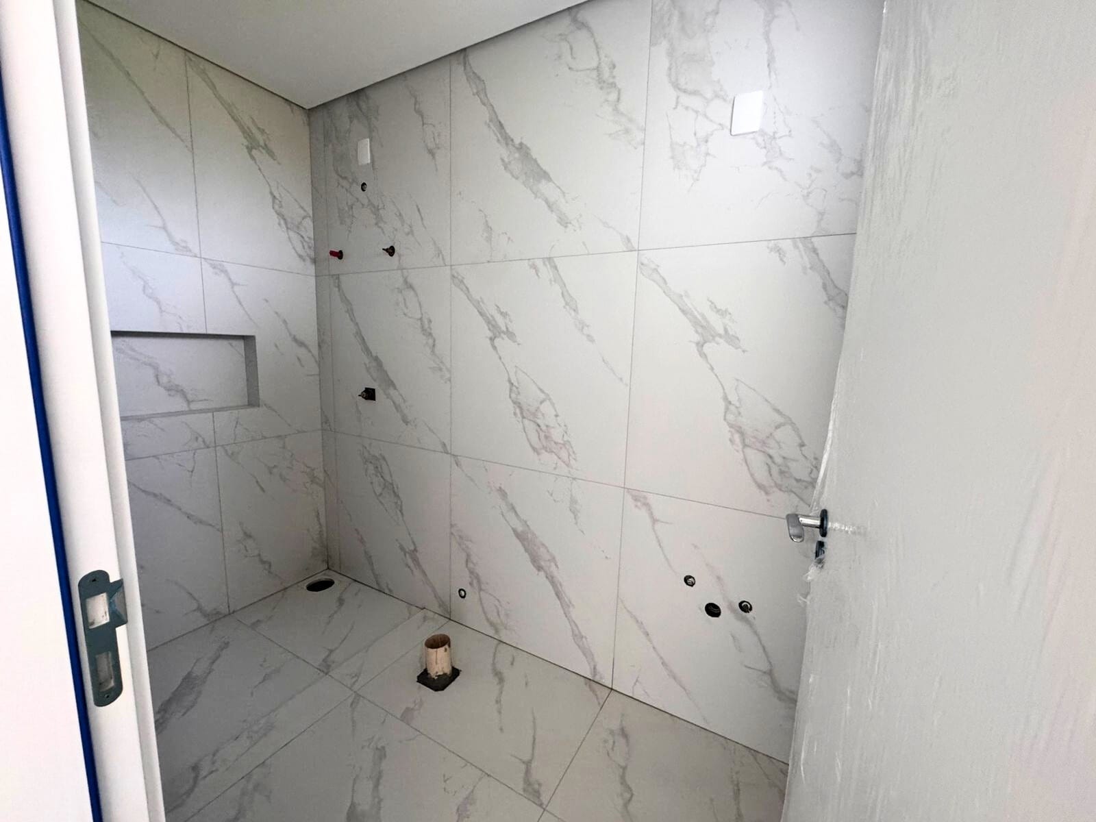 Casa de dois dormitórios, sendo duas suítes, salas integradas, lavabo, cozinha, área de serviço, churrasqueira a carvão e acesso ao terraço na cobertura.