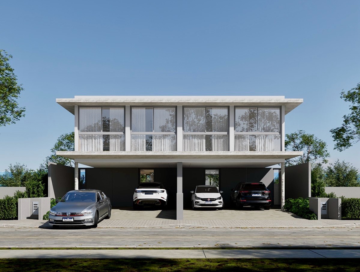 Casa geminada em construção de dois pavimentos, no andar superior, três dormitórios, sendo uma suíte com closet e sala de estar.