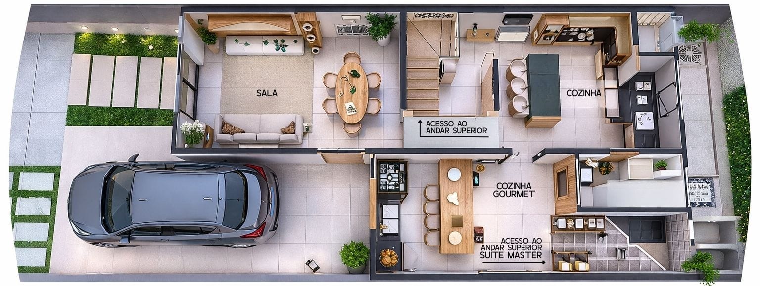 Casa de três dormitórios, sendo três suítes, salas integradas, lavabo, cozinha com lavanderia e cozinha gourmet. Casa permite transformar parte do imóvel em um loft independente.