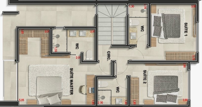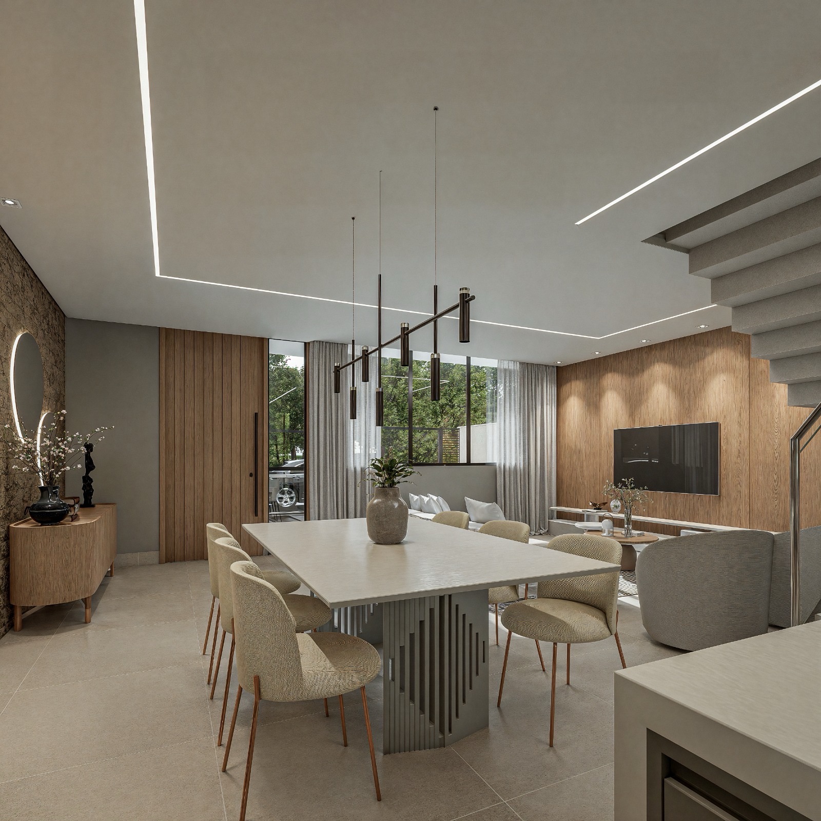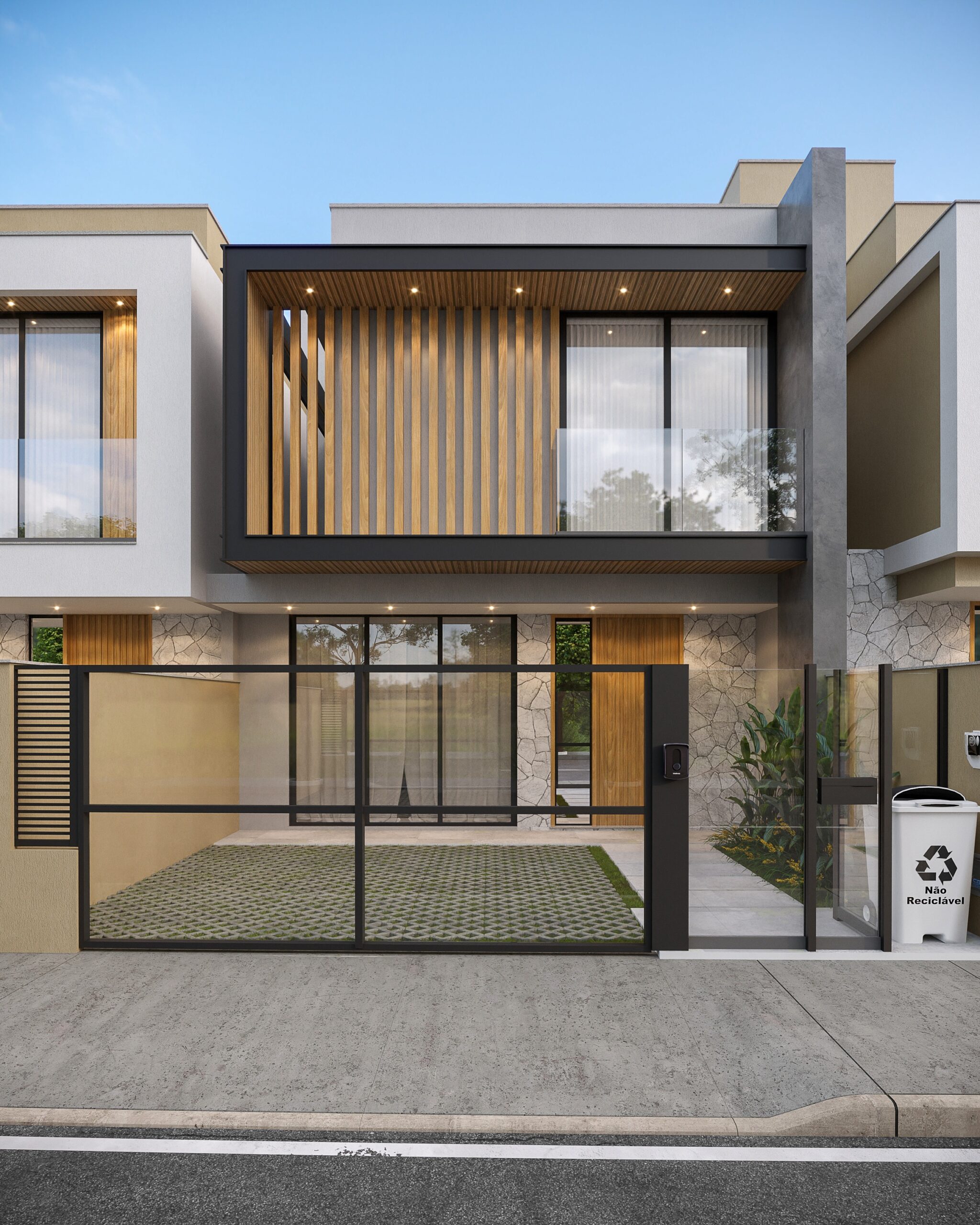 Casas em estilo contemporâneo com alto padrão de acabamento: porcelanato grandes formatos, piso vinílico, portas com pintura semilaqueada, rodapés de poliestireno, esquadrias modernas com persiana blackout automatizada. Previsão de entrega: Setembro/26.