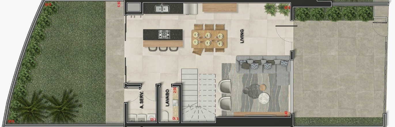 Casa com dois andares em construção. No térreo, living em conceito aberto e integrado à cozinha gourmet, com lavabo, área de serviço, duas vagas de garagem e jardim gramado. No piso superior são três suítes. A casa faz parte de um mini condomínio de três casas geminadas.