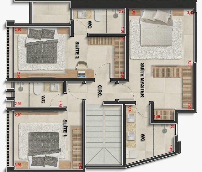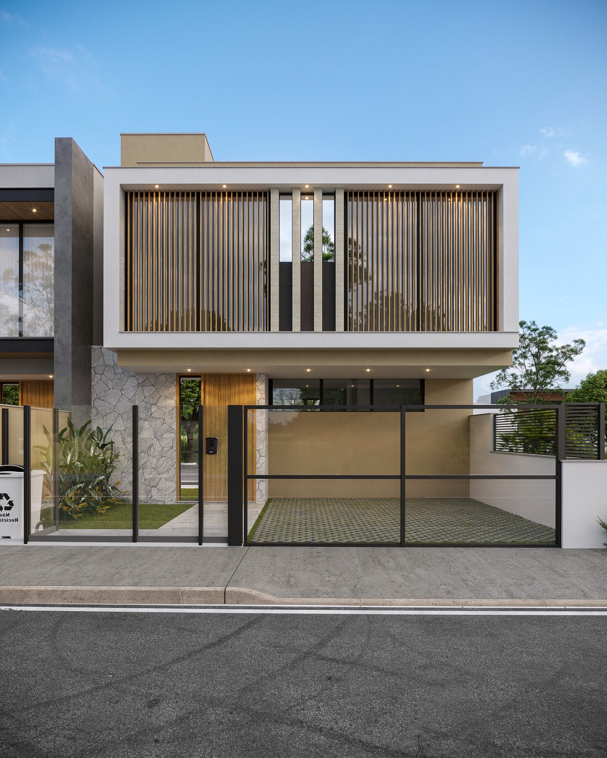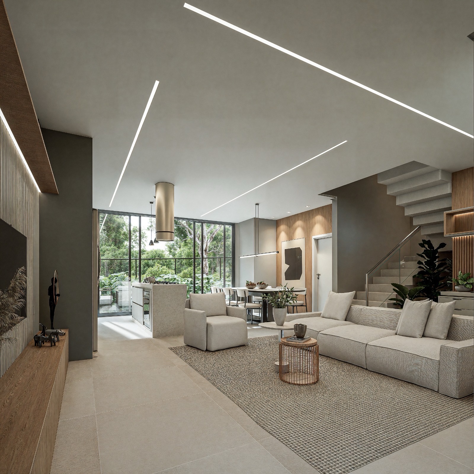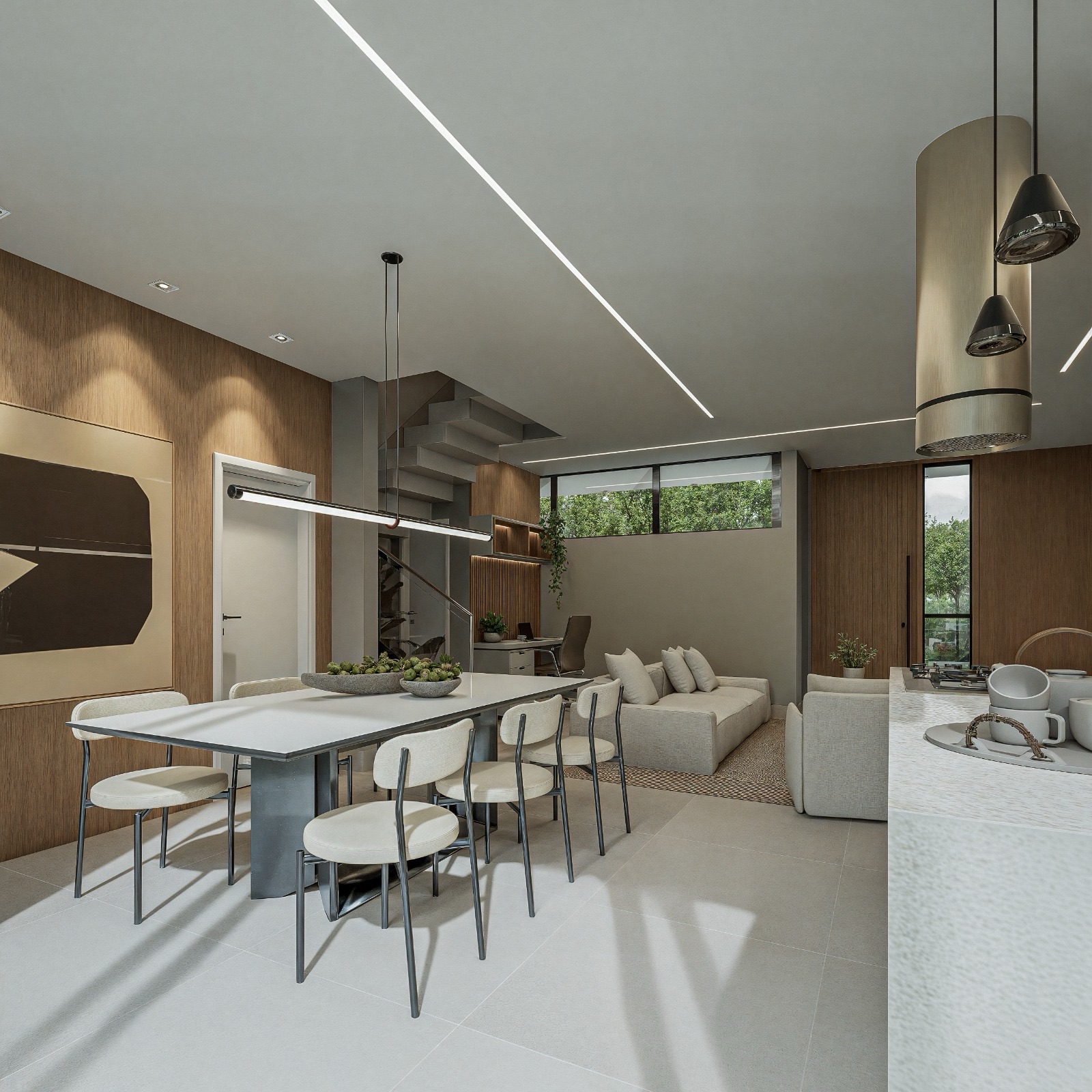 Casas em estilo contemporâneo com alto padrão de acabamento: porcelanato grandes formatos, piso vinílico, portas com pintura semilaqueada, rodapés de poliestireno, esquadrias modernas com persiana blackout automatizada. Previsão de entrega: Setembro/26.