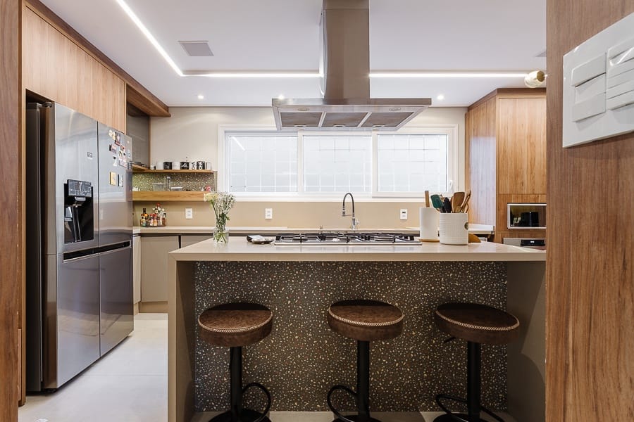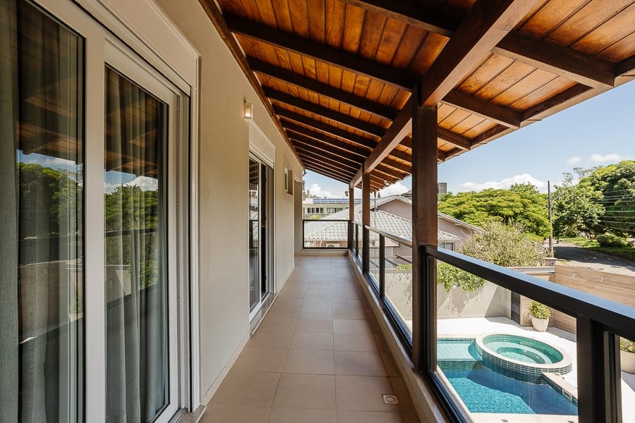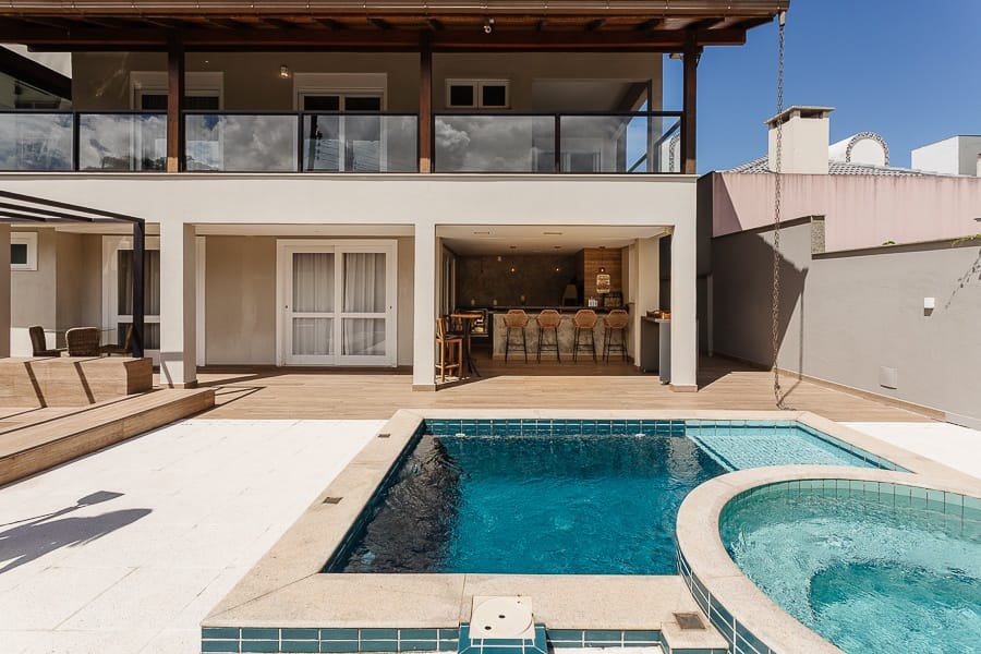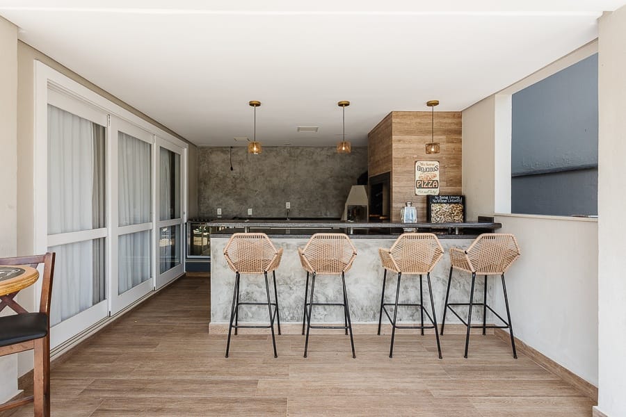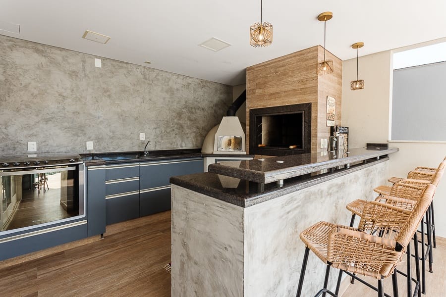 Seu espaço gourmet com churrasqueira a carvão e espaço para refeições. Sua área externa conta com uma piscina e spa integrado e um pátio privativo.