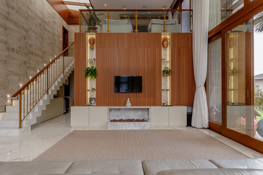 Com projeto arquitetônico moderno e diferenciado priorizando conceitos de sustentabilidade com aproveitamento máximo da luz natural, a casa nova em condominio fechado, fica numa esquina com vista privilegiada.No andar inferior uma sala de visitas, living, lavabo, cozinha, lavanderia, suíte com closet e garagem coberta.O living é o destaque da casa com pé direito imponente, amplo ambiente de estar e jantar.Espaço externo com churrasqueira integrada à piscina . No pavimento superior, conta com 3 amplas suítes com closet e hidromassagem. No acesso às suítes, amplo espaço de mezanino que pode ser usado como escritório.Condomínio com segurança 24 horas.