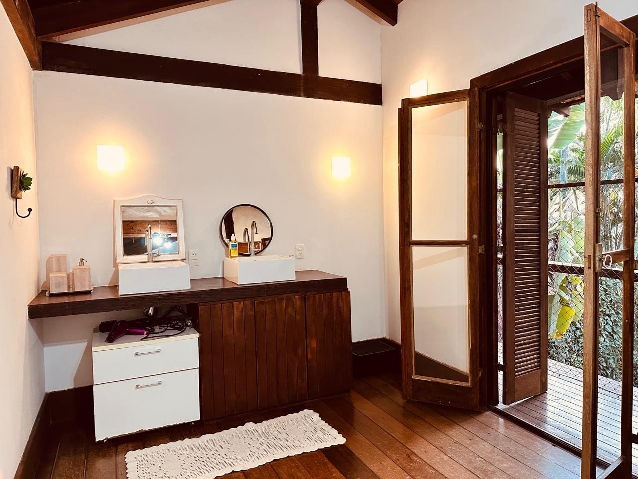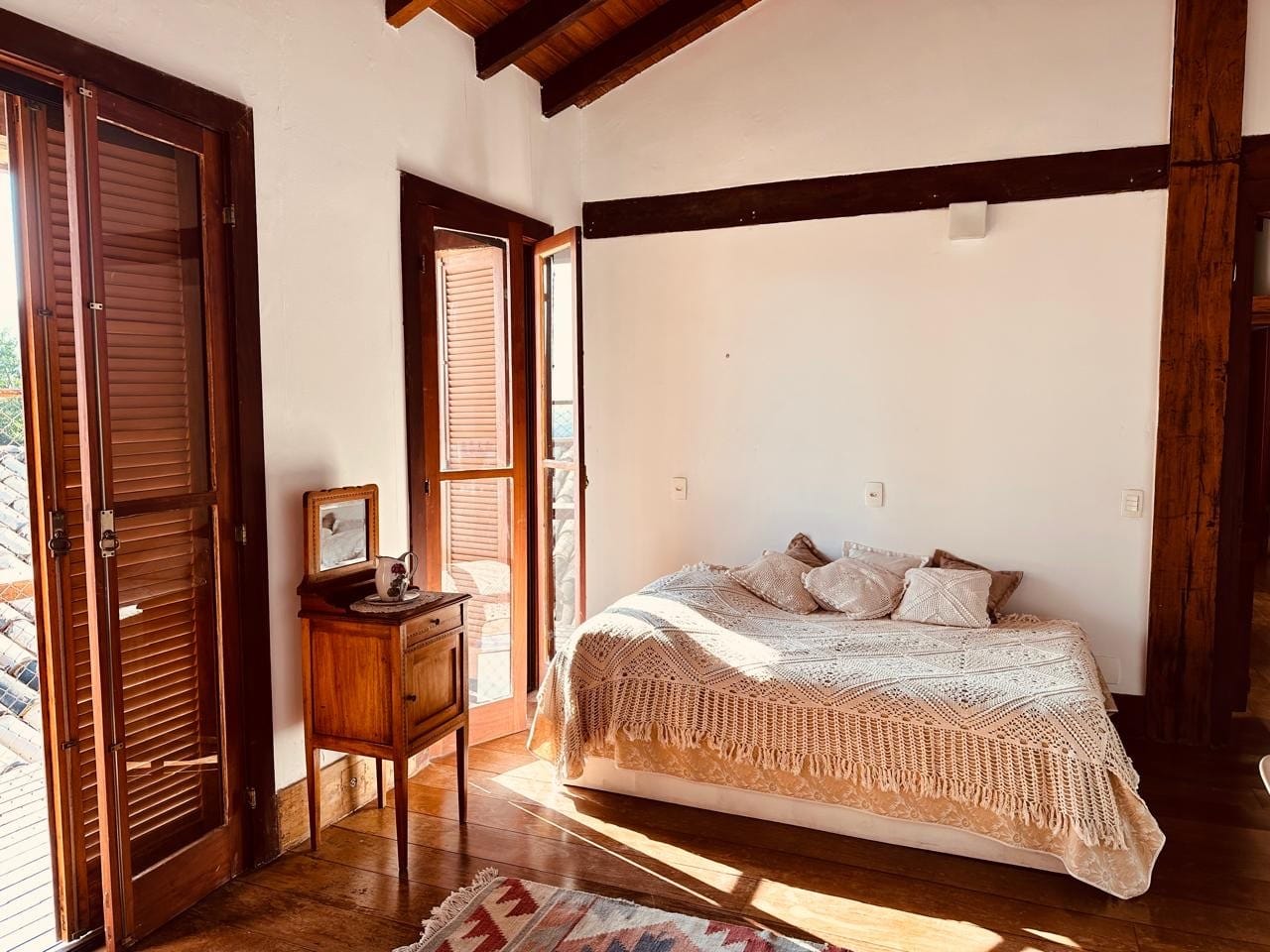 Além de uma suíte master super especial, há um chalé independente para hóspedes.
