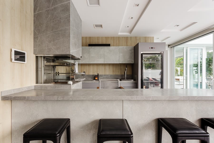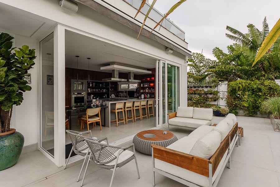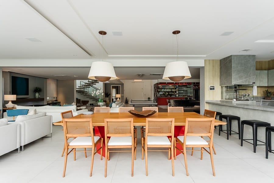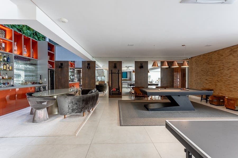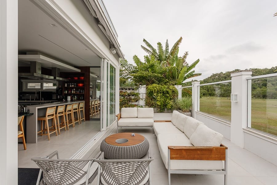 A área de lazer é um verdadeiro destaque, com espaço gourmet completo integrado à piscina. A casa dispõe ainda de oito vagas de garagem.