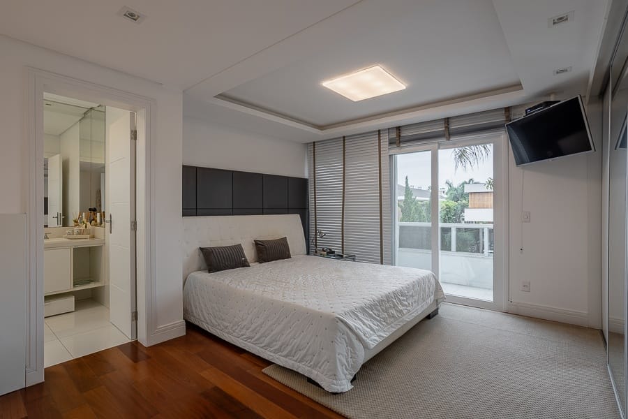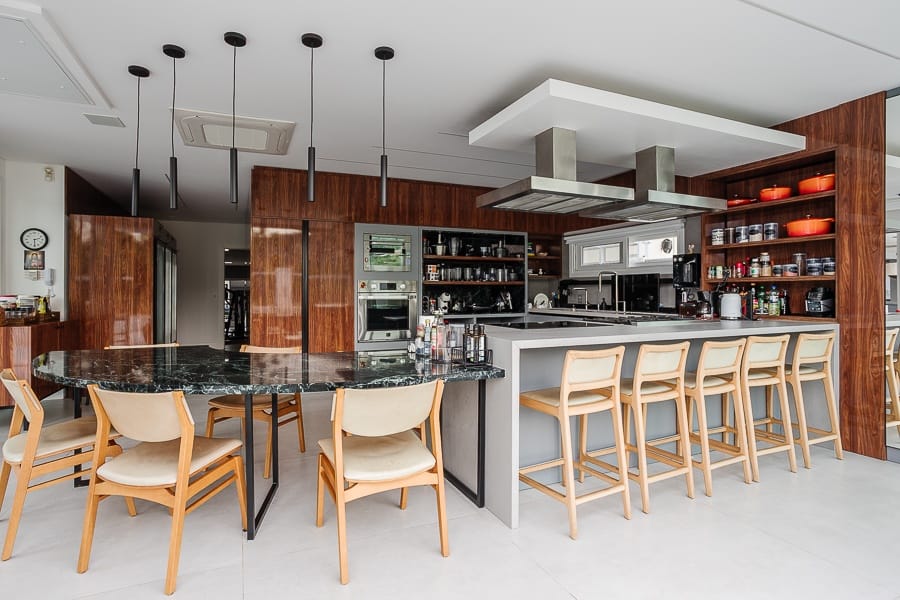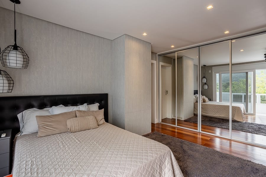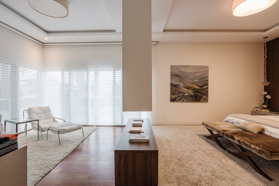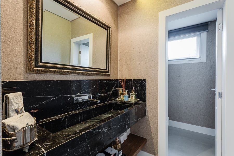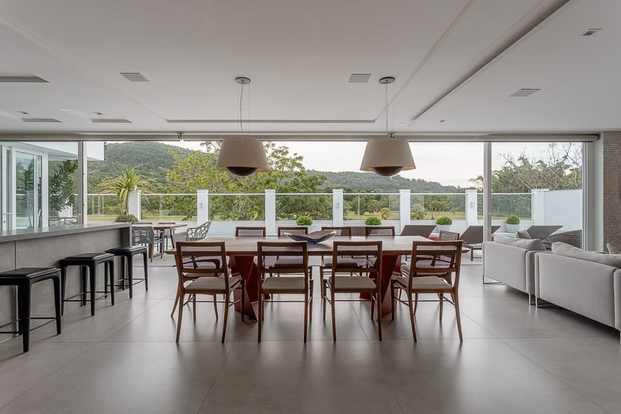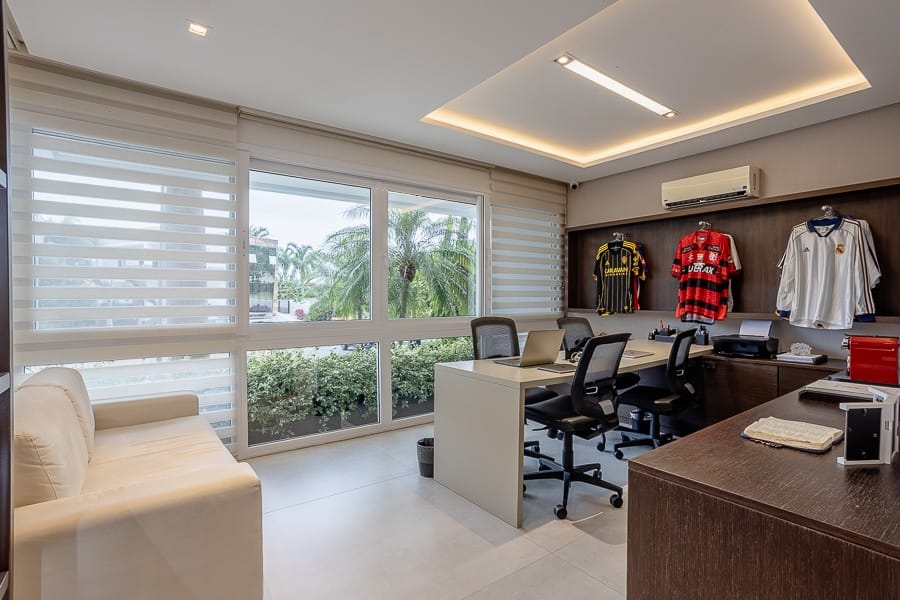 São cinco suítes além de oito banheiros, salas amplas e integradas, com excelente iluminação.