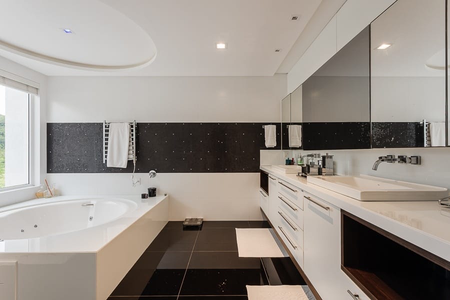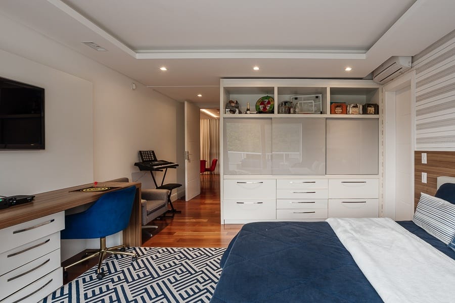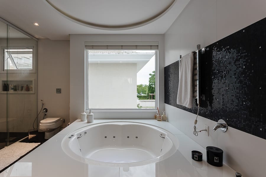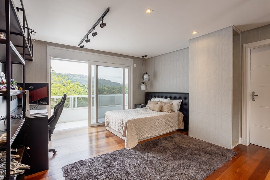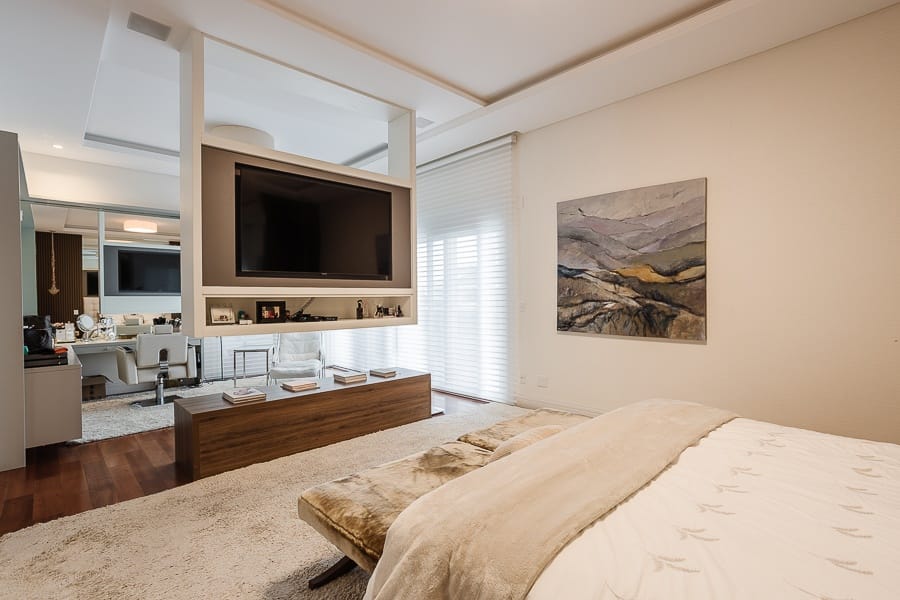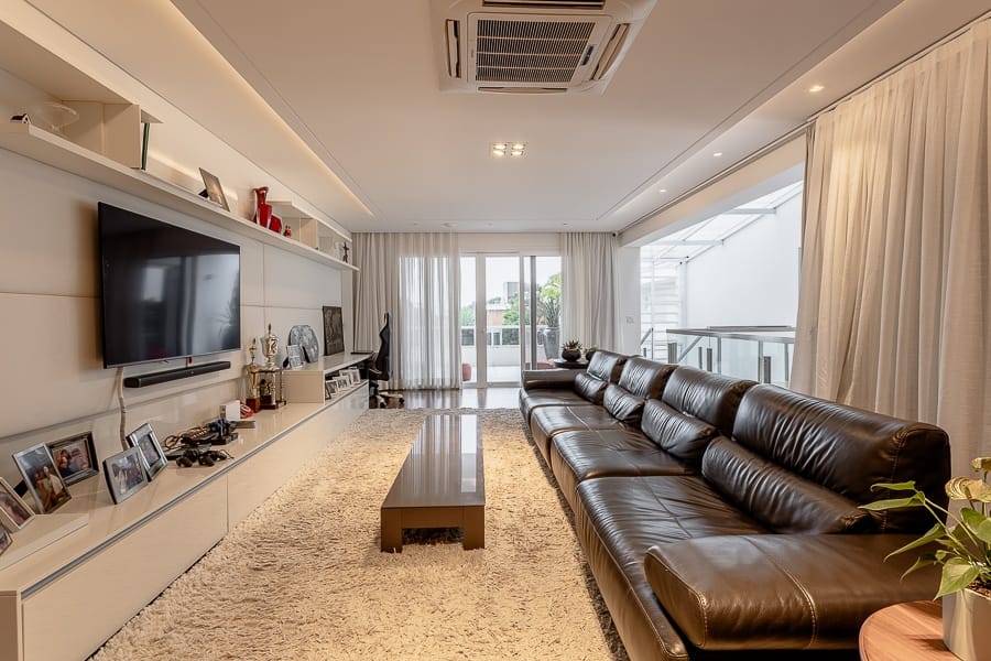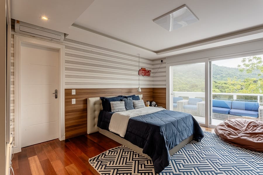 São cinco suítes além de oito banheiros, salas amplas e integradas, com excelente iluminação.