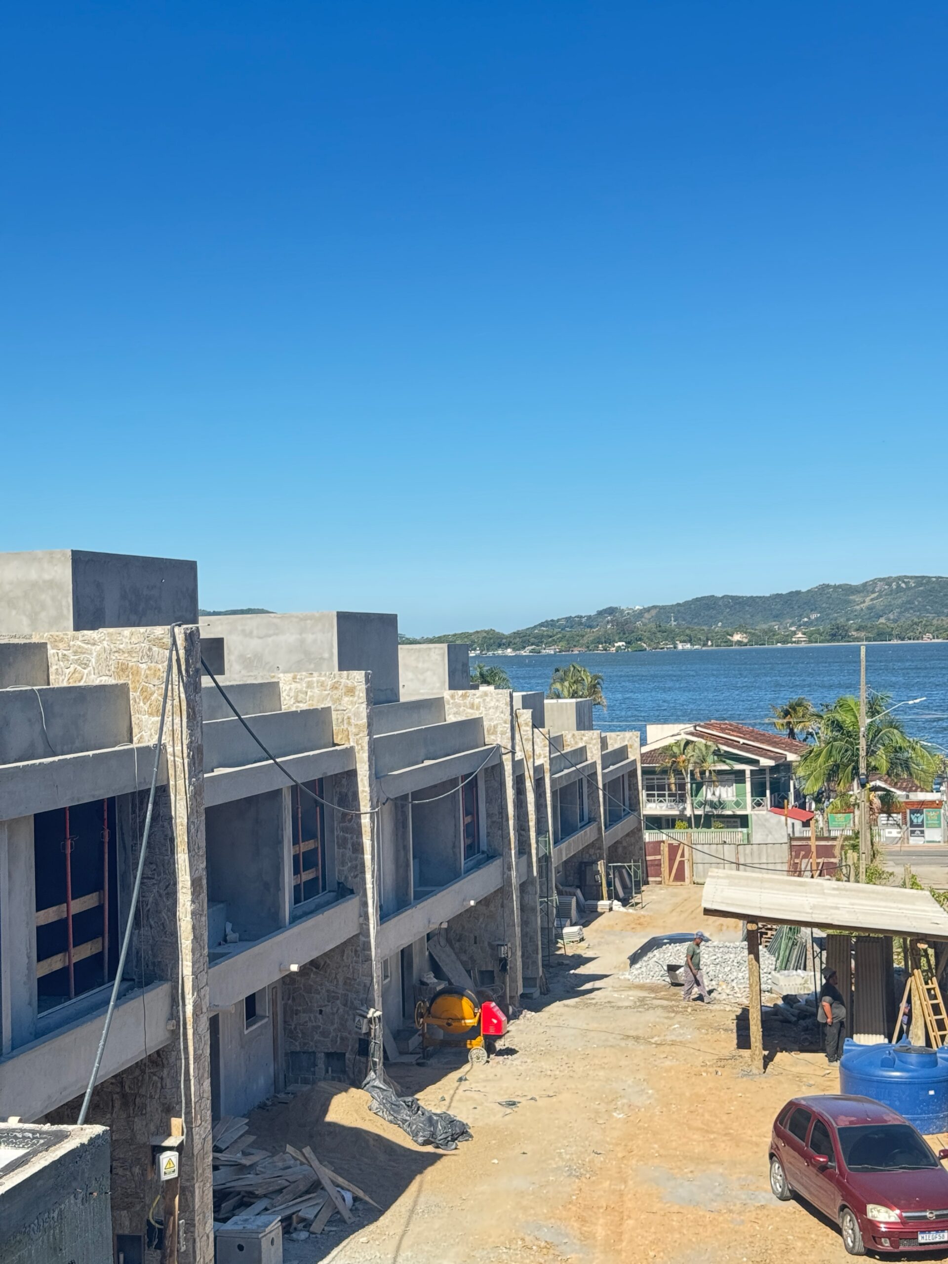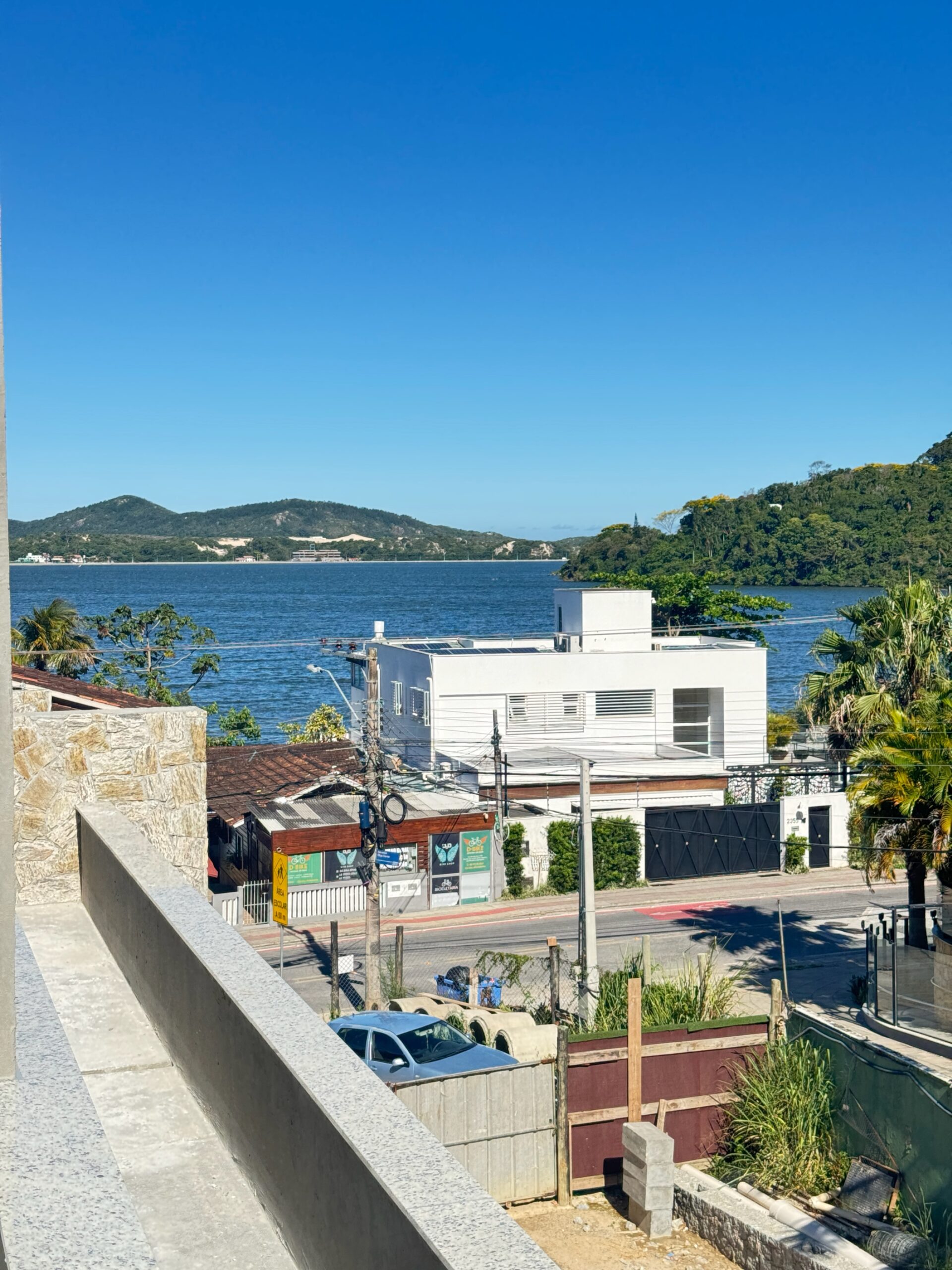 Casa geminada com duas suítes + lavabo, área social em conceito aberto e espaço gourmet para receber. Duas vagas de garagem e jardim. Diferencial, um terraço com espera para spa e deck com vista para a Lagoa da Conceição.
