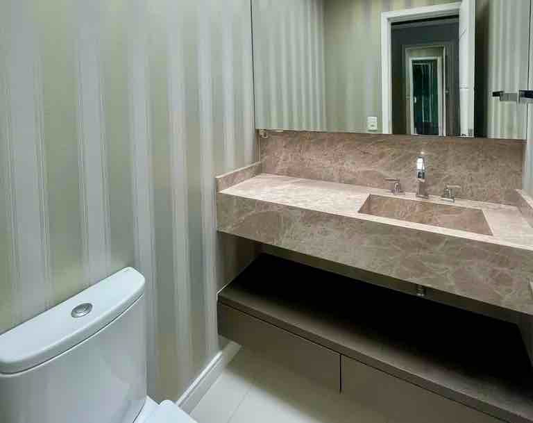 São 3 suítes, sendo 1 suíte máster, amplas salas de jantar e estar perfeitamente integradas com a cozinha, lavabo, área de serviço, 3 vagas de garagem e hobby box amplo e espaçoso.
