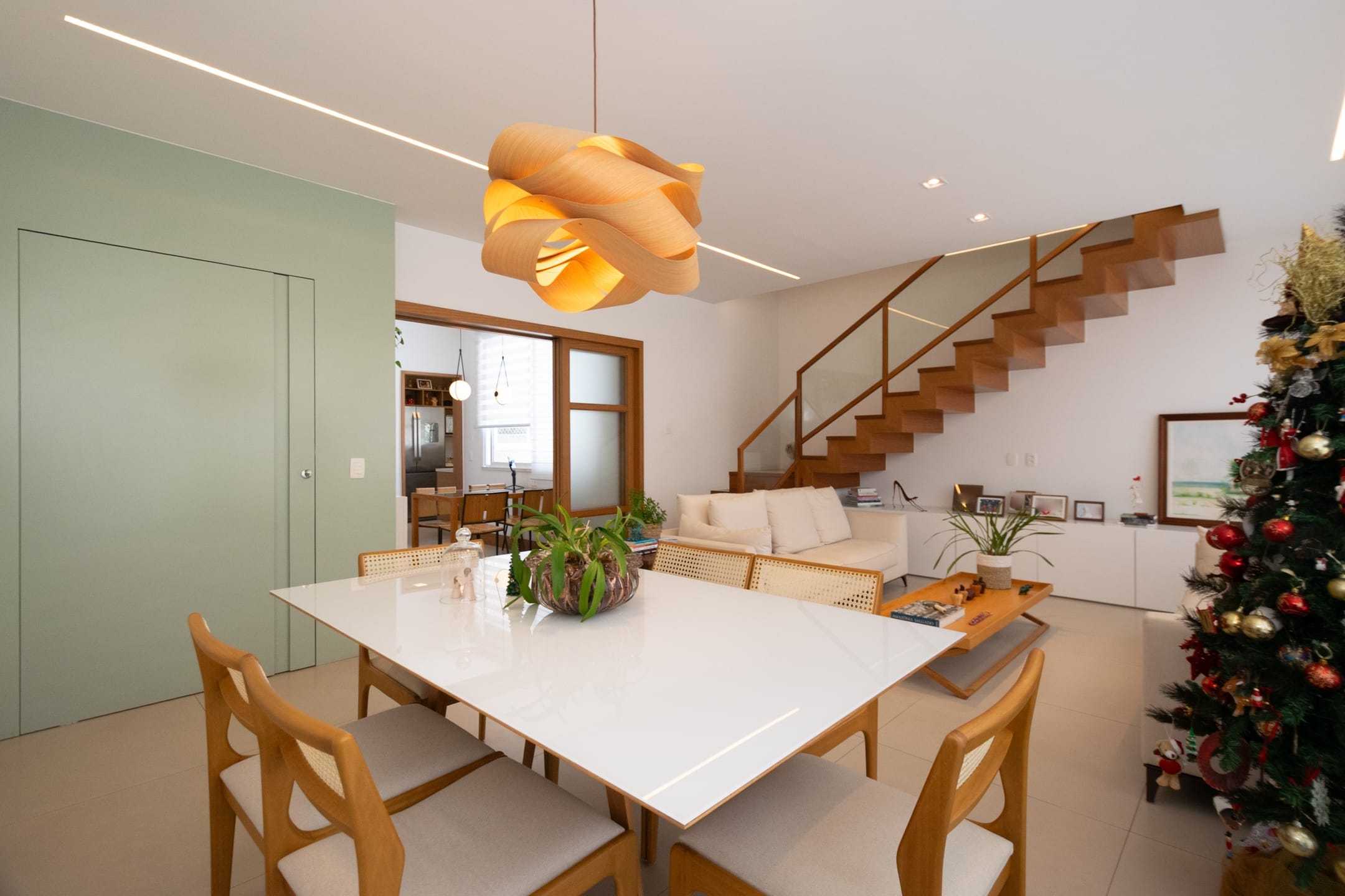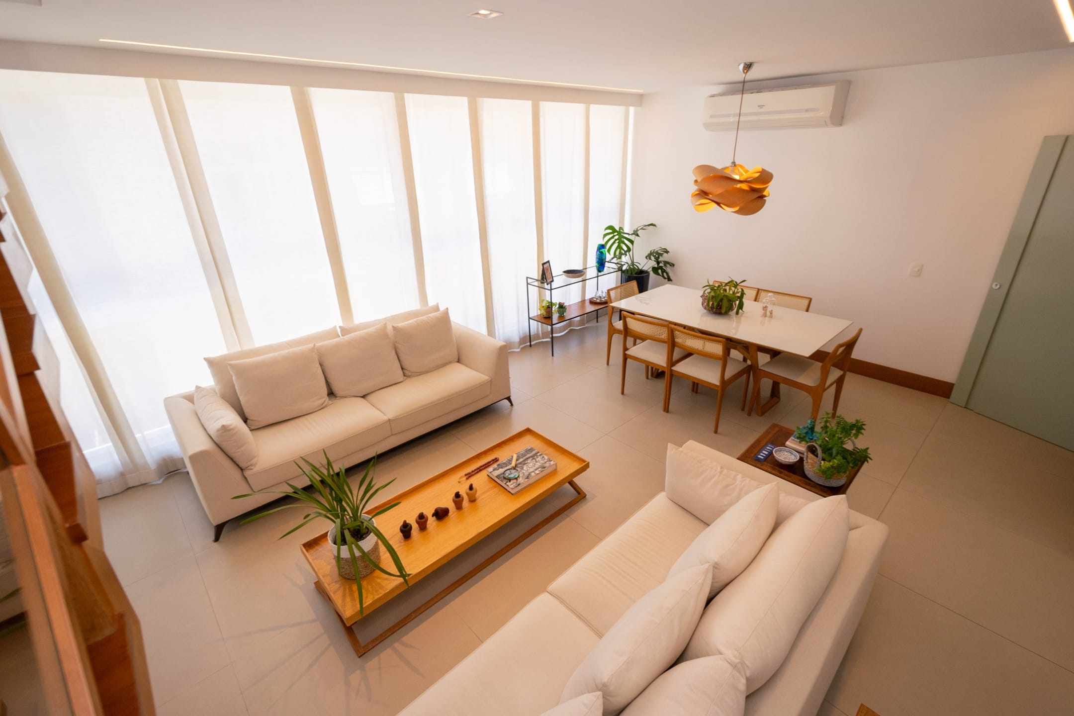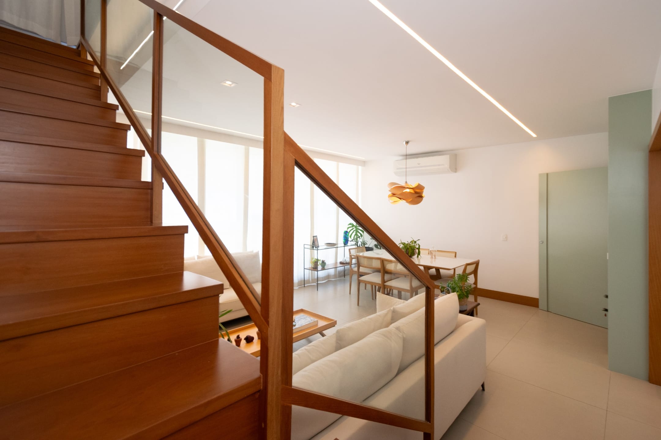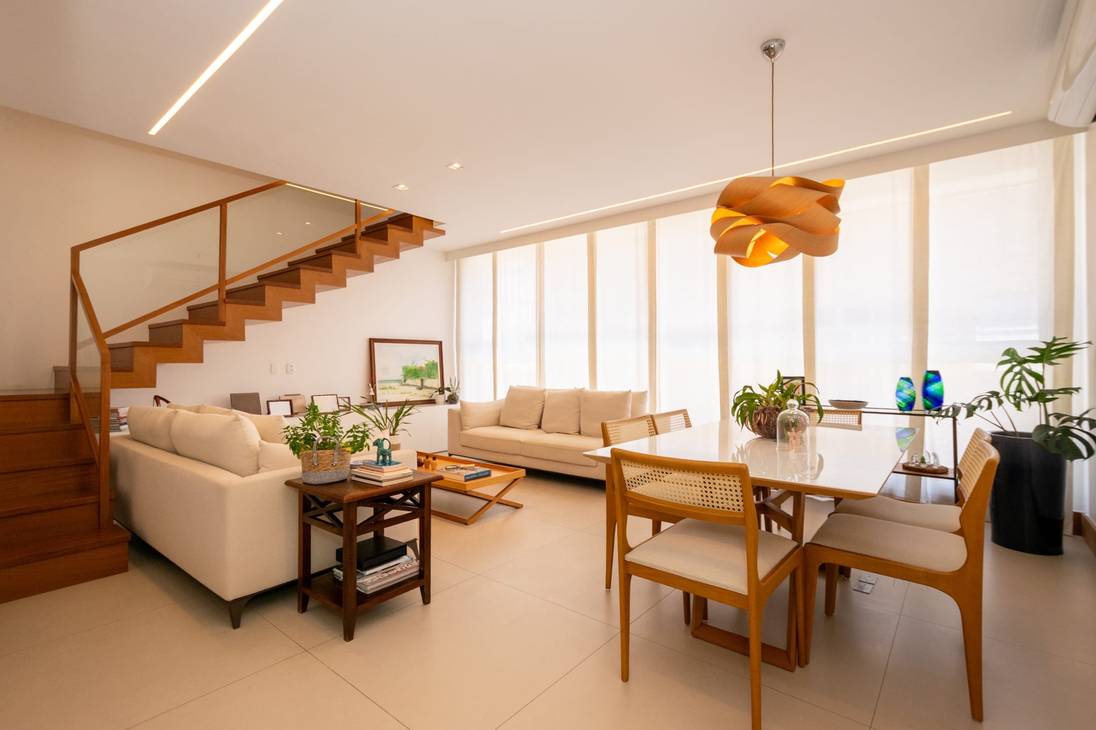 No primeiro andar temos uma ampla sala conjugada a copa e cozinha. São 3 quartos sendo uma suíte e banheiro social. Área de serviço e dependência completa. Marcenaria de excelente qualidade em todos os ambientes. O acesso á cobertura é por uma escada linear de madeira com guarda corpo de vidro e um lindo brise de madeira, temos uma espaçosa sala de estar com TV, escritório e banheiro completo. Na área externa, piscina e área gourmet completa com churrasqueira. Nesta área há um toldo retrátil automático. Apartamento reformado há pouco tempo, hidráulica, elétrica, esquadrias (todas acústicas), marcenaria e revestimentos são todos novos. São 2 vagas de garagem e Portaria 24h.