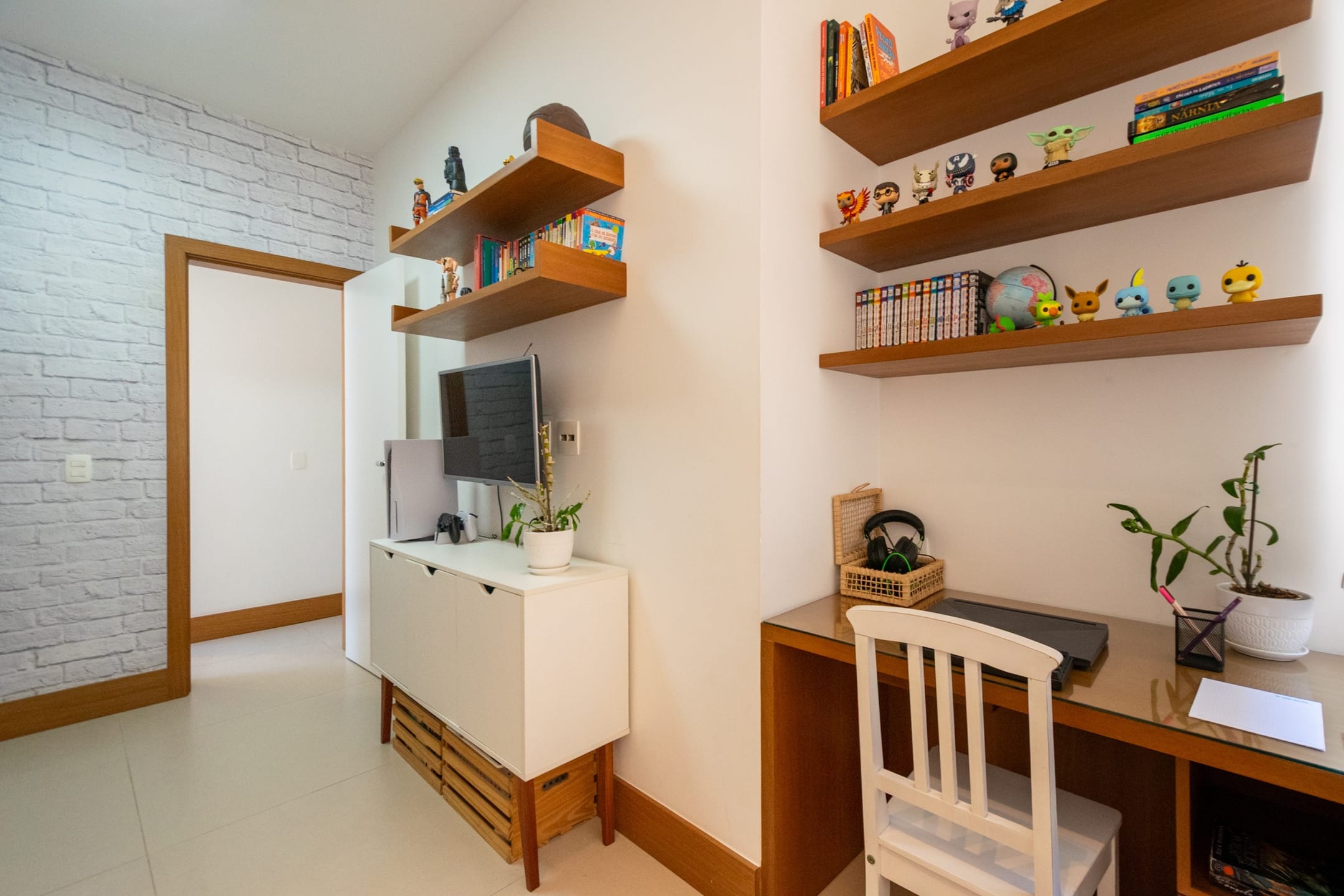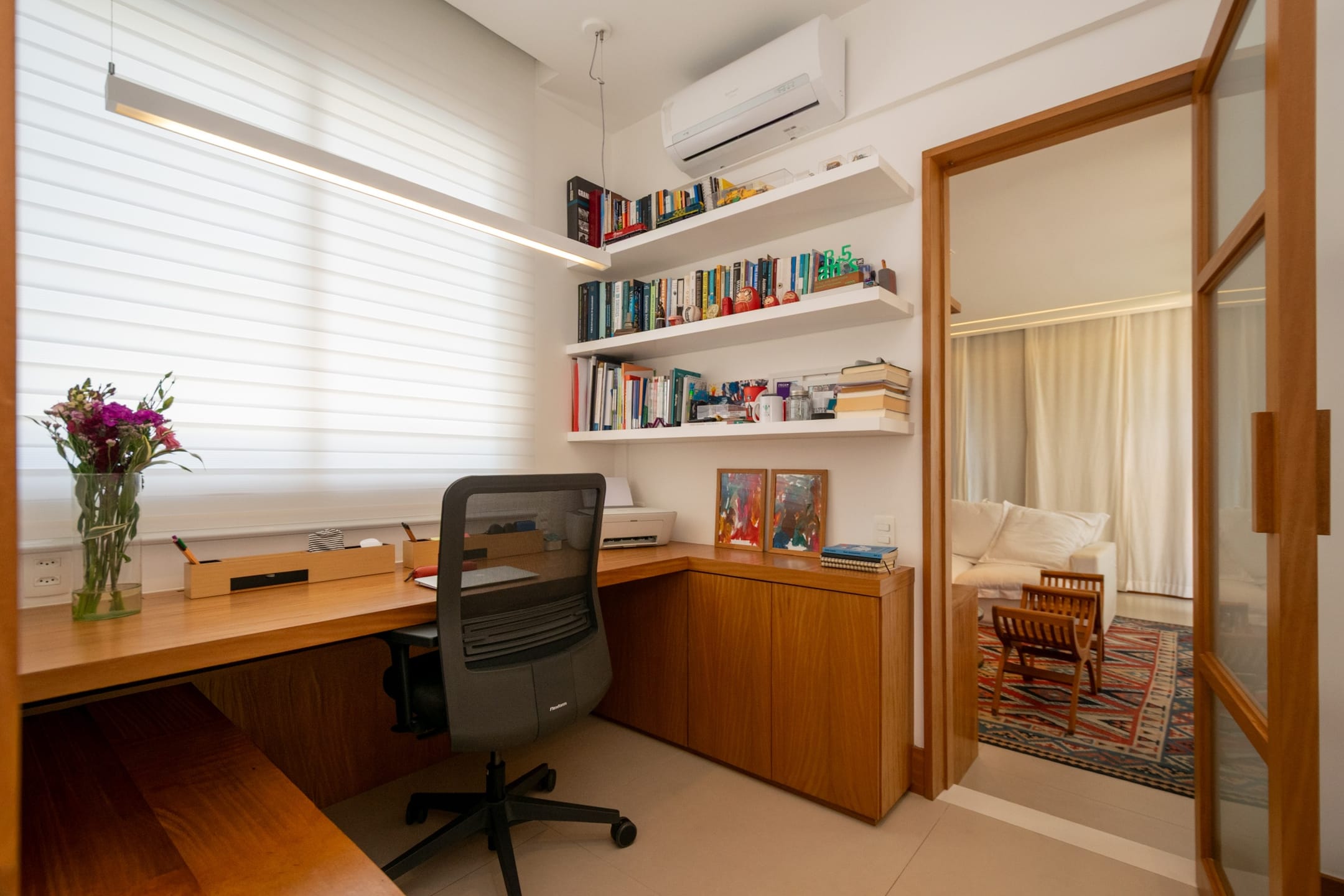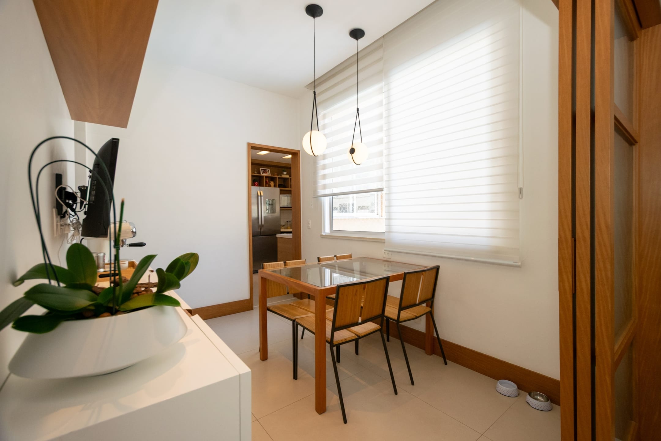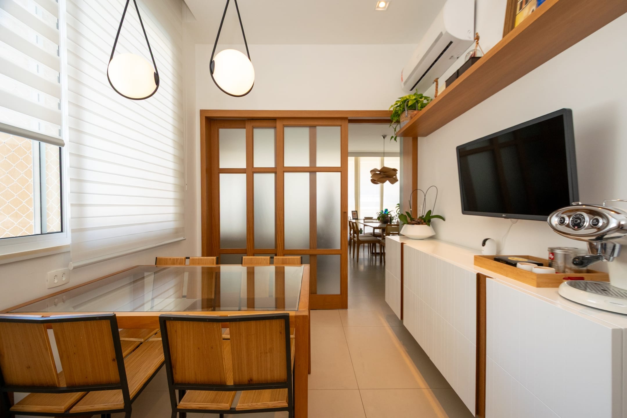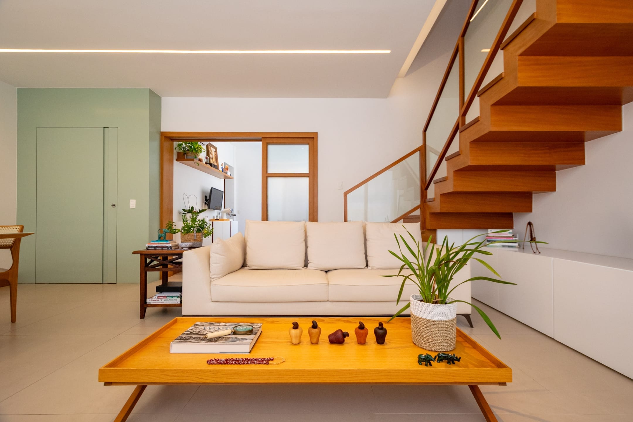 No primeiro andar temos uma ampla sala conjugada a copa e cozinha. São 3 quartos sendo uma suíte e banheiro social. Área de serviço e dependência completa. Marcenaria de excelente qualidade em todos os ambientes. O acesso á cobertura é por uma escada linear de madeira com guarda corpo de vidro e um lindo brise de madeira, temos uma espaçosa sala de estar com TV, escritório e banheiro completo. Na área externa, piscina e área gourmet completa com churrasqueira. Nesta área há um toldo retrátil automático. Apartamento reformado há pouco tempo, hidráulica, elétrica, esquadrias (todas acústicas), marcenaria e revestimentos são todos novos. São 2 vagas de garagem e Portaria 24h.