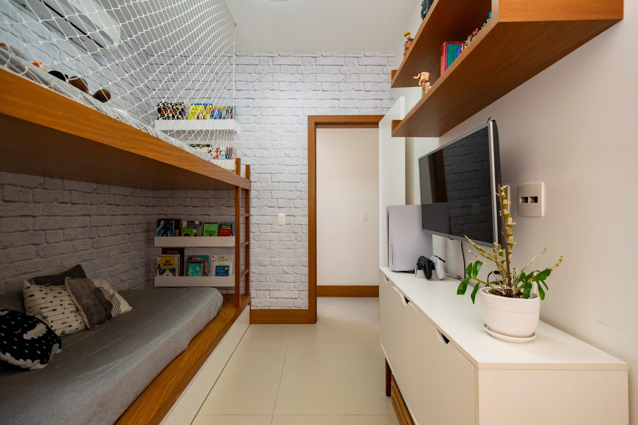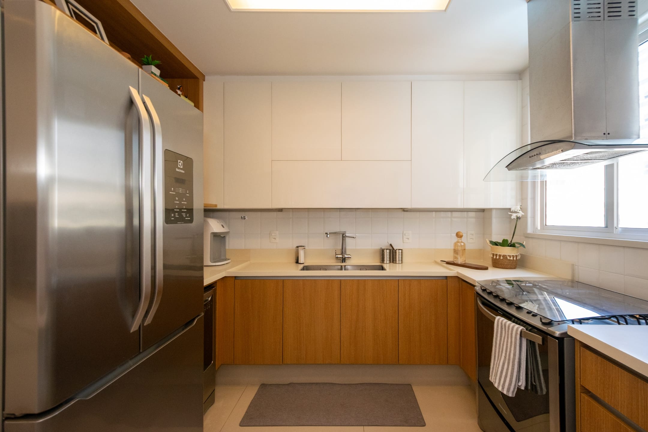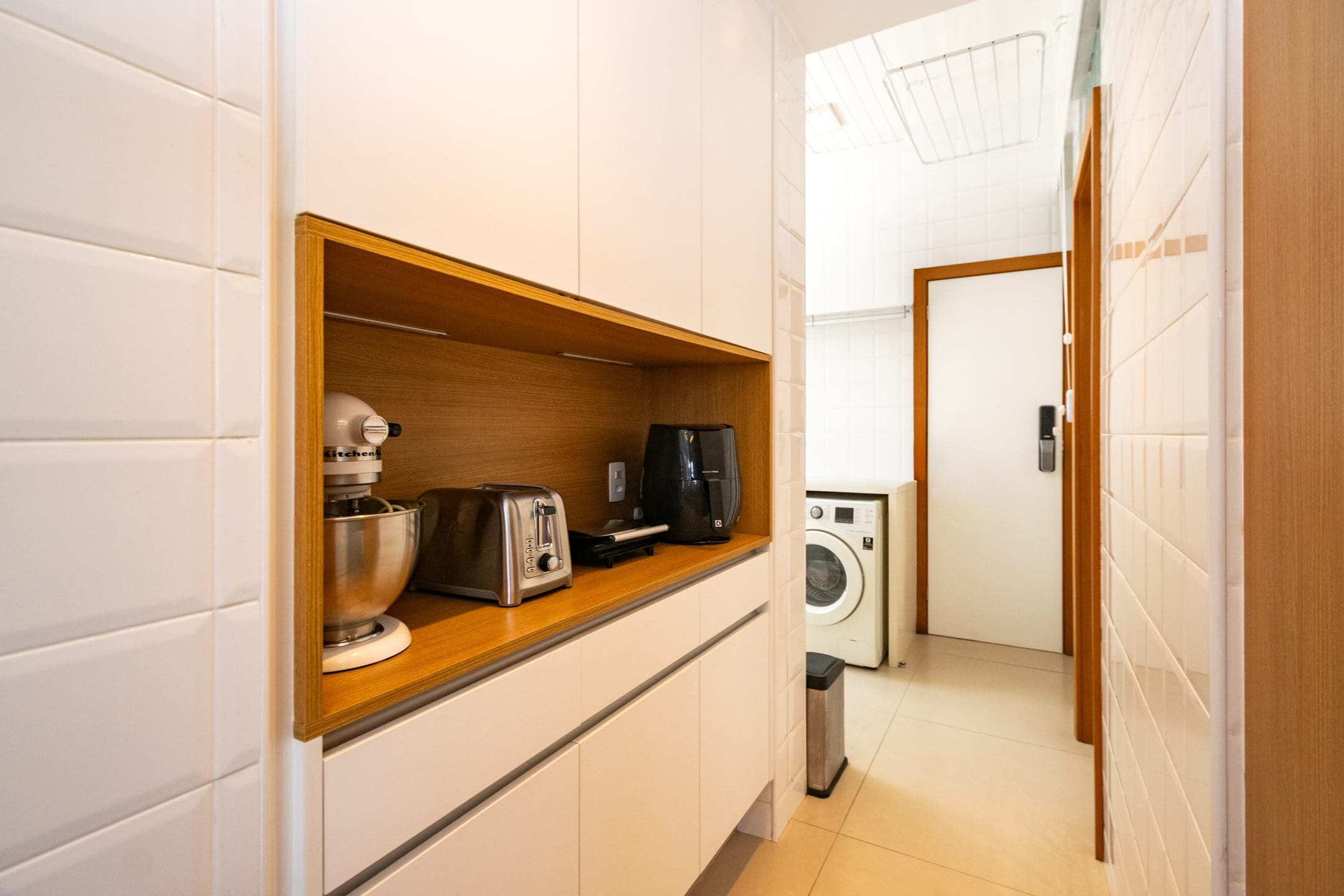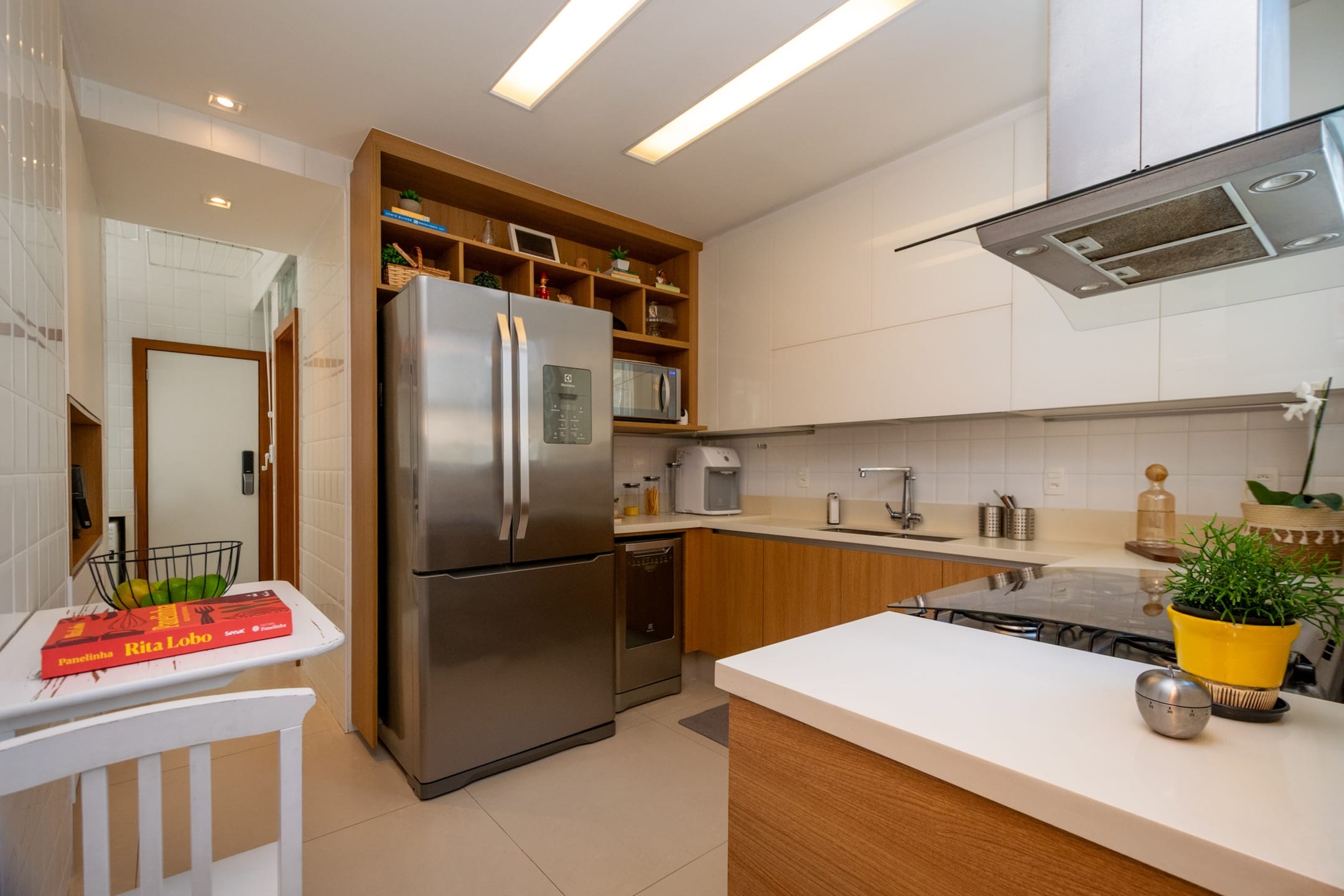 No primeiro andar temos uma ampla sala conjugada a copa e cozinha. São 3 quartos sendo uma suíte e banheiro social. Área de serviço e dependência completa. Marcenaria de excelente qualidade em todos os ambientes. O acesso á cobertura é por uma escada linear de madeira com guarda corpo de vidro e um lindo brise de madeira, temos uma espaçosa sala de estar com TV, escritório e banheiro completo. Na área externa, piscina e área gourmet completa com churrasqueira. Nesta área há um toldo retrátil automático. Apartamento reformado há pouco tempo, hidráulica, elétrica, esquadrias (todas acústicas), marcenaria e revestimentos são todos novos. São 2 vagas de garagem e Portaria 24h.