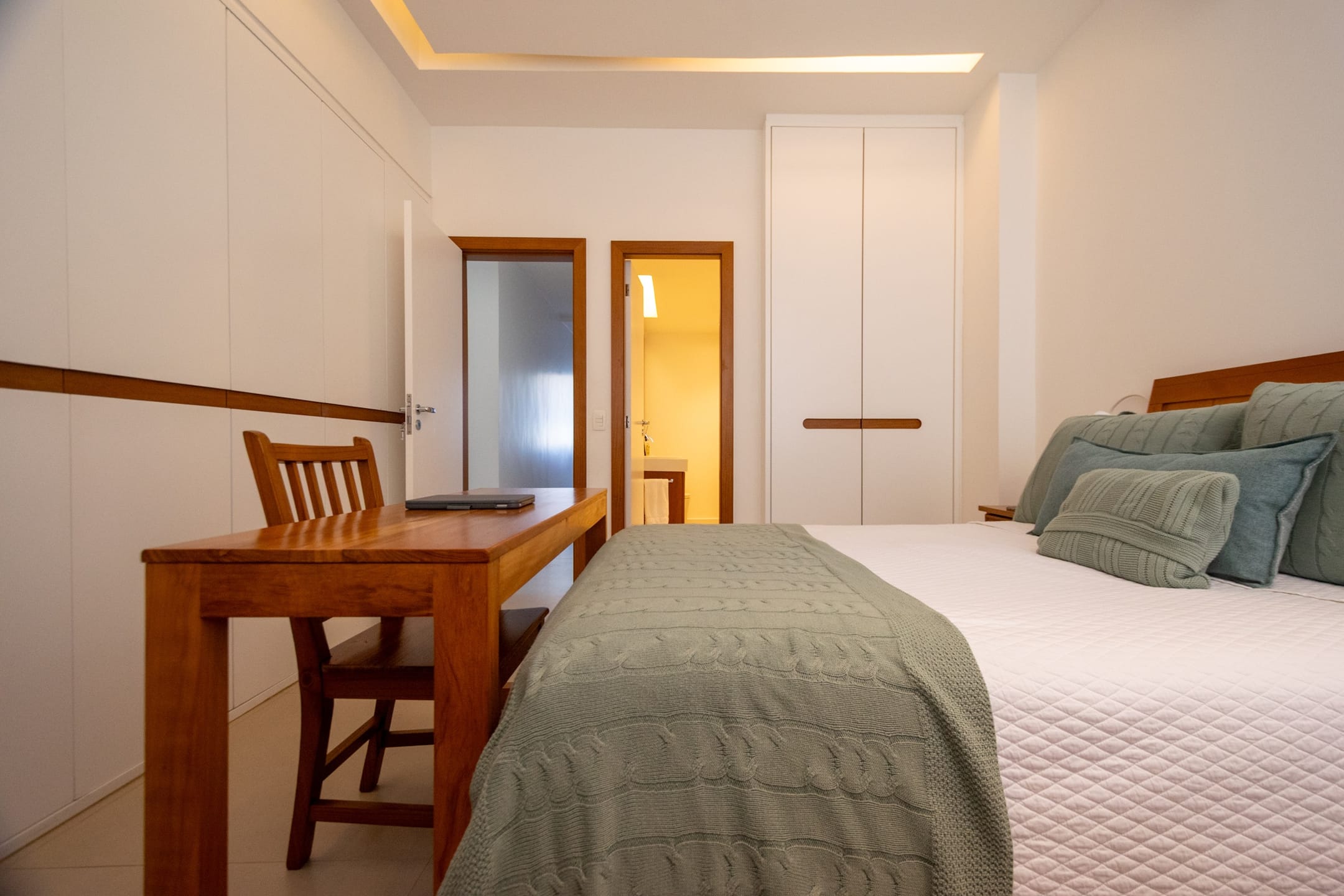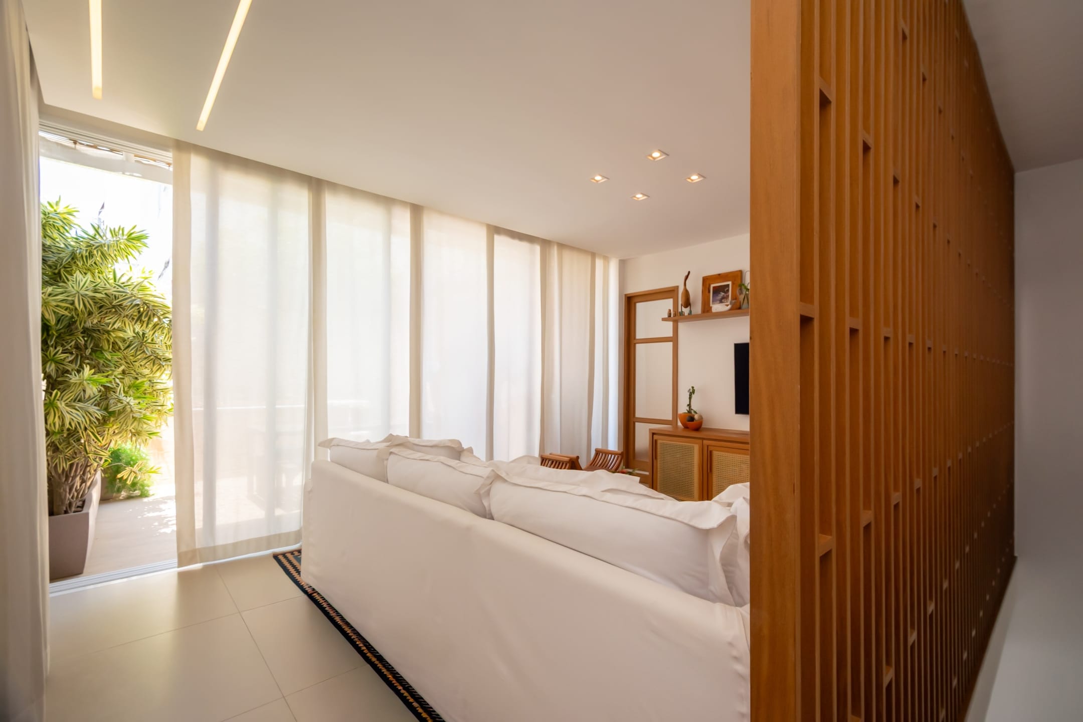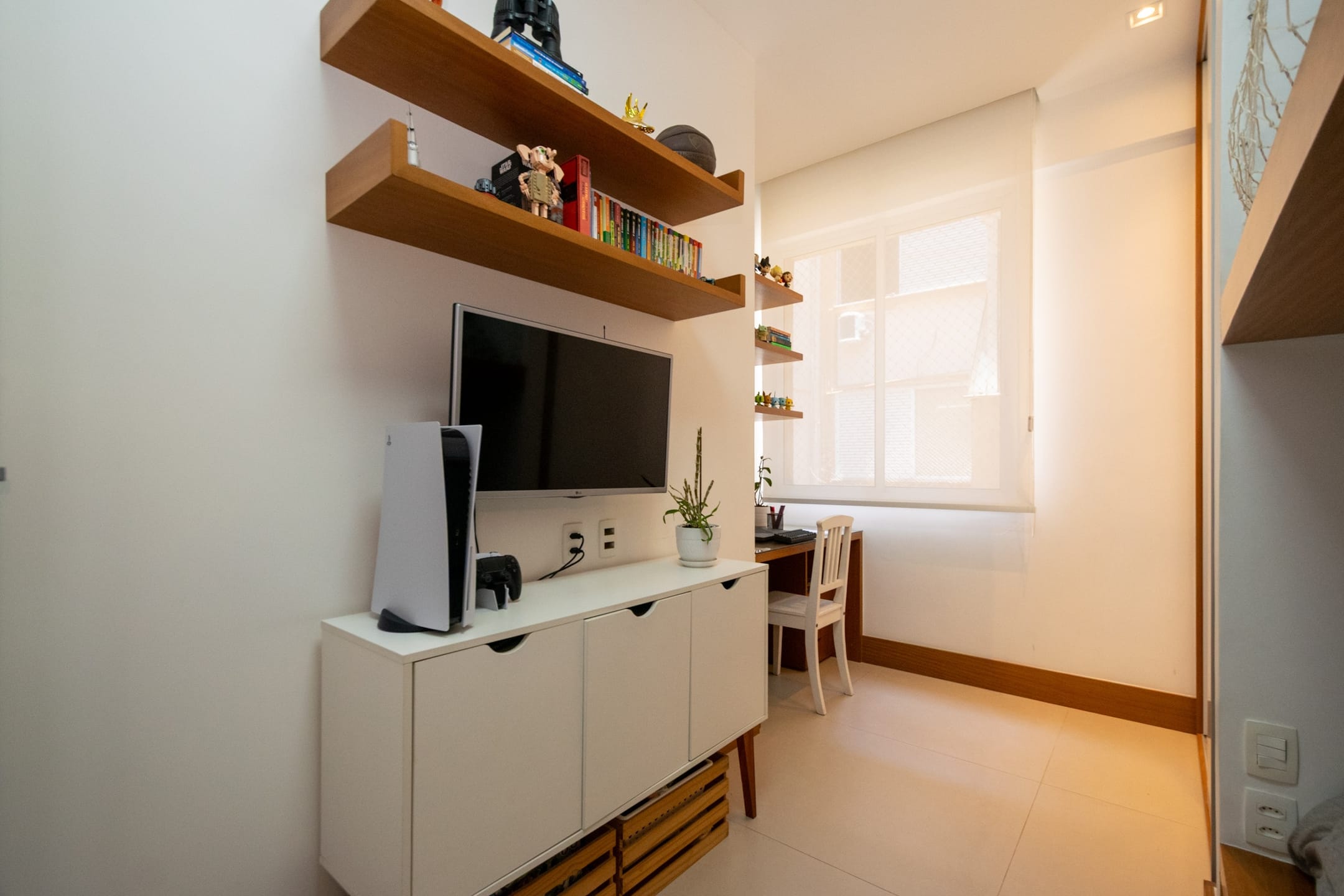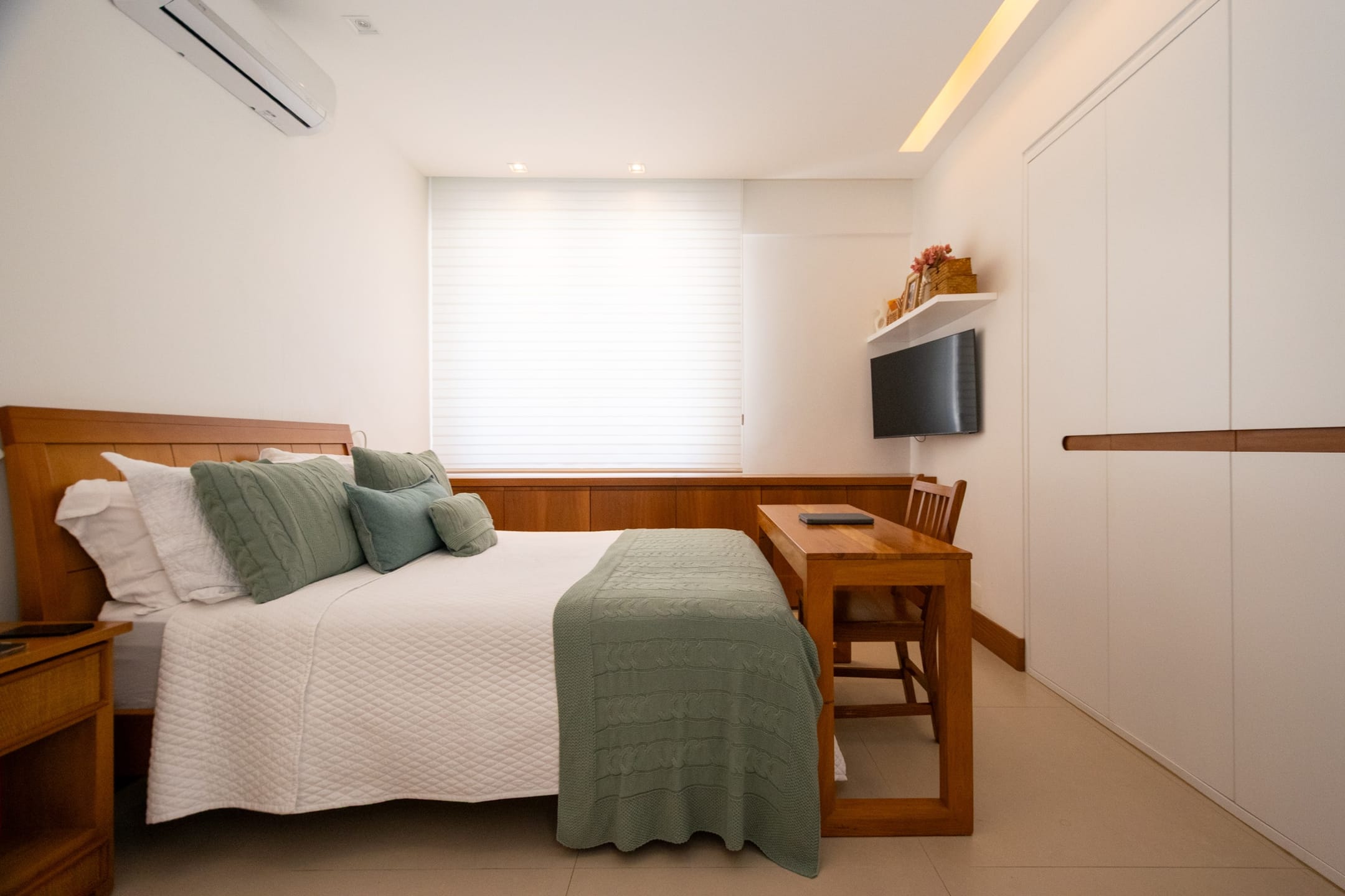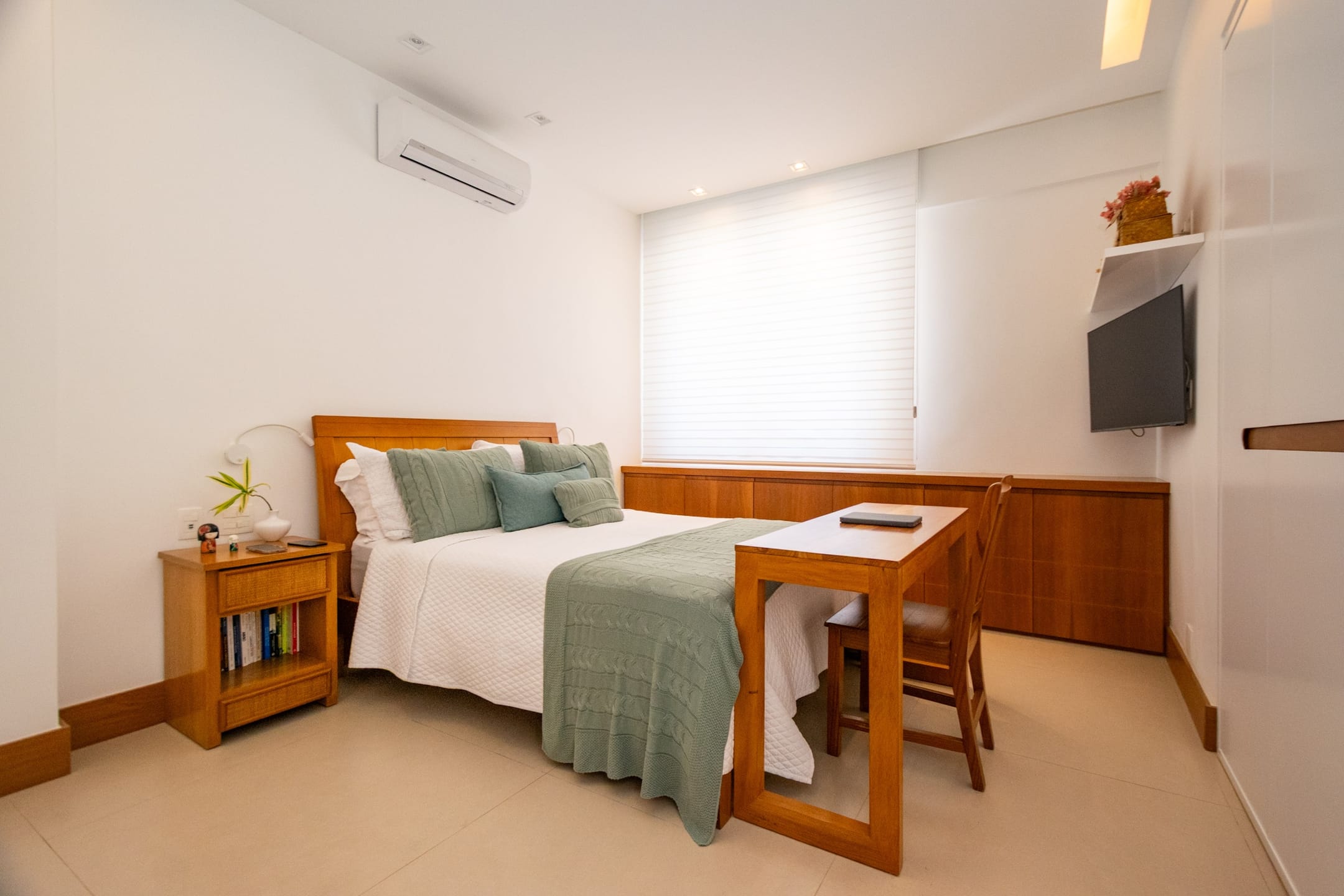 No primeiro andar temos uma ampla sala conjugada a copa e cozinha. São 3 quartos sendo uma suíte e banheiro social. Área de serviço e dependência completa. Marcenaria de excelente qualidade em todos os ambientes. O acesso á cobertura é por uma escada linear de madeira com guarda corpo de vidro e um lindo brise de madeira, temos uma espaçosa sala de estar com TV, escritório e banheiro completo. Na área externa, piscina e área gourmet completa com churrasqueira. Nesta área há um toldo retrátil automático. Apartamento reformado há pouco tempo, hidráulica, elétrica, esquadrias (todas acústicas), marcenaria e revestimentos são todos novos. São 2 vagas de garagem e Portaria 24h.