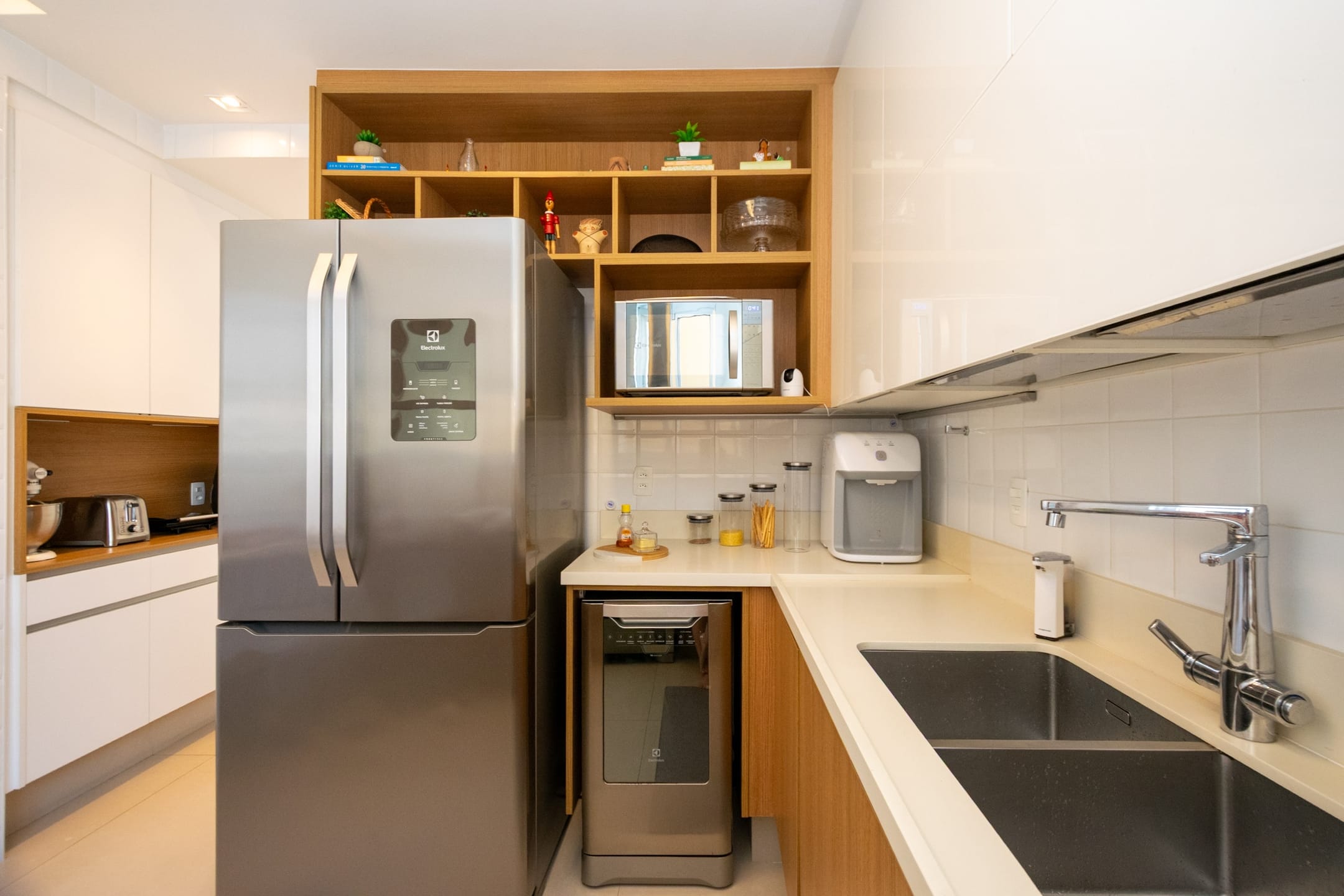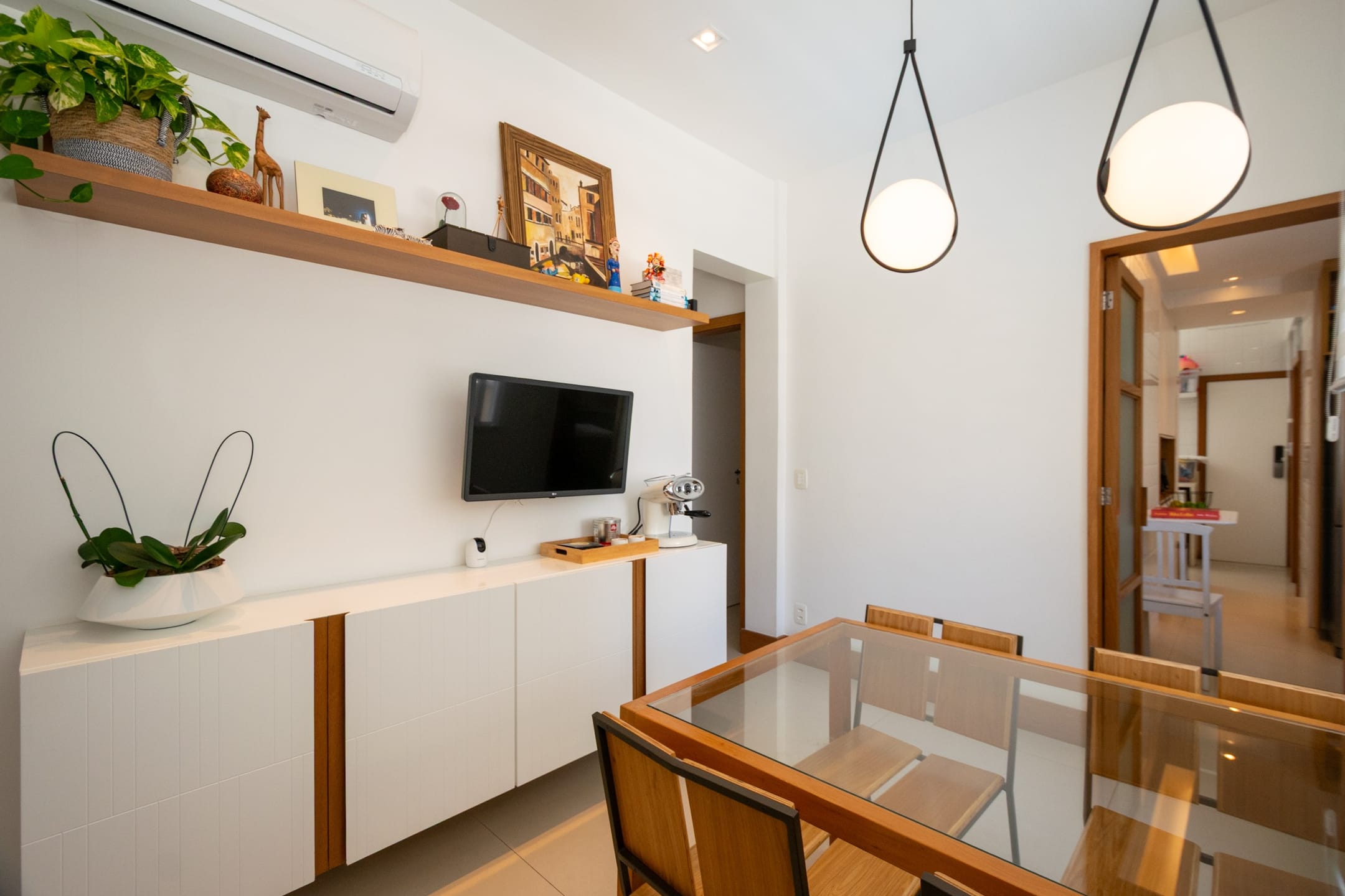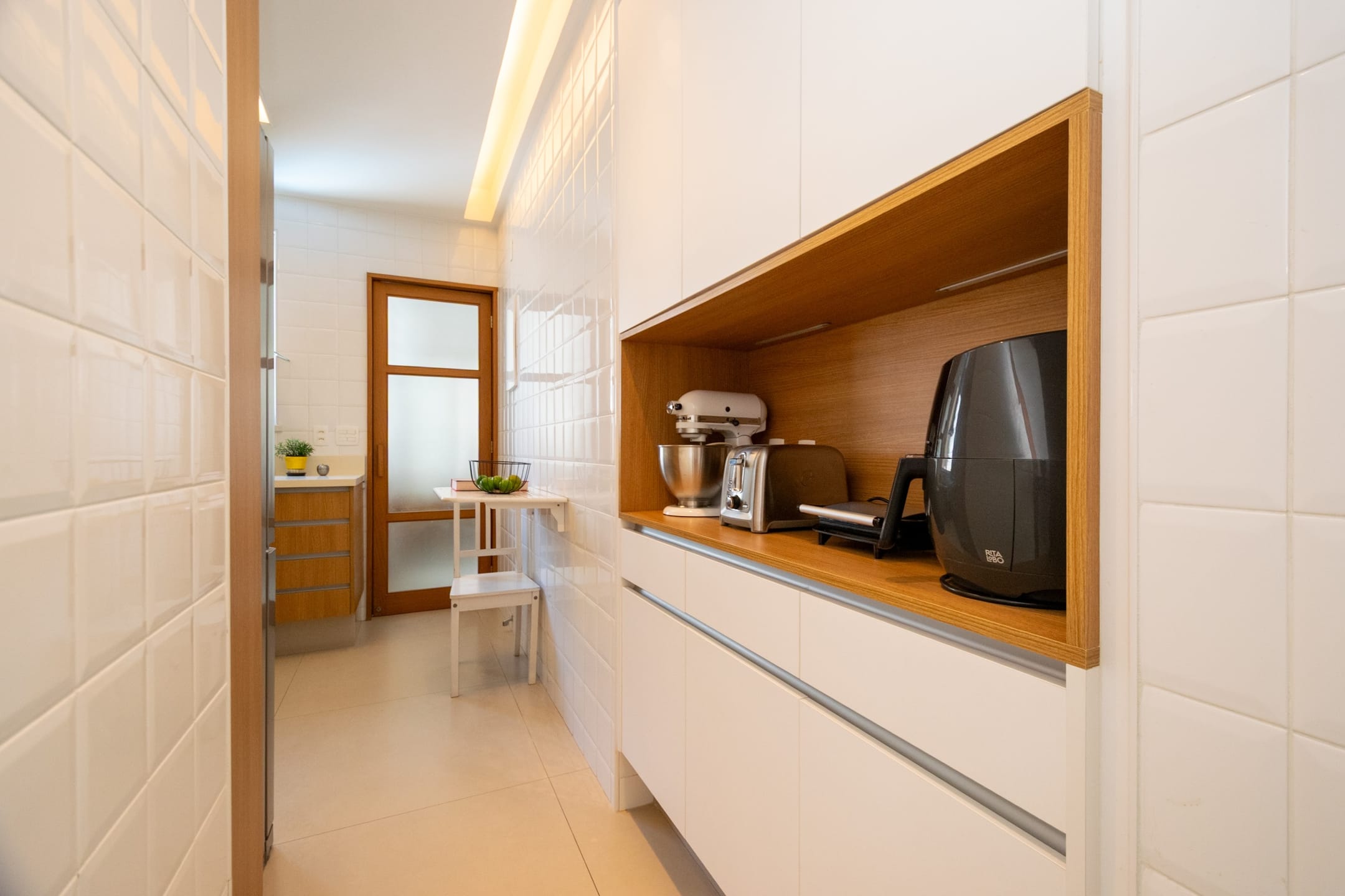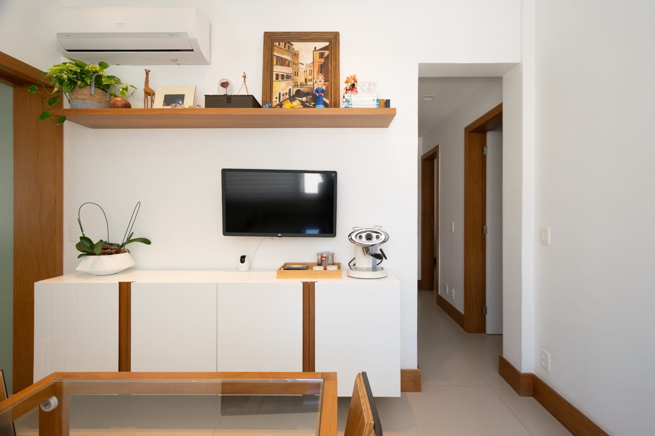 No primeiro andar temos uma ampla sala conjugada a copa e cozinha. São 3 quartos sendo uma suíte e banheiro social. Área de serviço e dependência completa. Marcenaria de excelente qualidade em todos os ambientes. O acesso á cobertura é por uma escada linear de madeira com guarda corpo de vidro e um lindo brise de madeira, temos uma espaçosa sala de estar com TV, escritório e banheiro completo. Na área externa, piscina e área gourmet completa com churrasqueira. Nesta área há um toldo retrátil automático. Apartamento reformado há pouco tempo, hidráulica, elétrica, esquadrias (todas acústicas), marcenaria e revestimentos são todos novos. São 2 vagas de garagem e Portaria 24h.